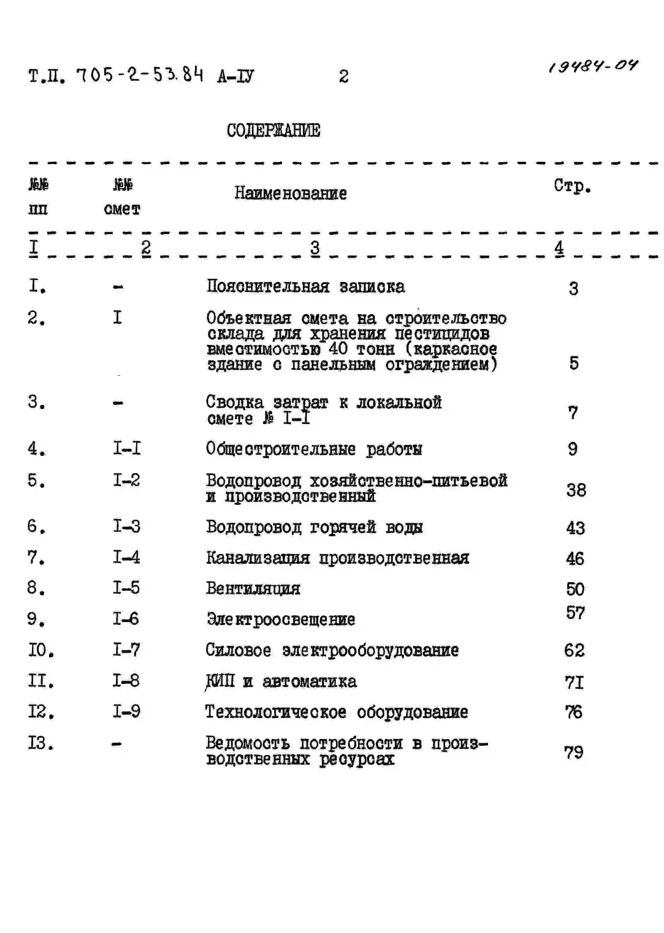 Типовой проект 705-2-53.84 Склад для хранения пестицидов вместимостью 40 т