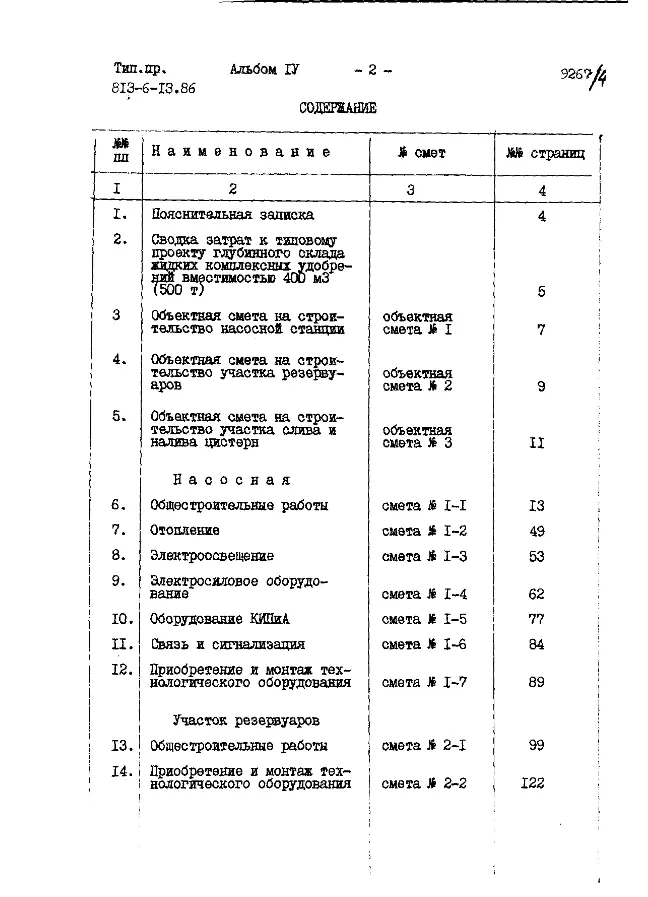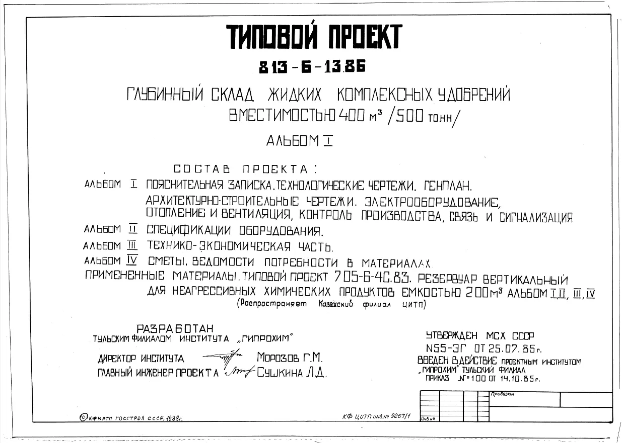 Типовой проект 813-6-13.86 Глубинный склад жидких комплексных удобрений вместимостью 400 м³ (500 тонн)
