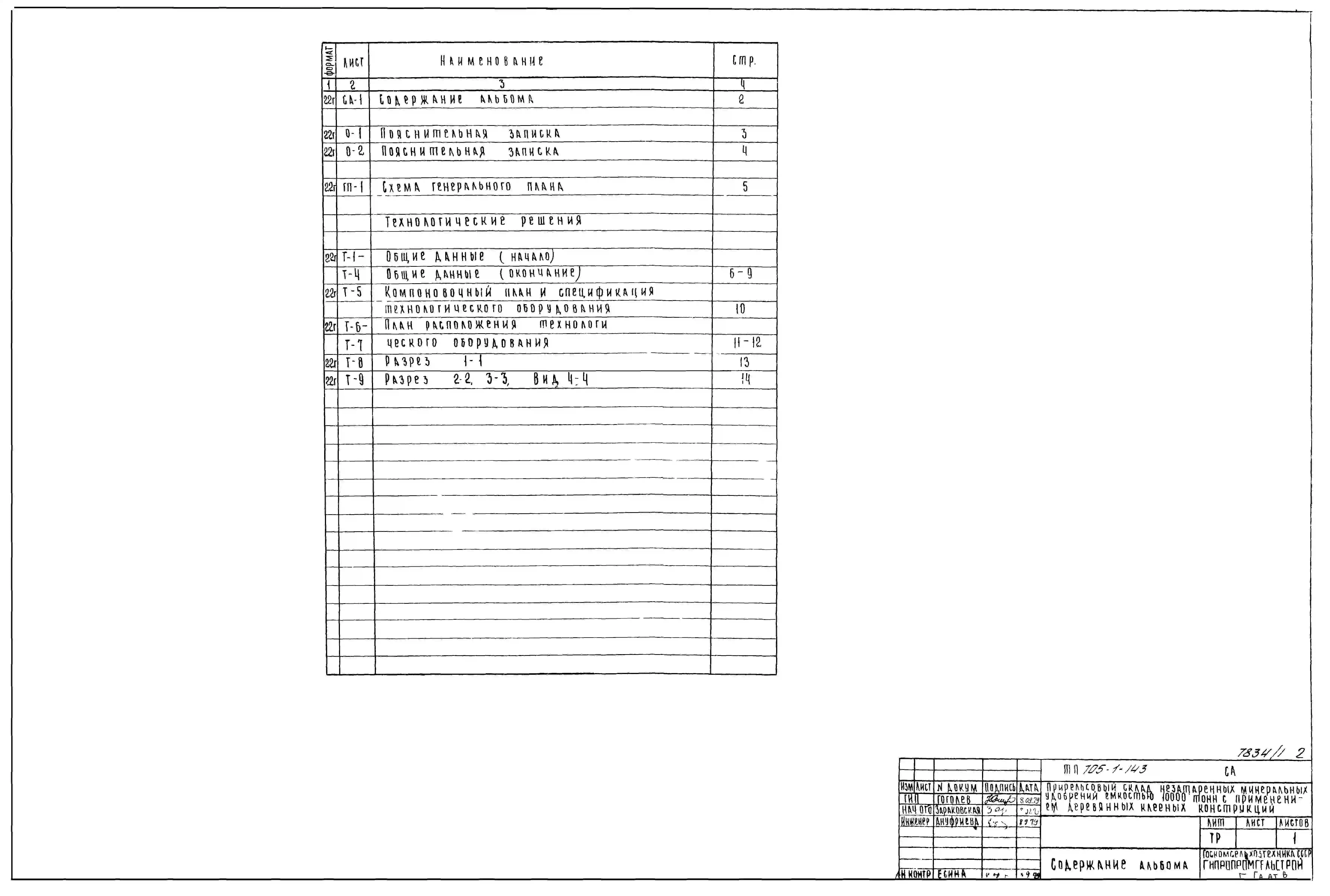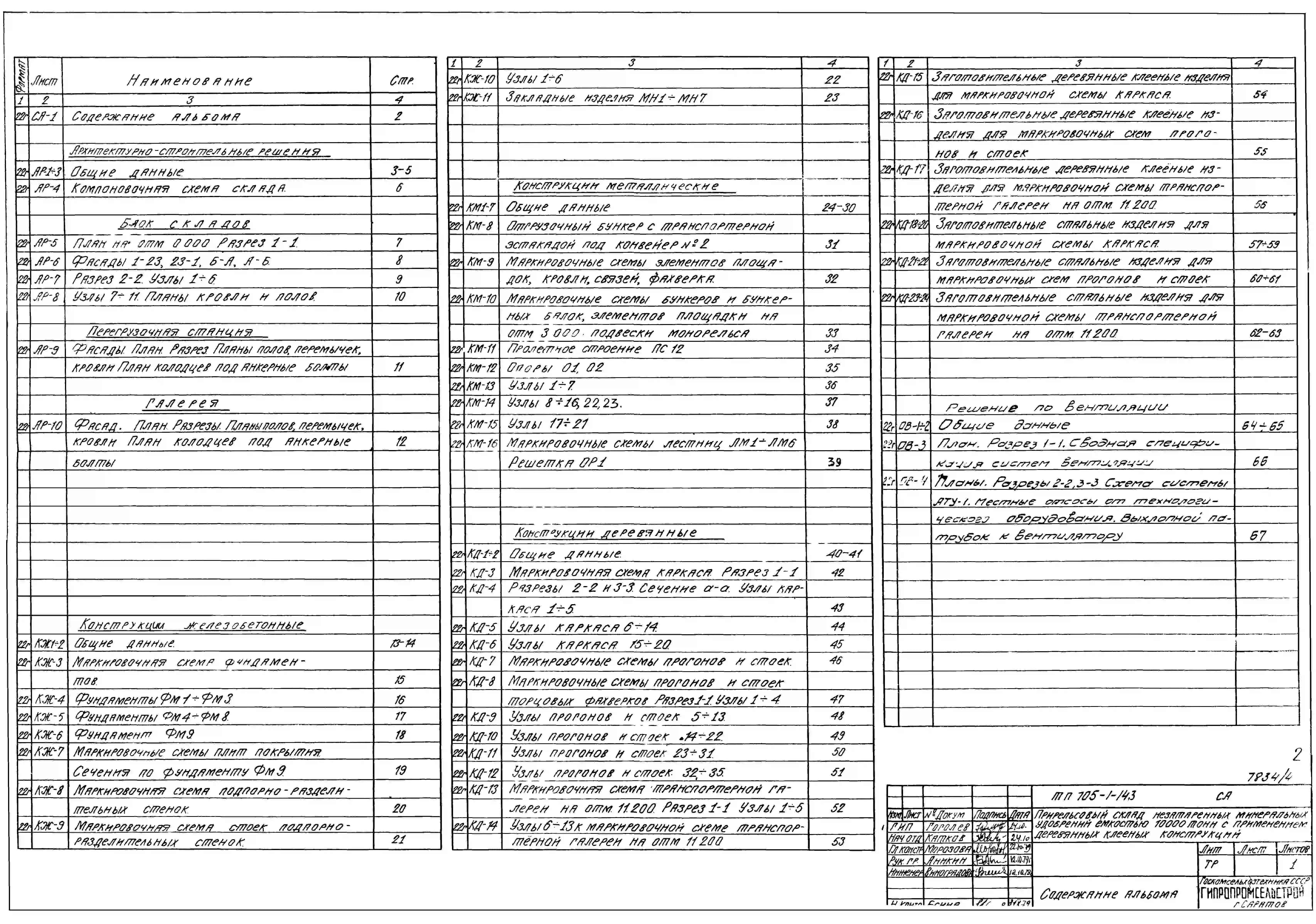 Типовой проект 705-1-143 Прирельсовый склад незатаренных минеральных удобрений емкостью 10000 тонн с применением деревянных клееных конструкций