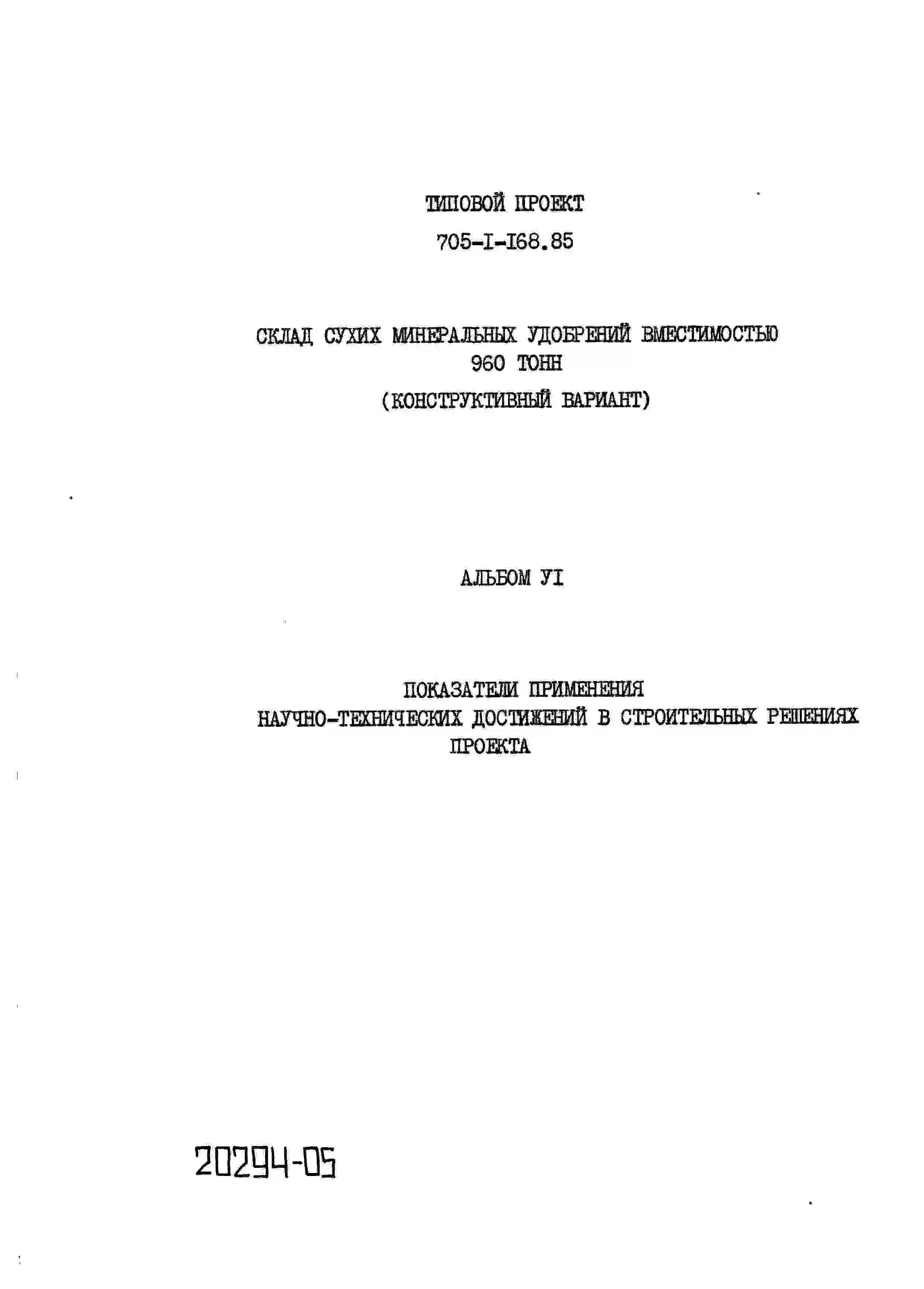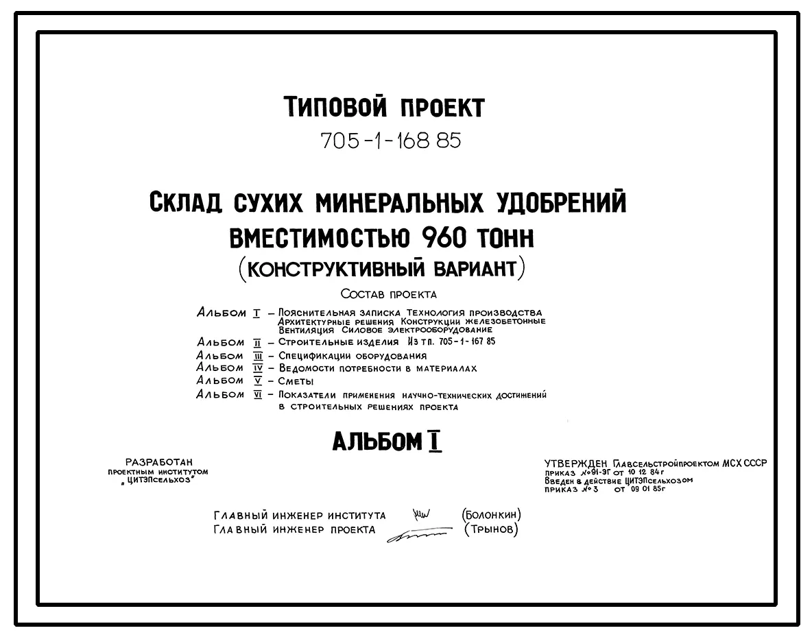 Типовой проект 705-1-168.85 Склад сухих минеральных удобрений вместимостью 960 т (конструктивный вариант к типовому проекту 705-1-118)