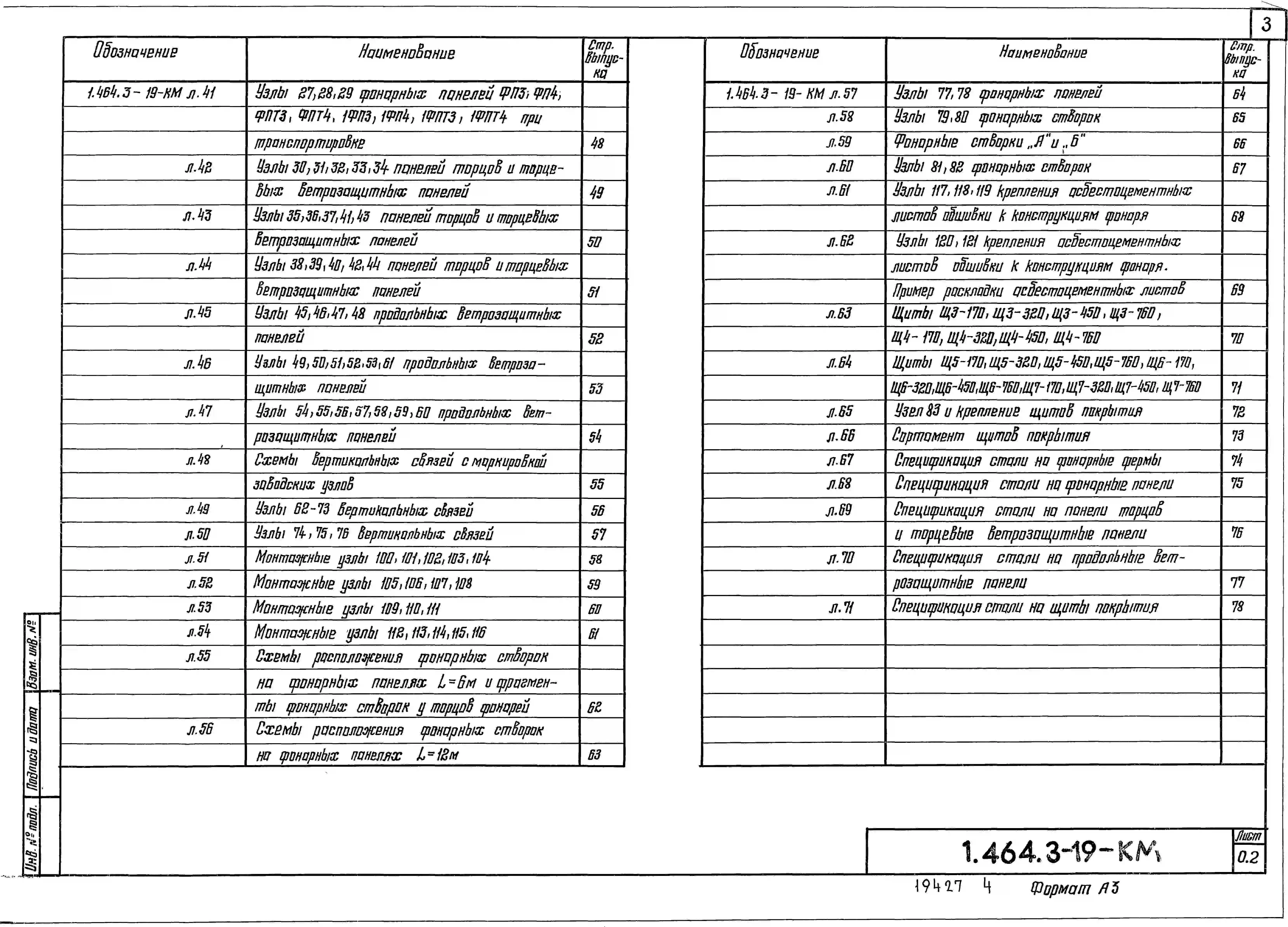 Серия 1.464.3-19 Стальные конструкции аэрационных фонарей для производственных зданий. Рабочие чертежи.