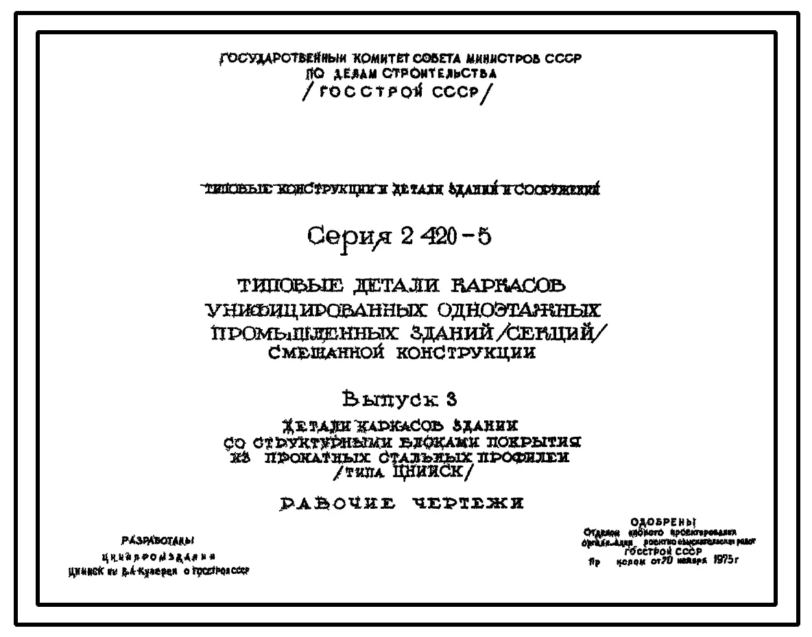 Серия 2.420-5 Типовые детали каркасов унифицированных одноэтажных промышленных зданий (секций). Рабочие чертежи.