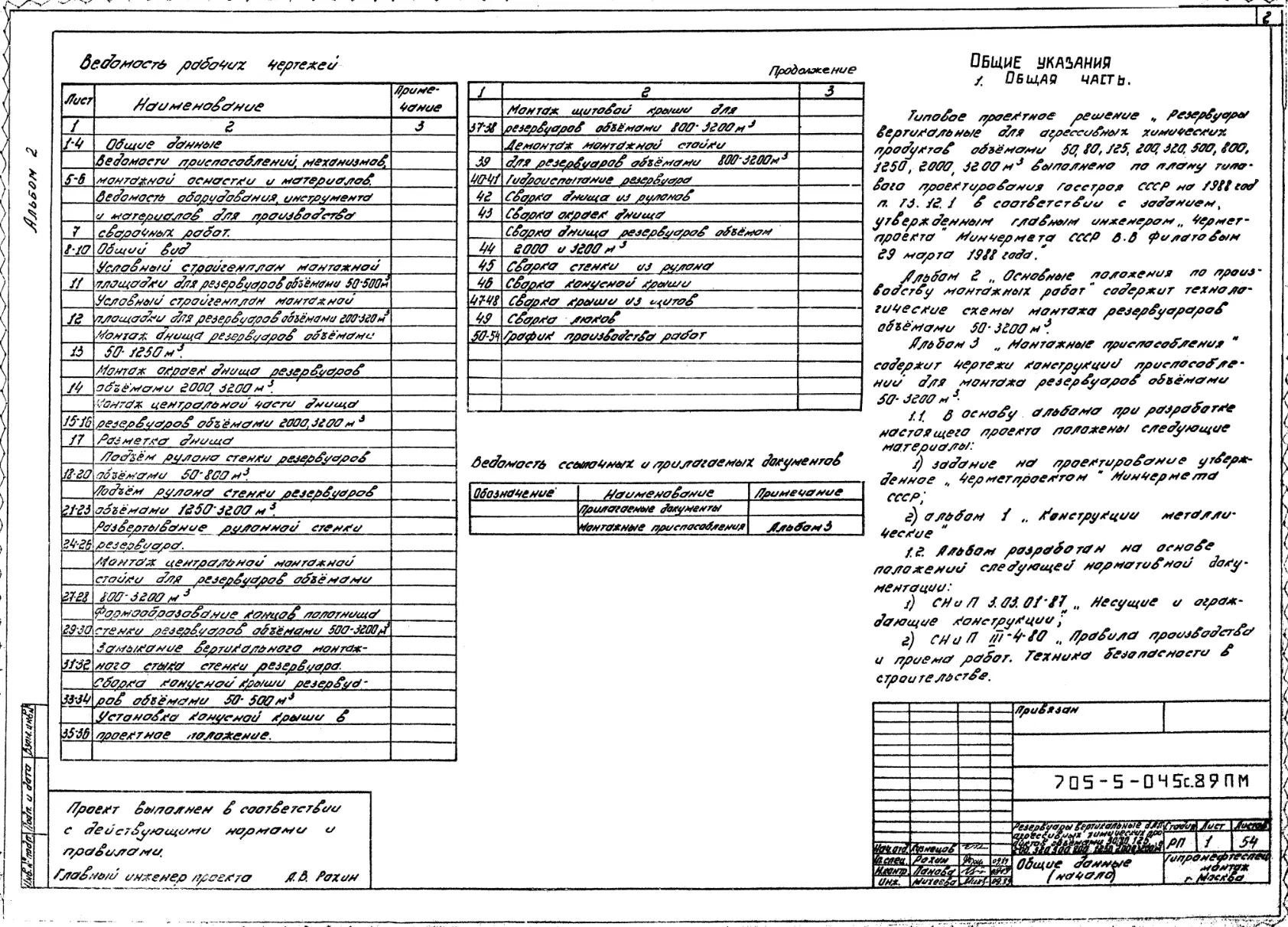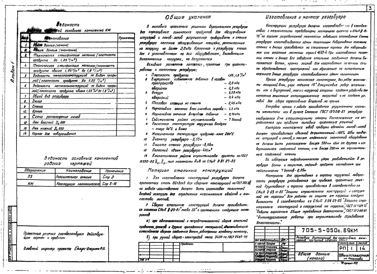 Типовой проект 705-5-050с.89 Резервуар вертикальный для агрессиных химических продуктов объемом 500 м3. Сейсмичность 7 баллов.