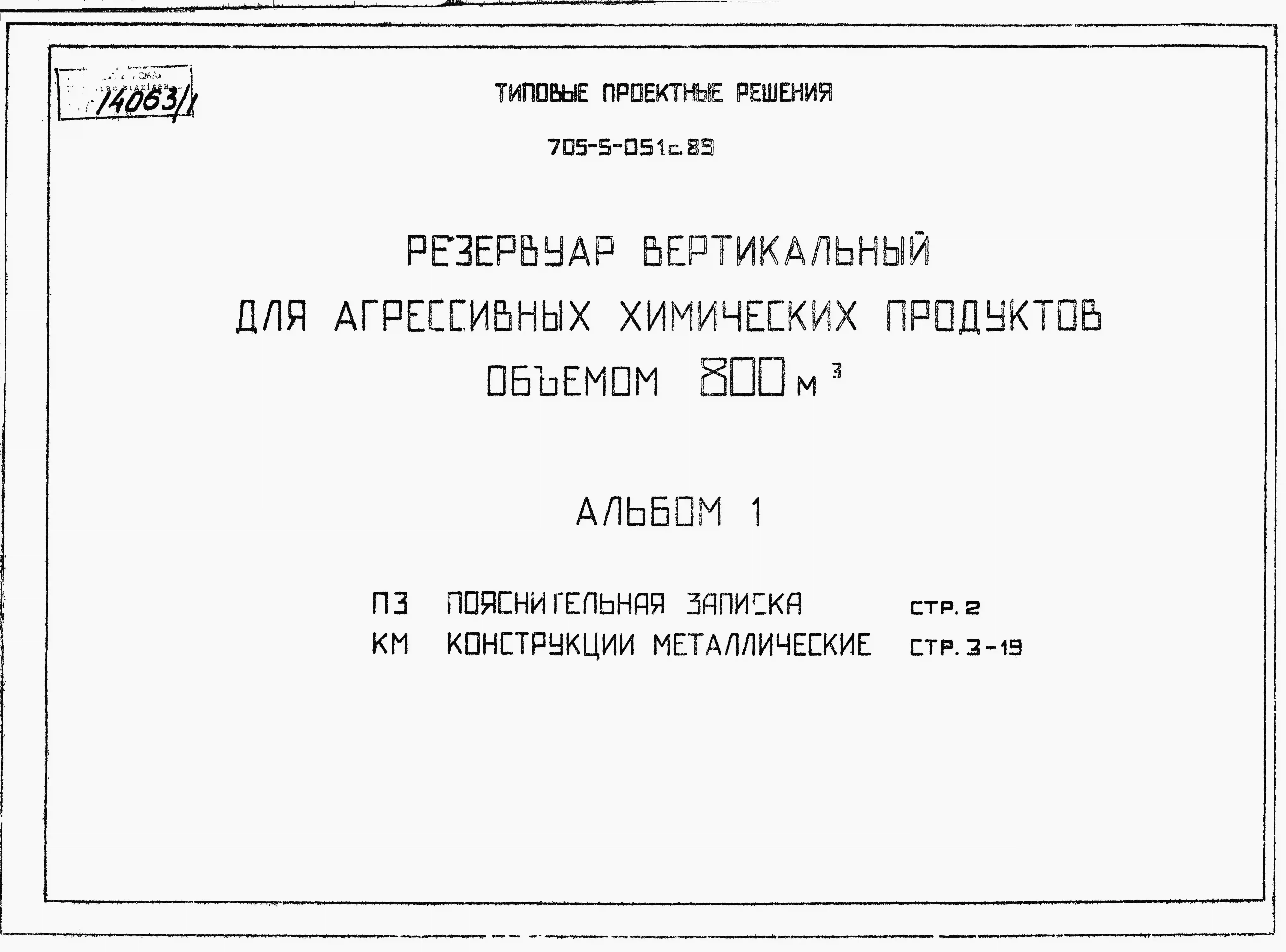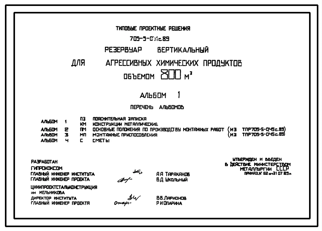 Типовой проект 705-5-051с.89 Резервуар вертикальный для агрессивных химических продуктов объемом 800 м3. Сейсмичность 7 баллов.