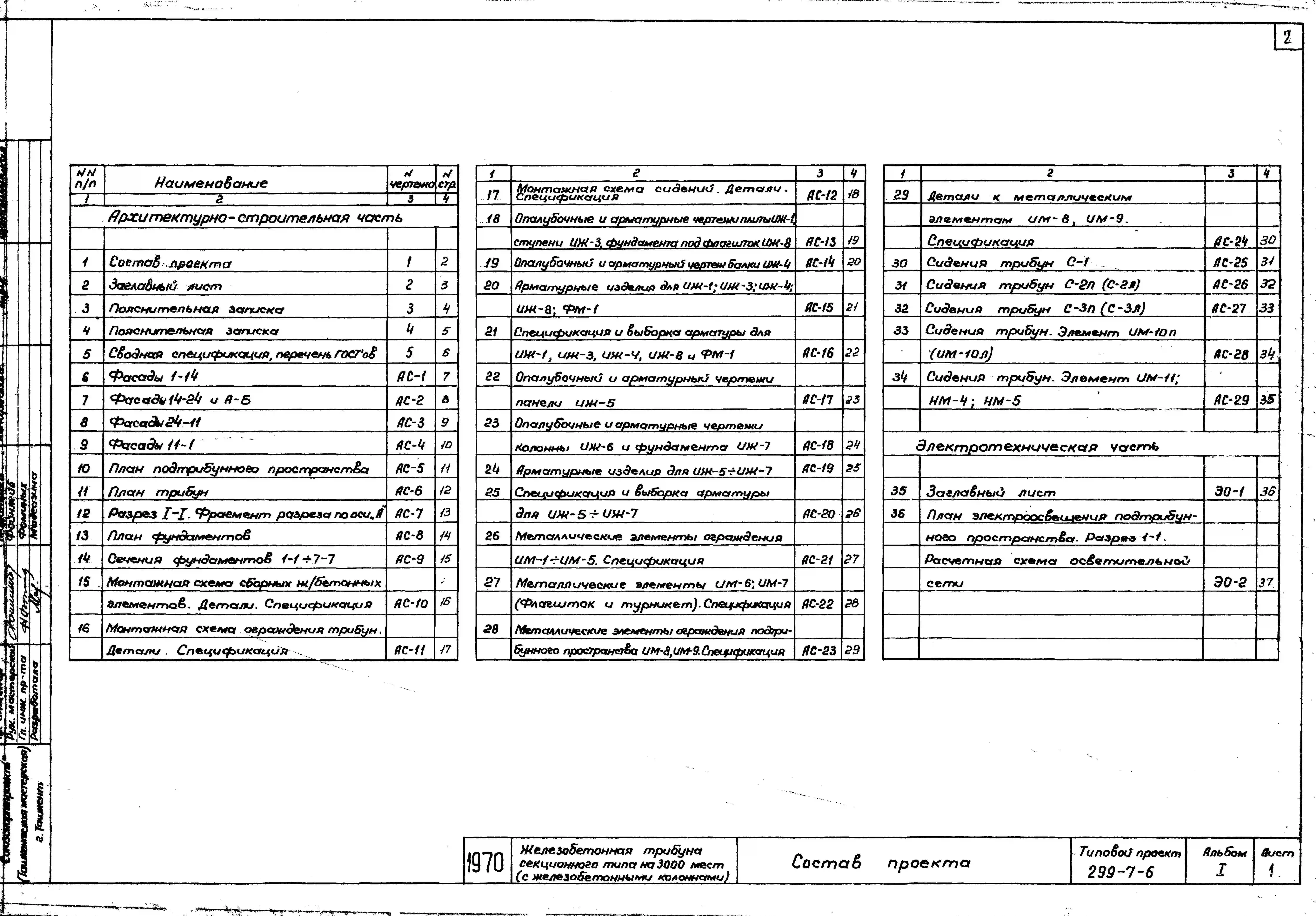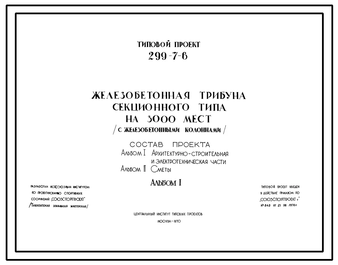 Типовой проект 299-7-6 Железобетонная трибуна секционного типа на 3000 мест с железобетонными столбами. Для строительства во 2 и 3 строительно-климатических зонах.