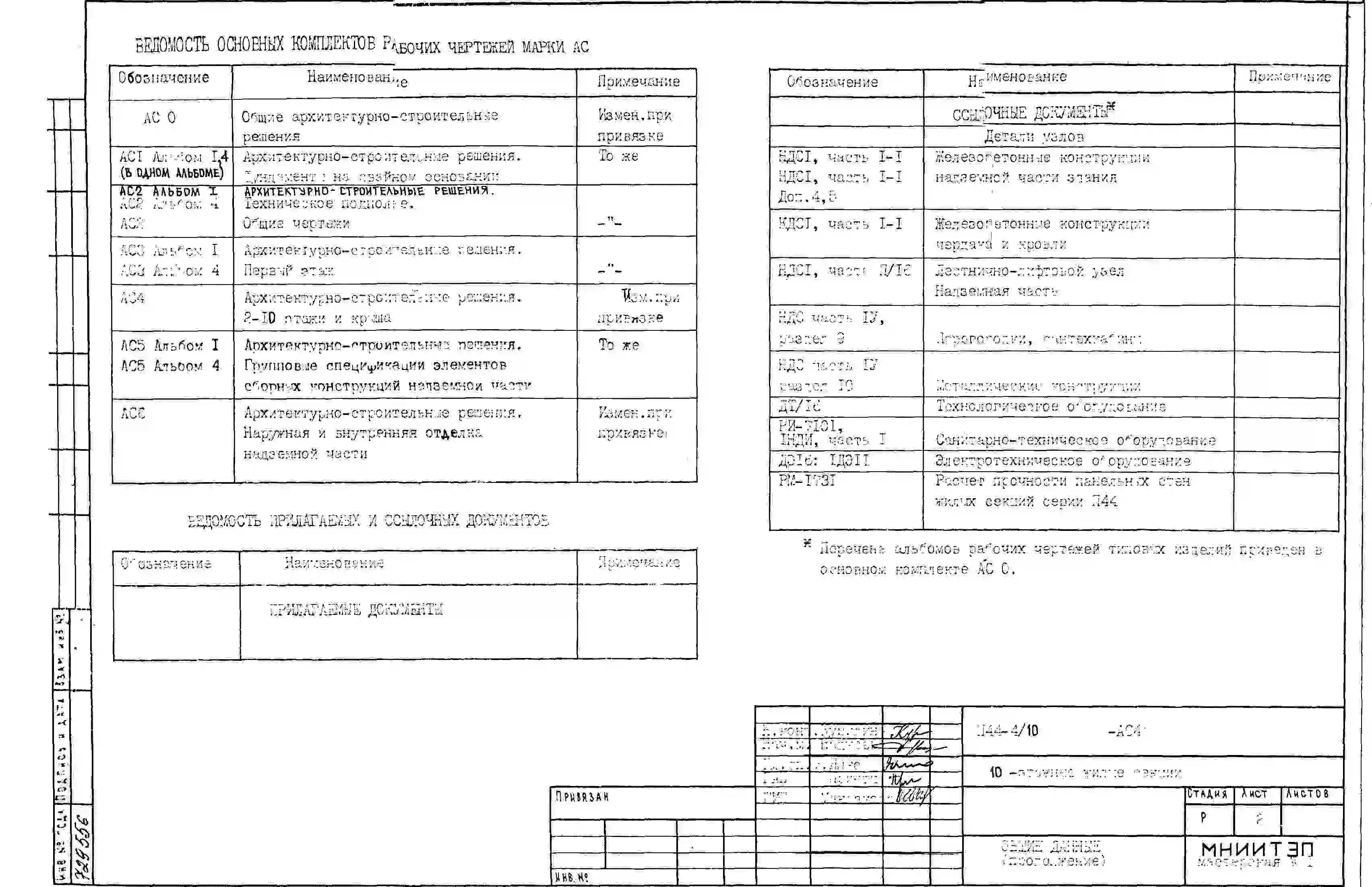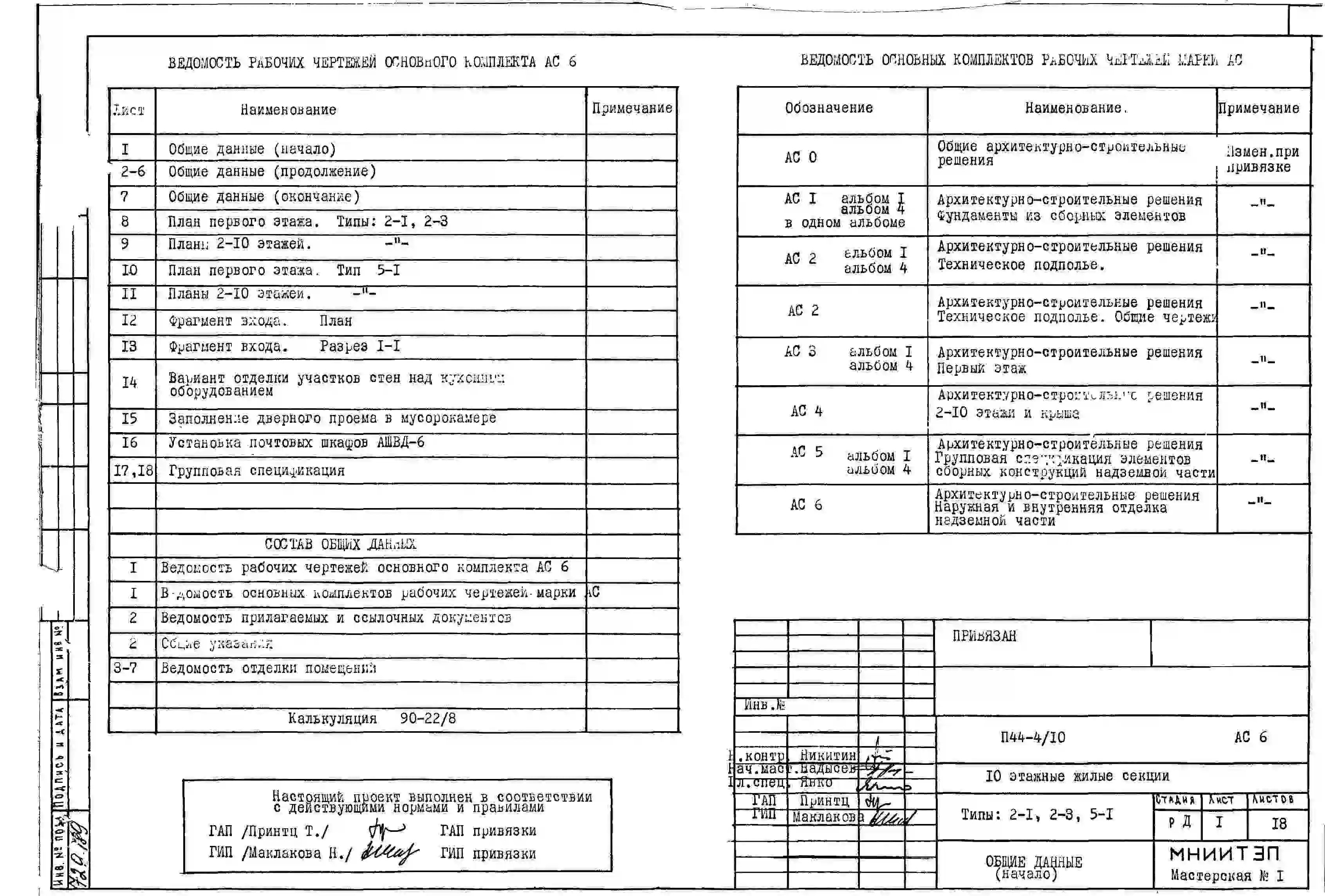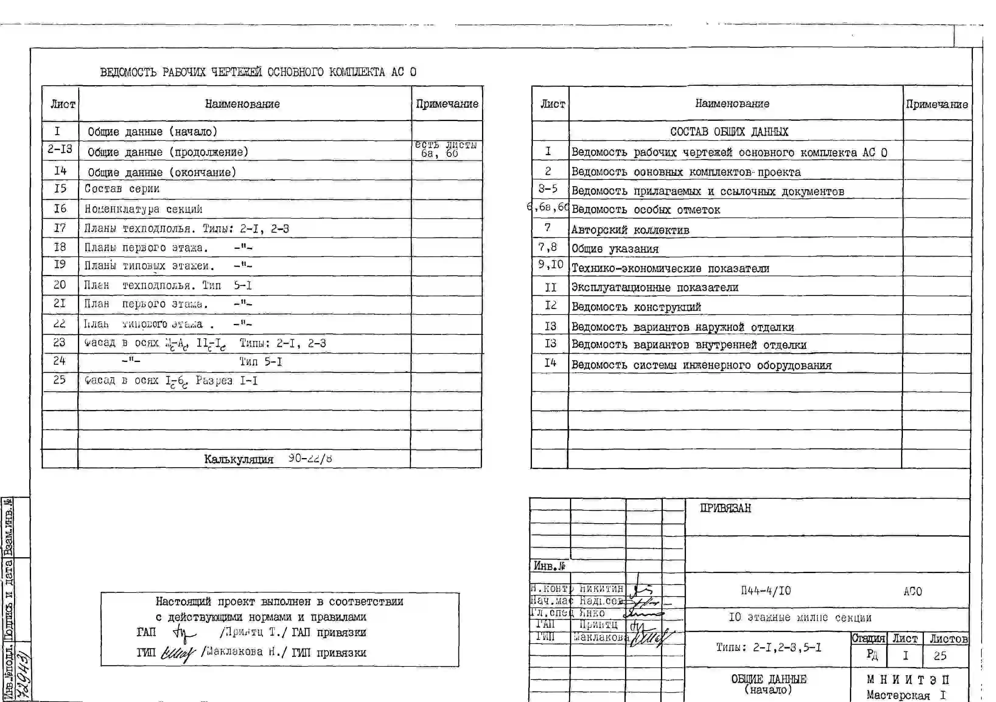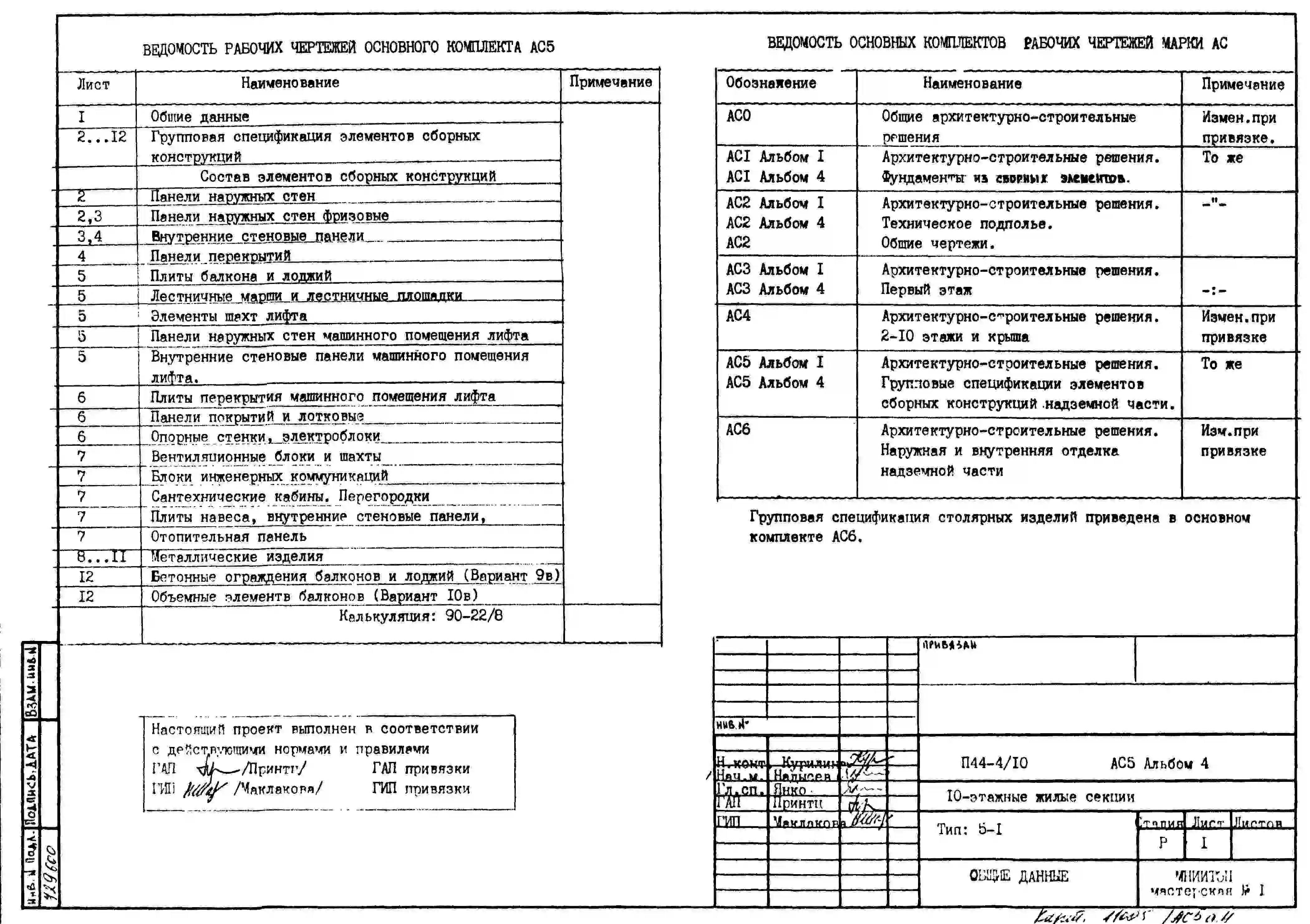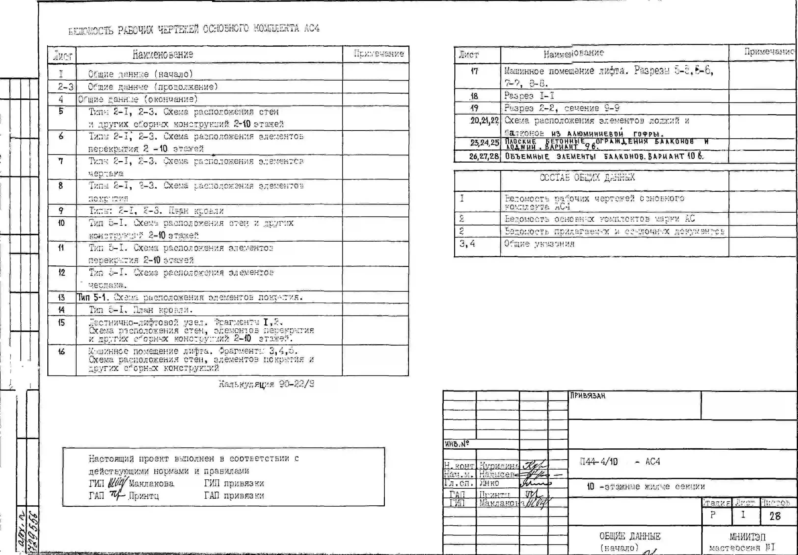 Типовой проект П44-4/10 10-этажные жилые секции серии П44-1/17