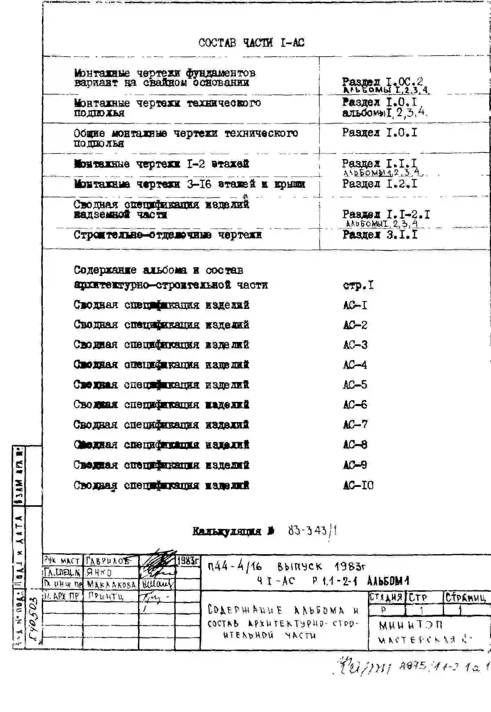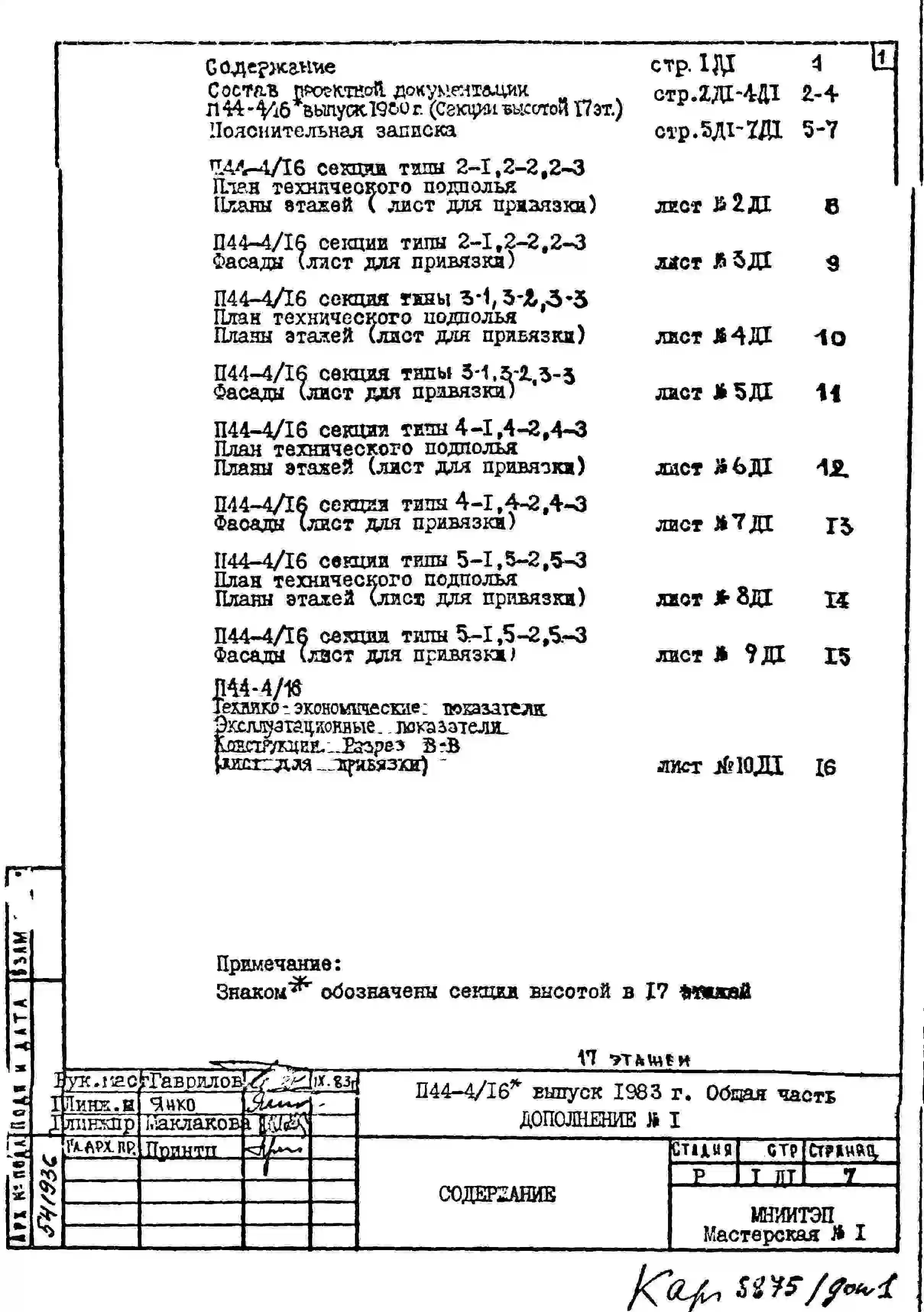 Типовой проект П44-4/16 16-этажные жилые секции