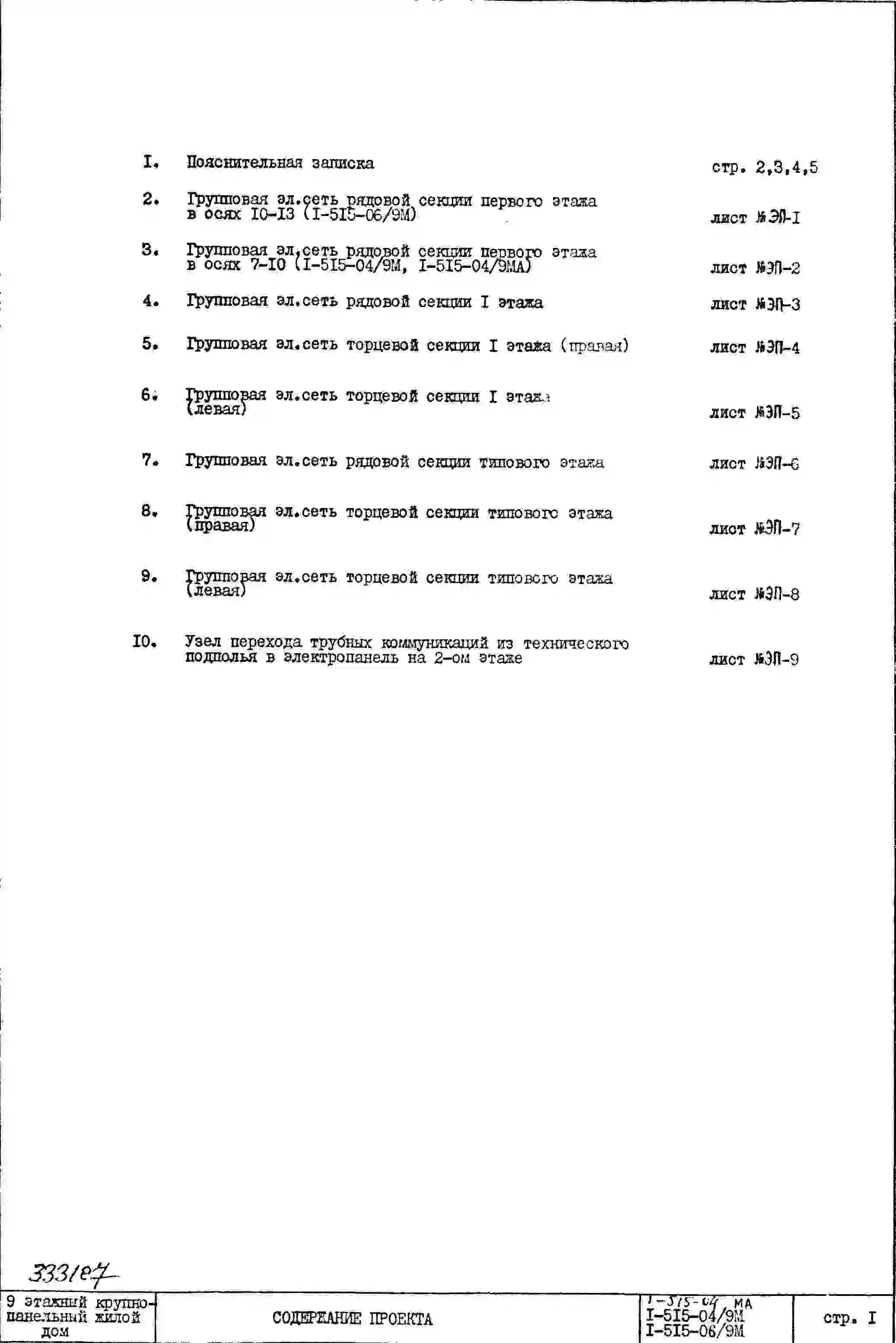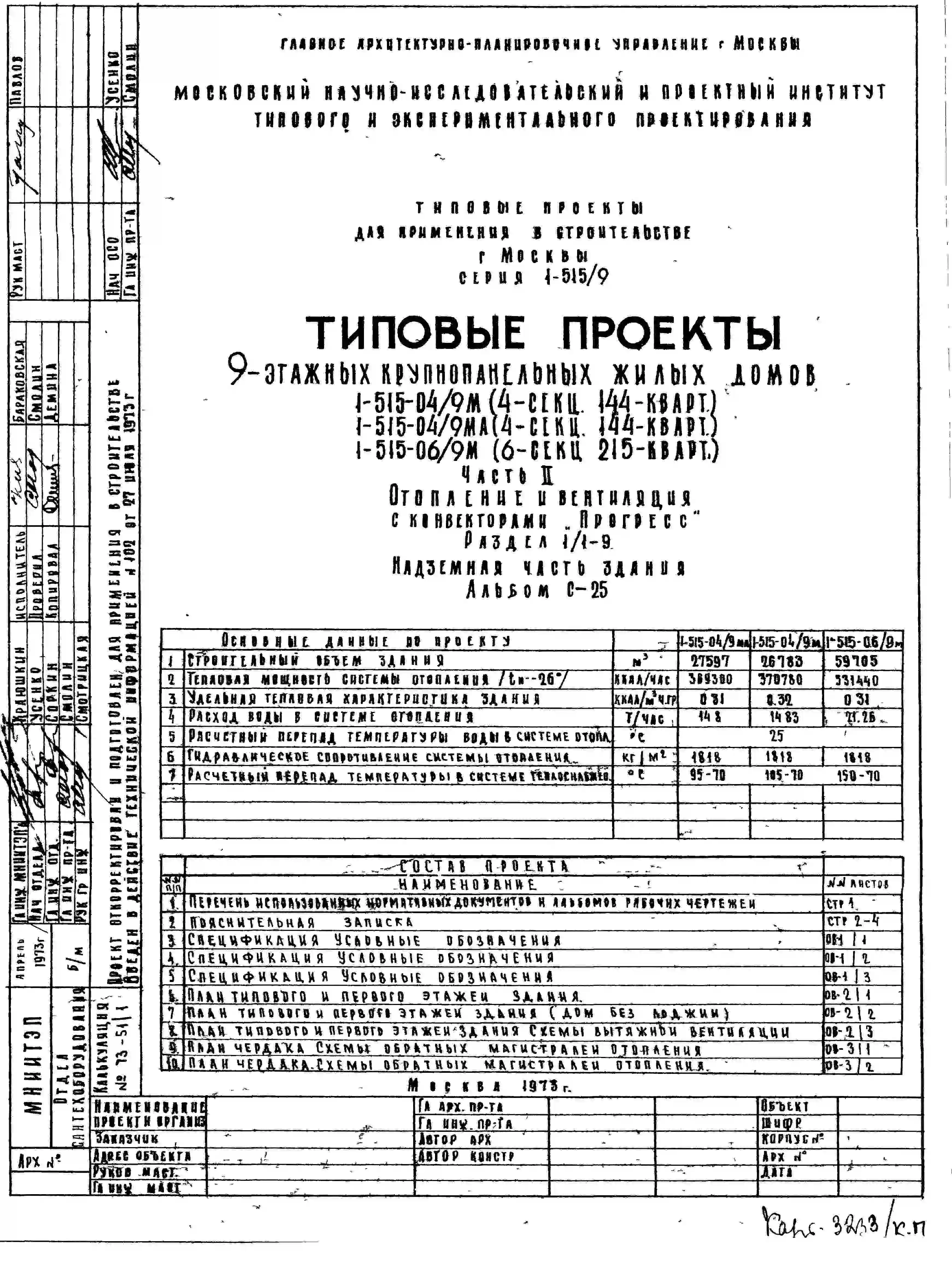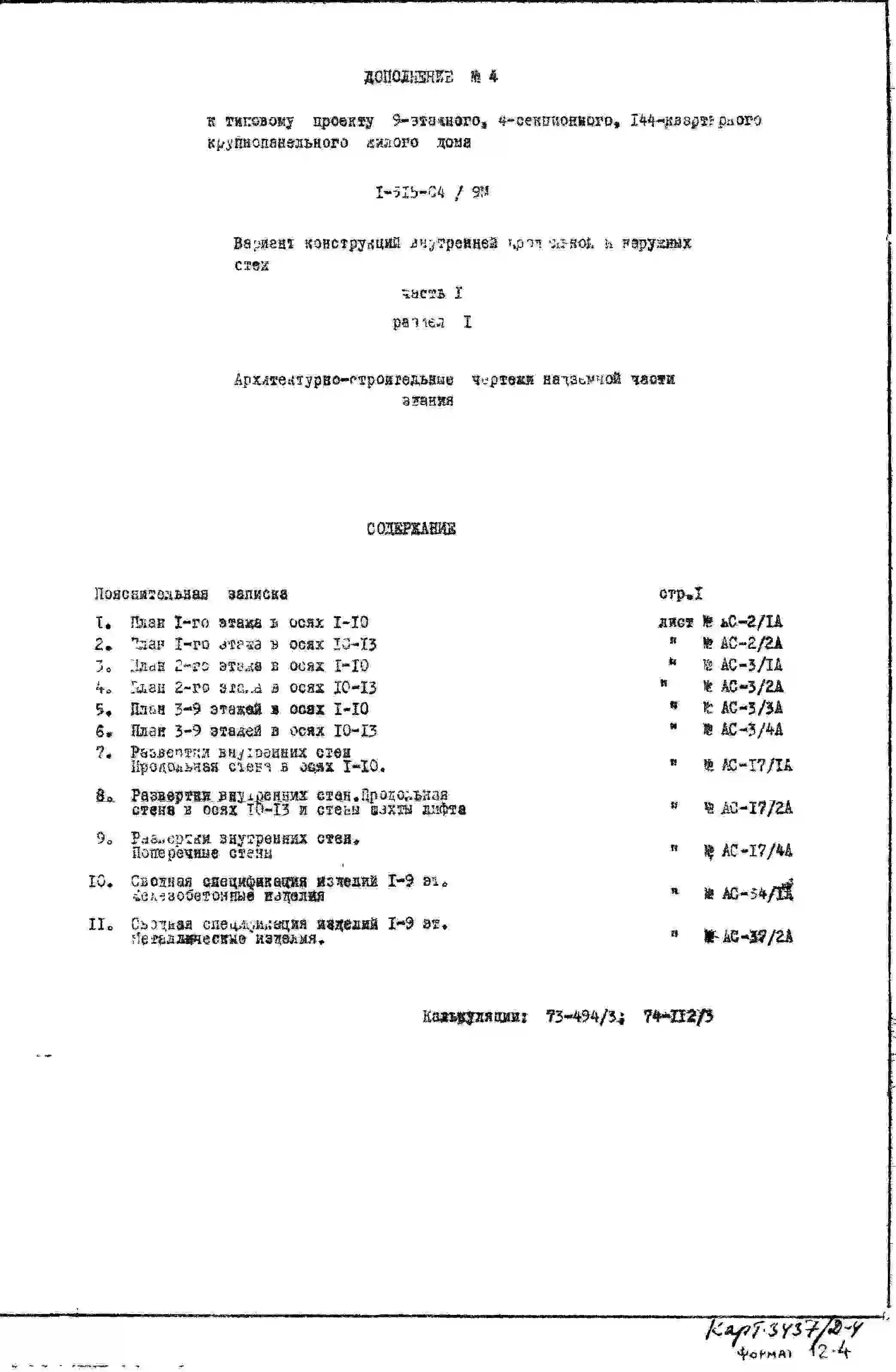 Типовой проект 1-515-04/9М Четырехсекционный дом на 144 квартиры (однокомнатных 3, двухкомнатных 79, трехкомнатных 53, четырехкомнатных 9).