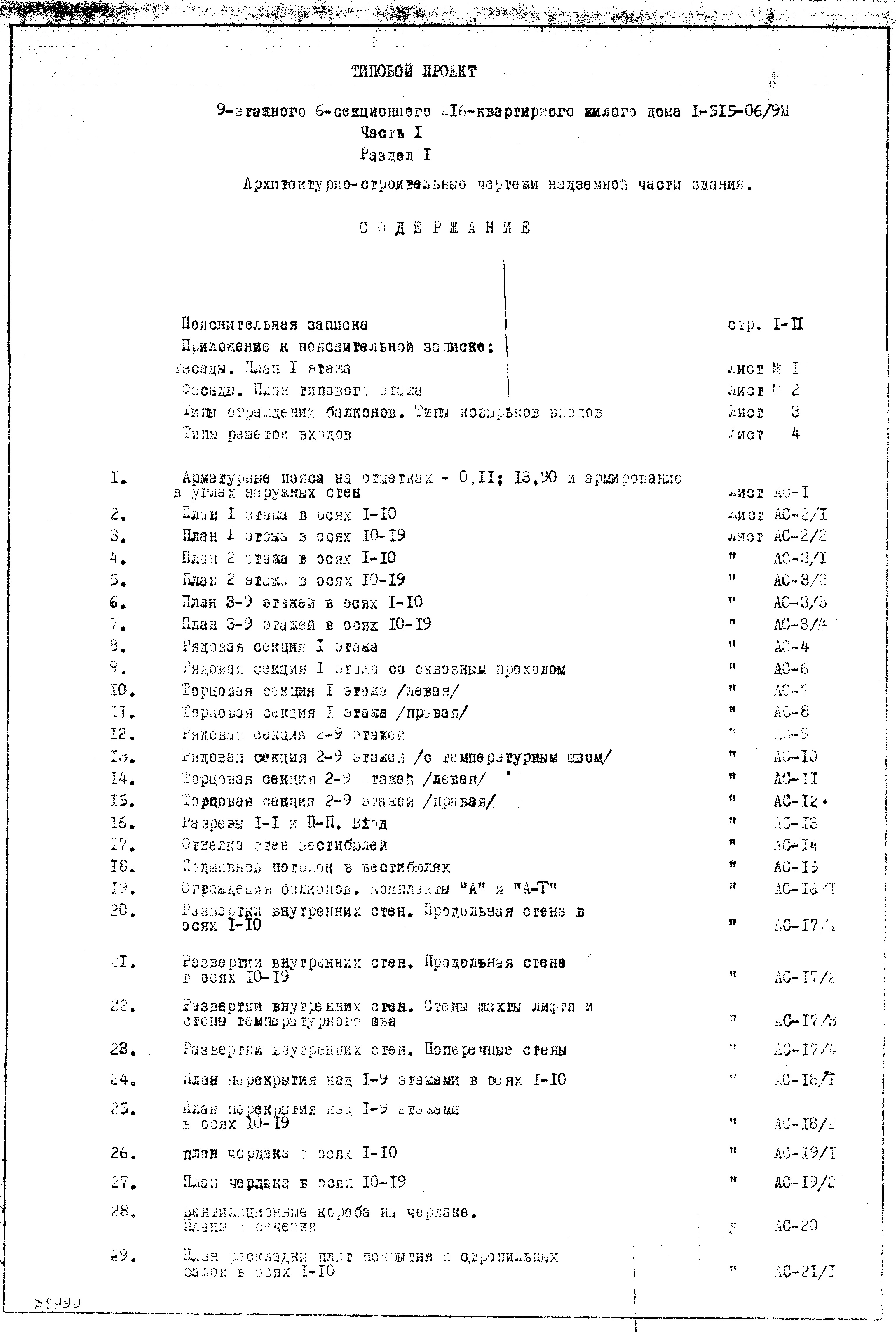 Типовой проект 1-515-06/9М Девятиэтажный шестисекционный крупнопанельный жилой дом на 216 квартир для строительства в г.Москве