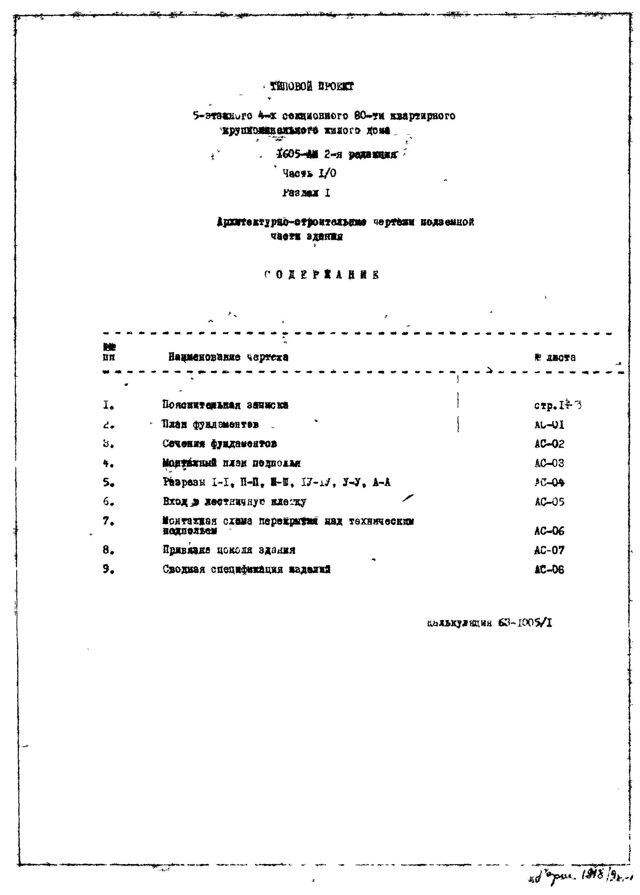 Типовой проект 1605-АМ 5-этажный 4-секционный 80 квартирный крупнопанельный жилой дом