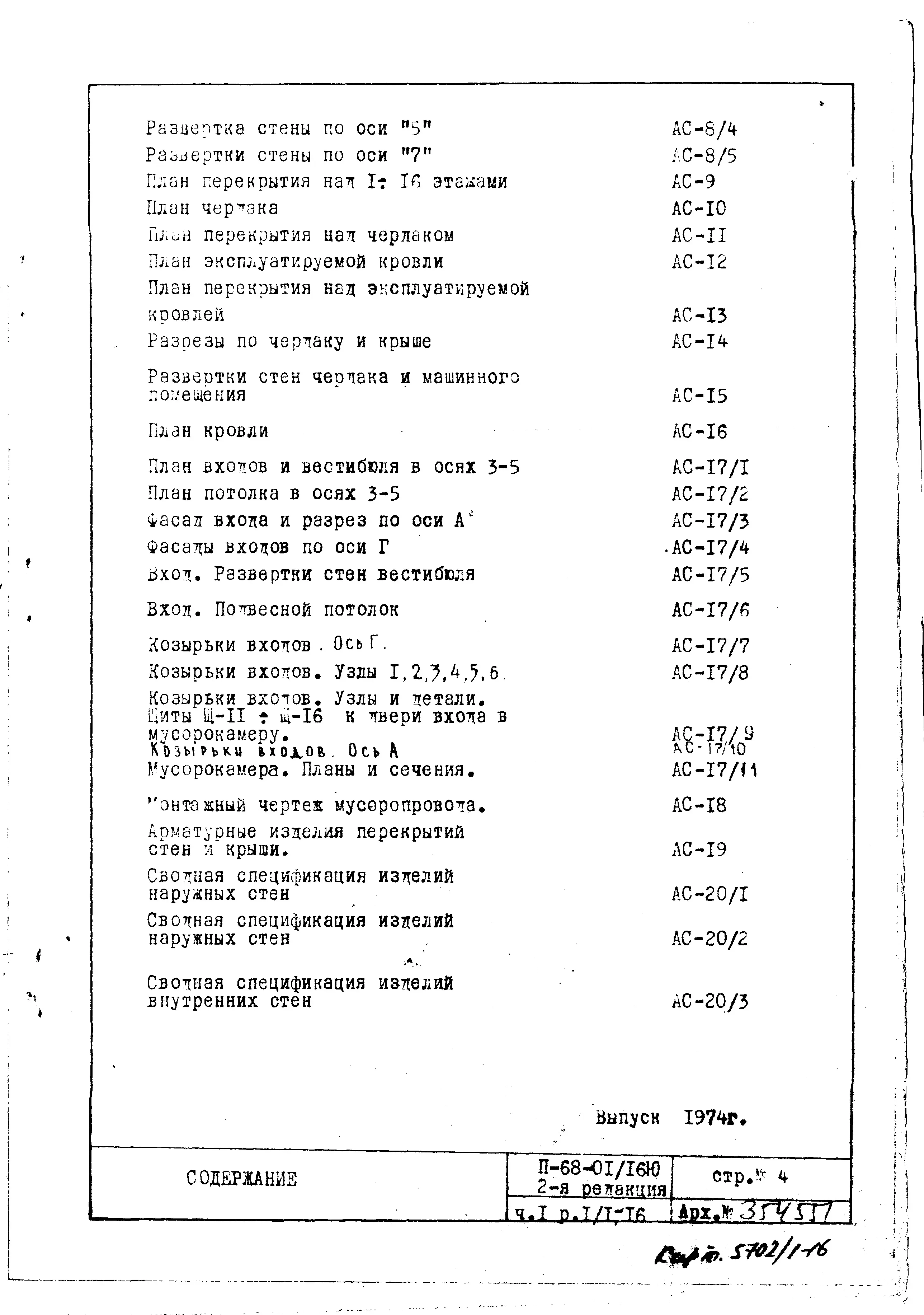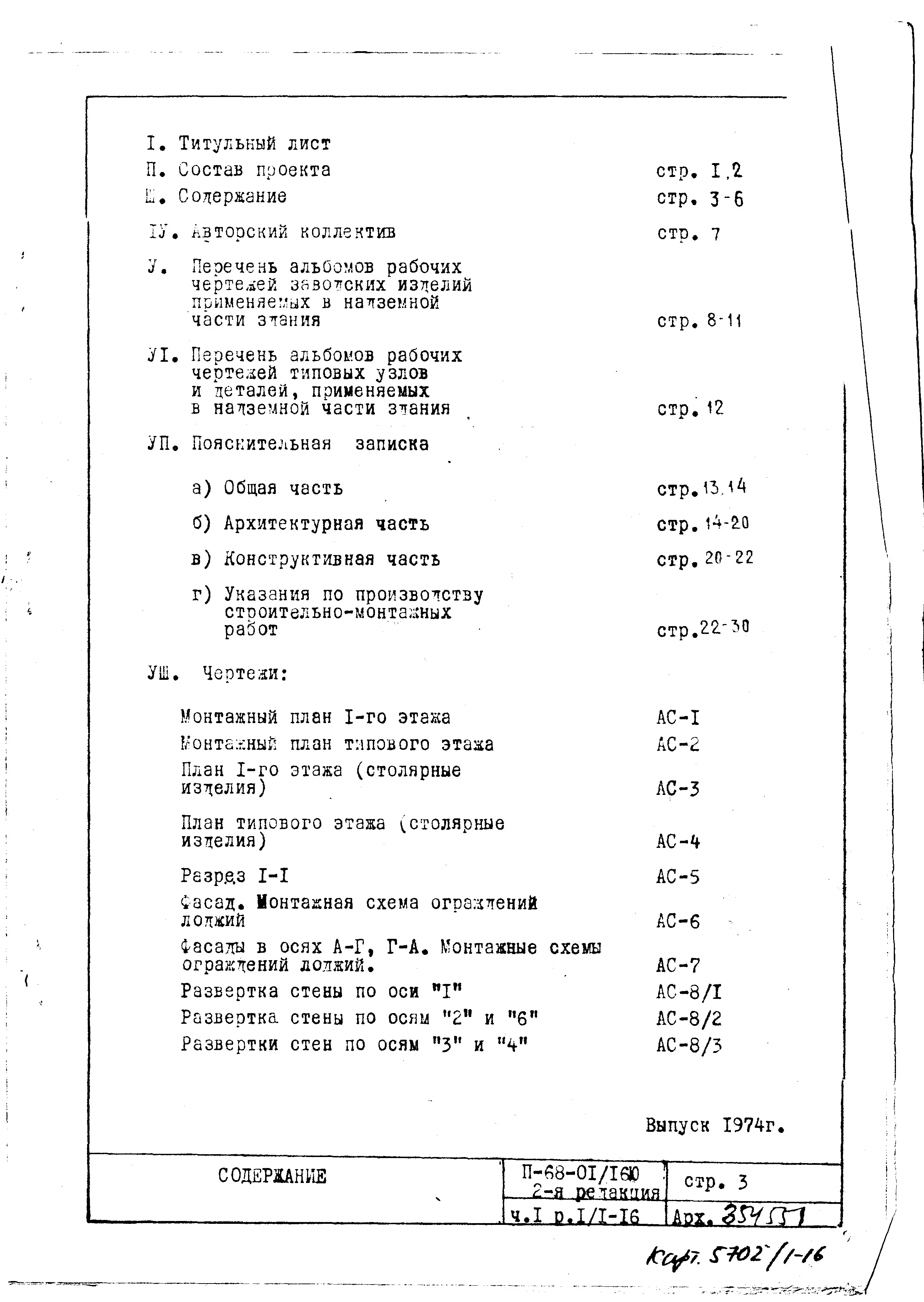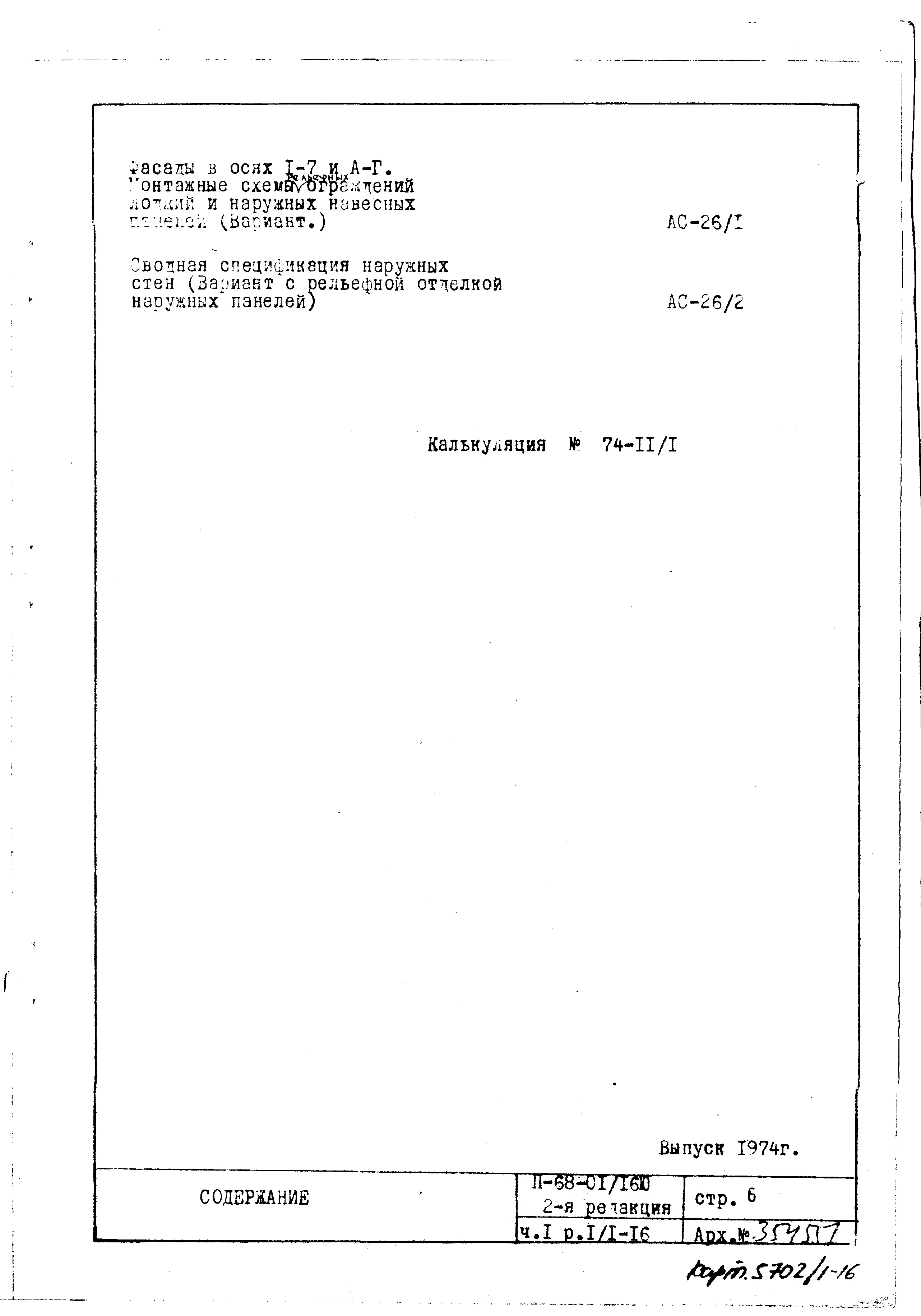Типовой проект II-68-01/16ю(2-Редакция Выпуск 1974 года) 16-этажный 111-квартирный жилой дом 2-Редакция Выпуск 1974 года