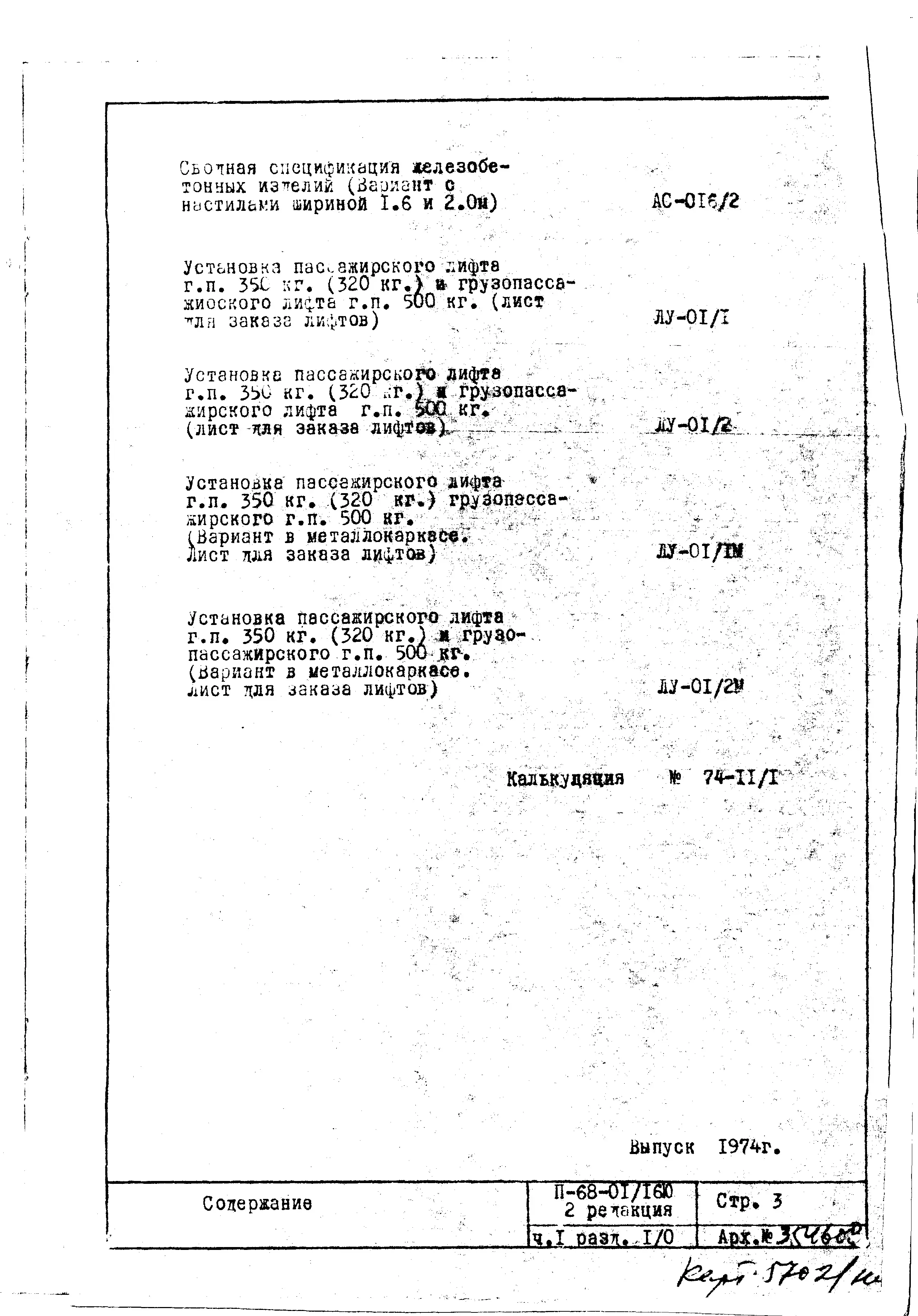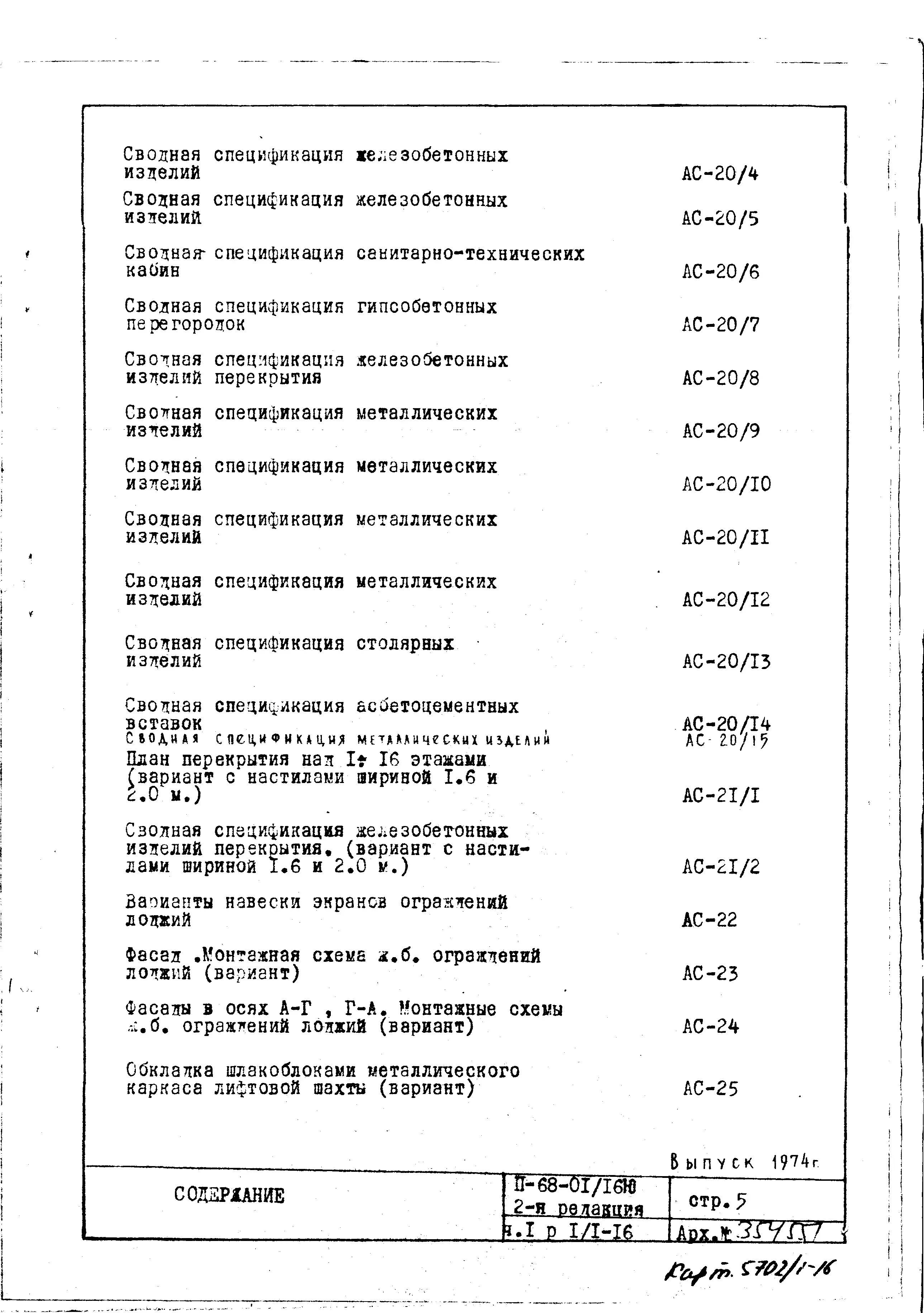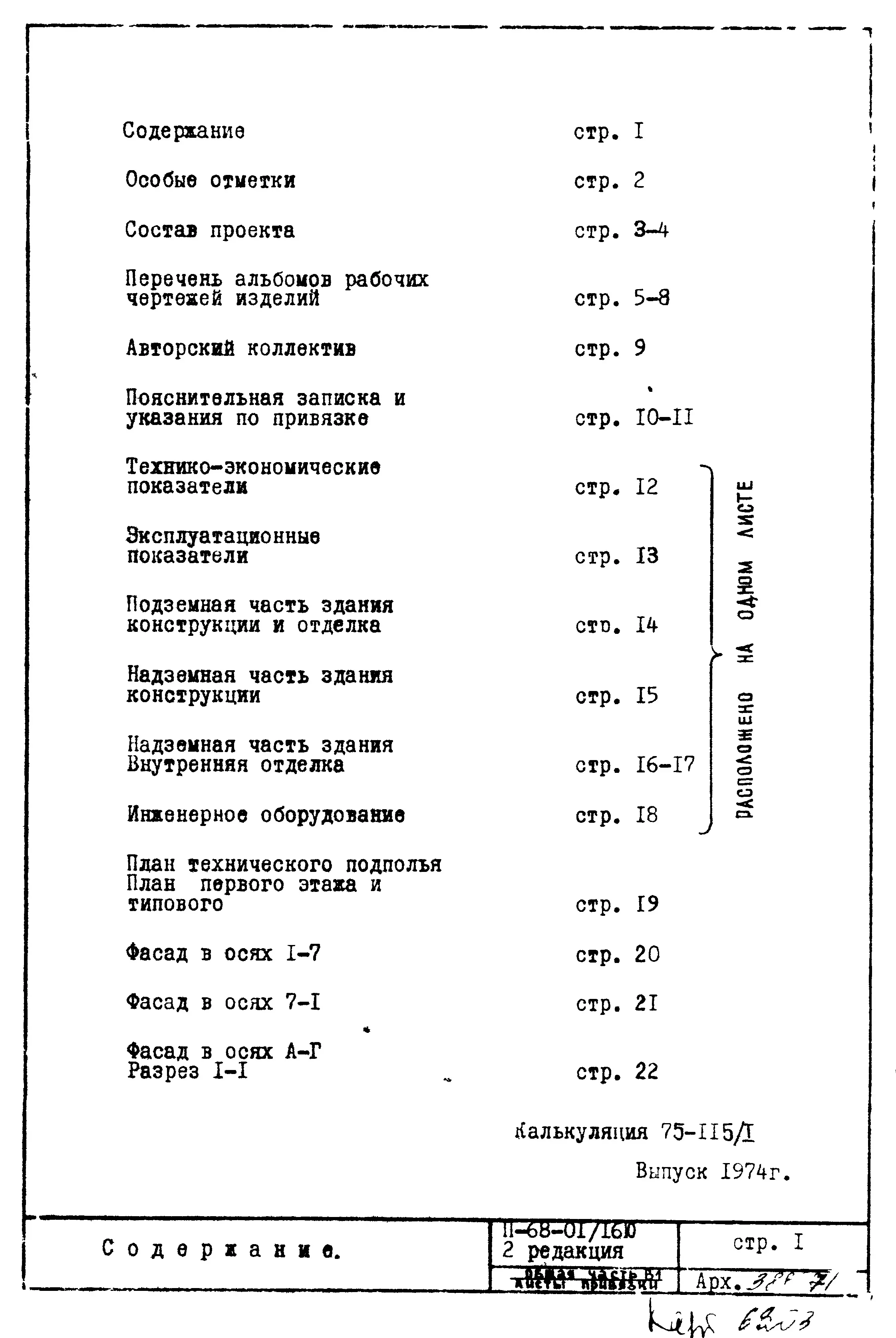 Типовой проект II-68-01/16ю(2-Редакция Выпуск 1974 года) 16-этажный 111-квартирный жилой дом 2-Редакция Выпуск 1974 года