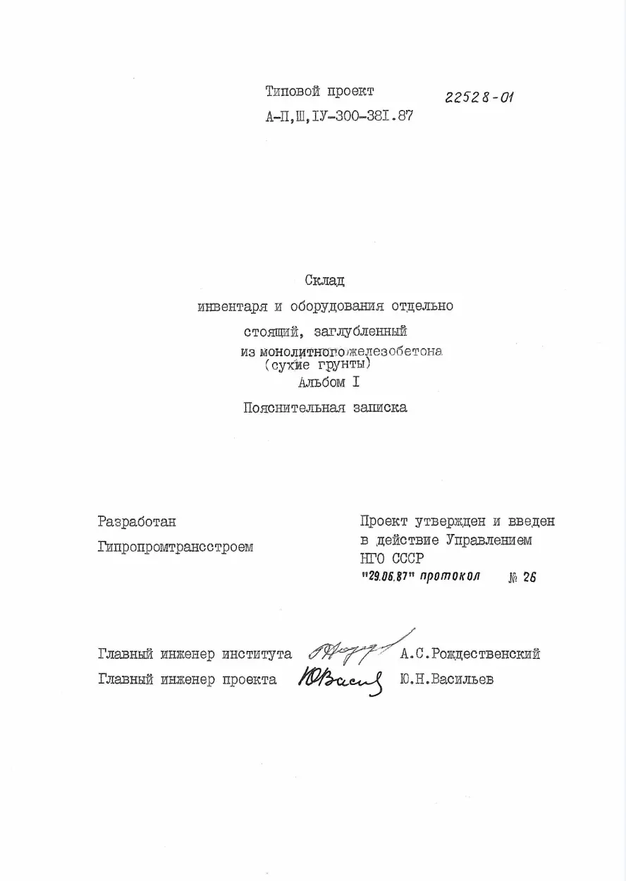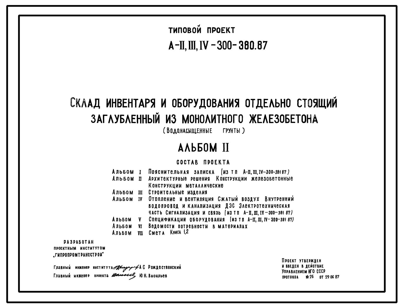 Типовой проект А-II,III,IV-300-380.87 Склад материалов и оборудования отдельно стоящий заглубленный. Стены монолитные железобетонные (убежище на 300 человек, размеры убежища 18м на 17,5м, режимы вентиляции 1,2,3)