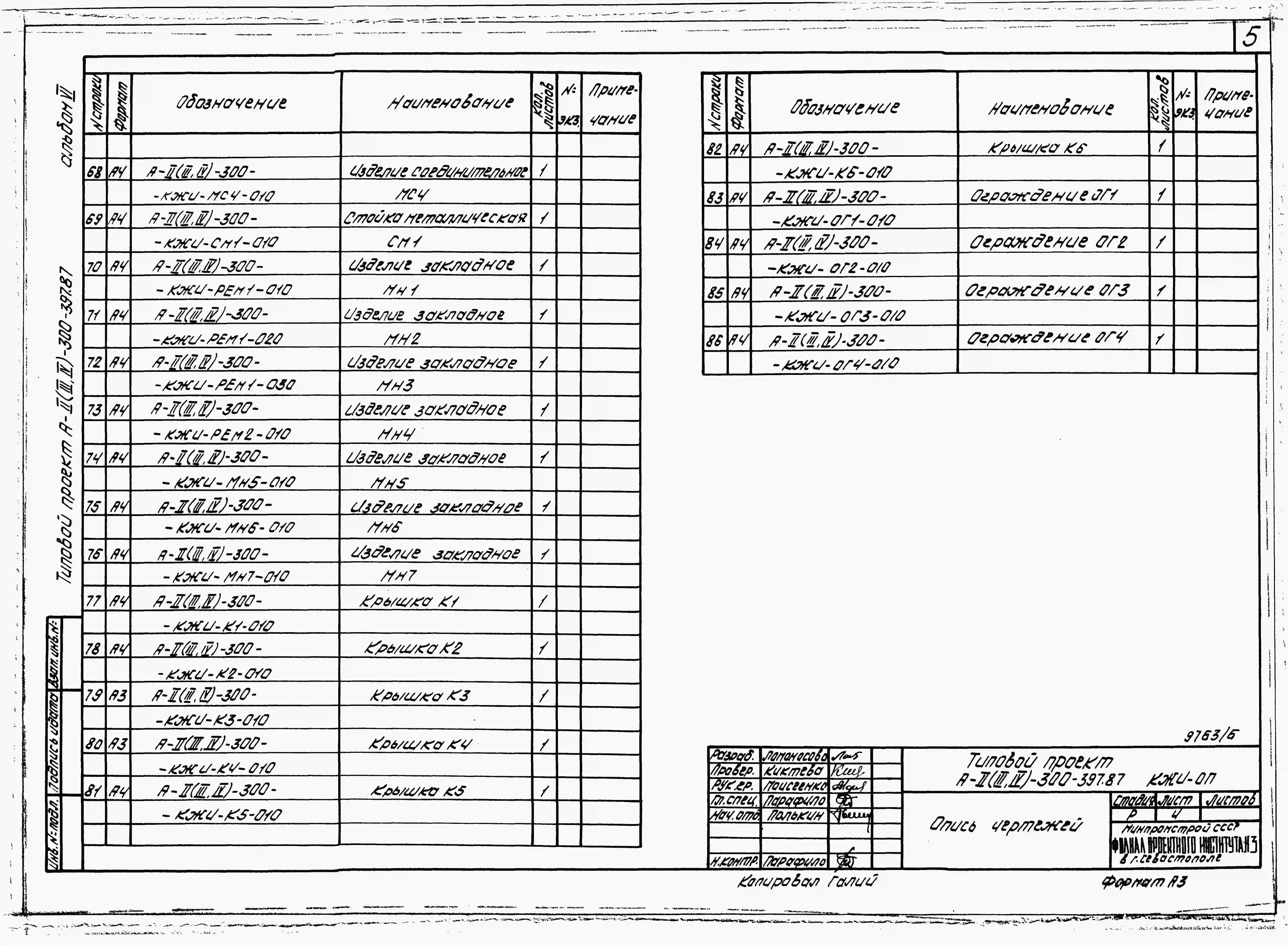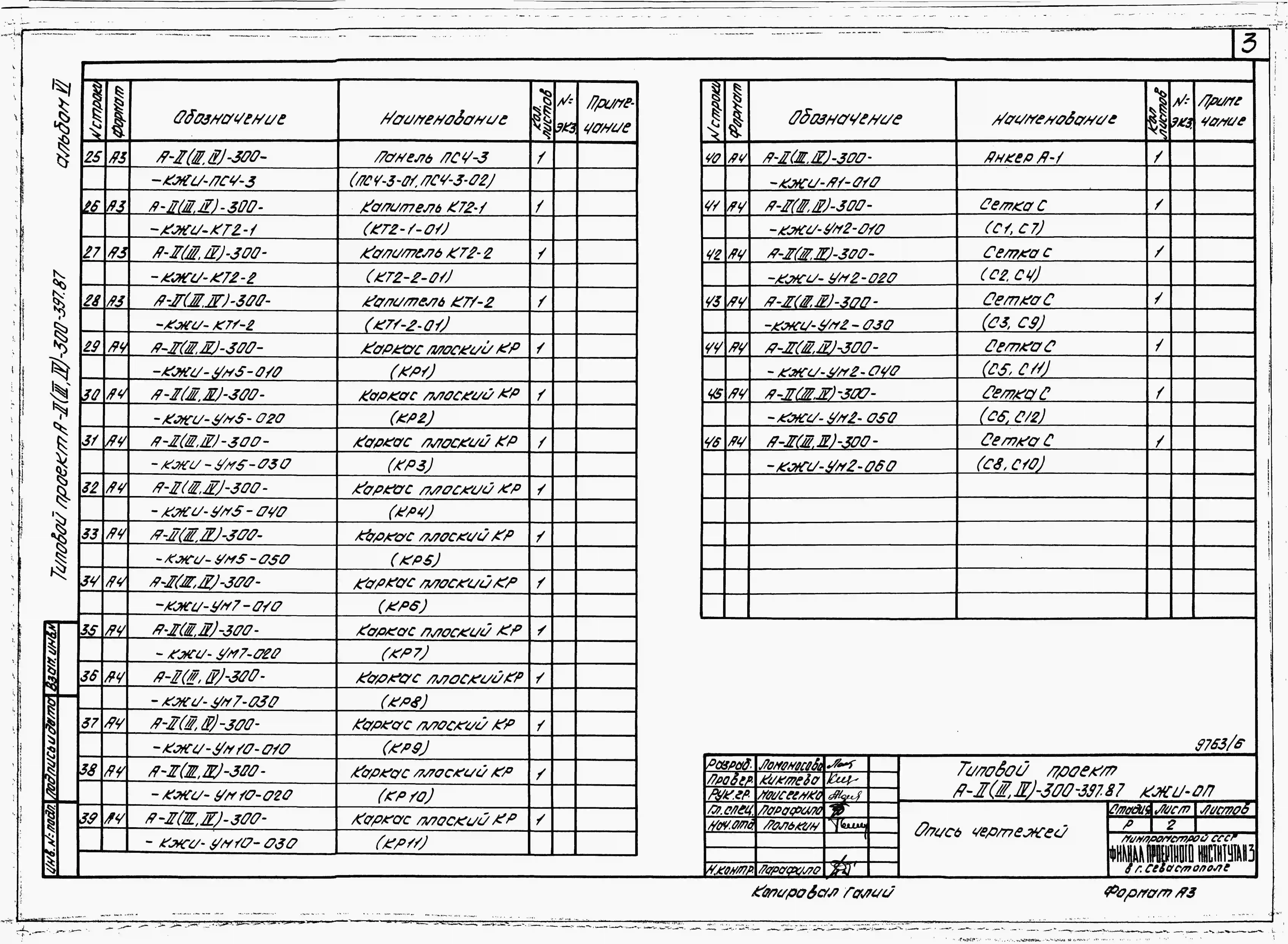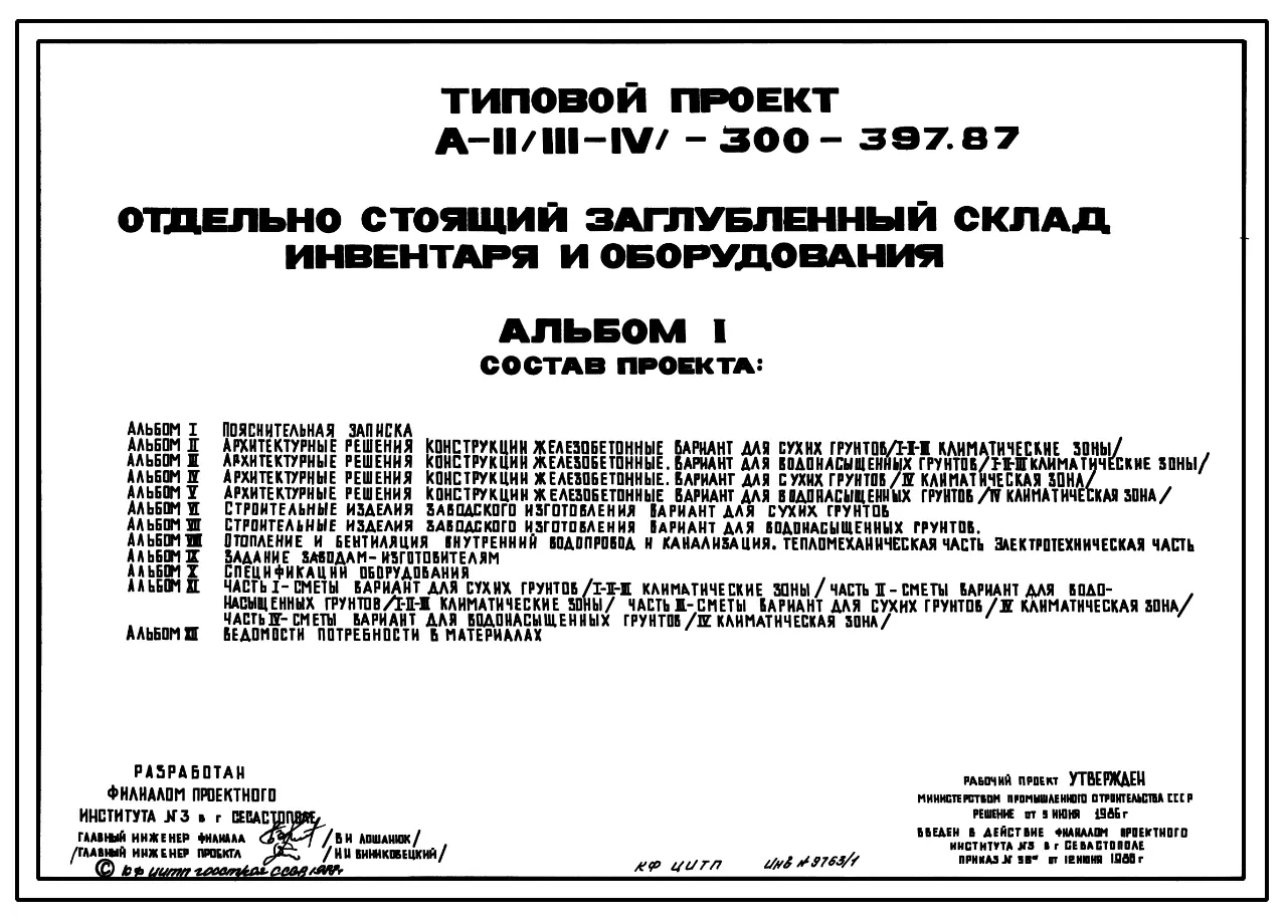 Типовой проект А-II,III,IV-300-397.87 Заглубленный склад инвентаря и оборудования отдельно стоящий (в сухих и водонасыщенных грунтах) (убежище на 300 человек, размеры убежища 18м на 12м, 24м на 12м, режимы вентиляции убежища 1,2)