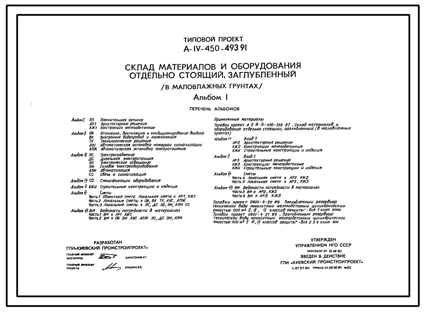 Типовой проект А-IV-450-493.91 Заглубленный склад материалов и оборудования отдельно стоящий в маловлажных грунтах (убежище на 450 человек, размеры убежища 30м на 12м, режим вентиляции убежища 1,2,3)
