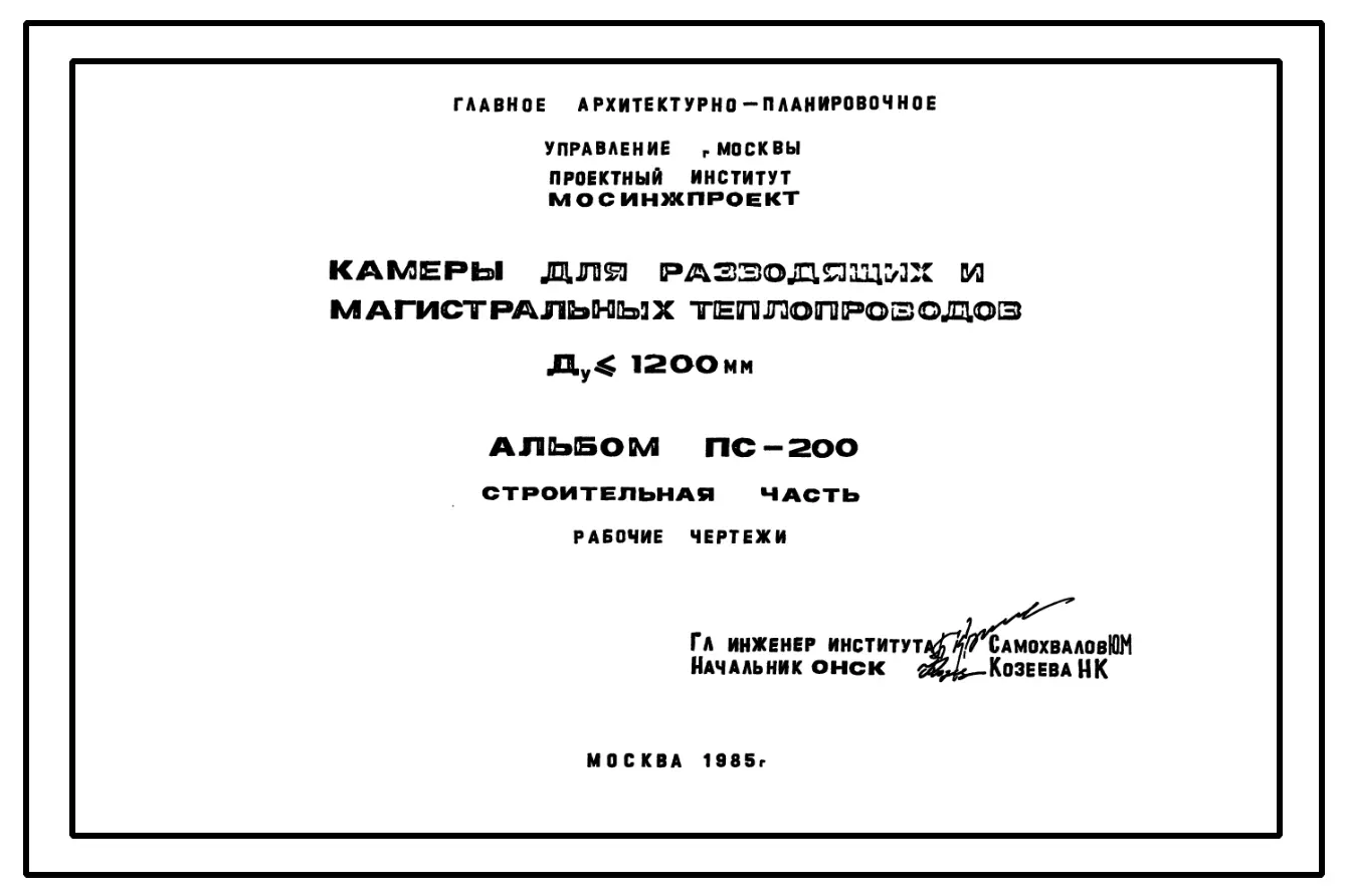Альбом ПС-200 Камеры для разводящих и магистральных теплопроводов Ду<1200 мм