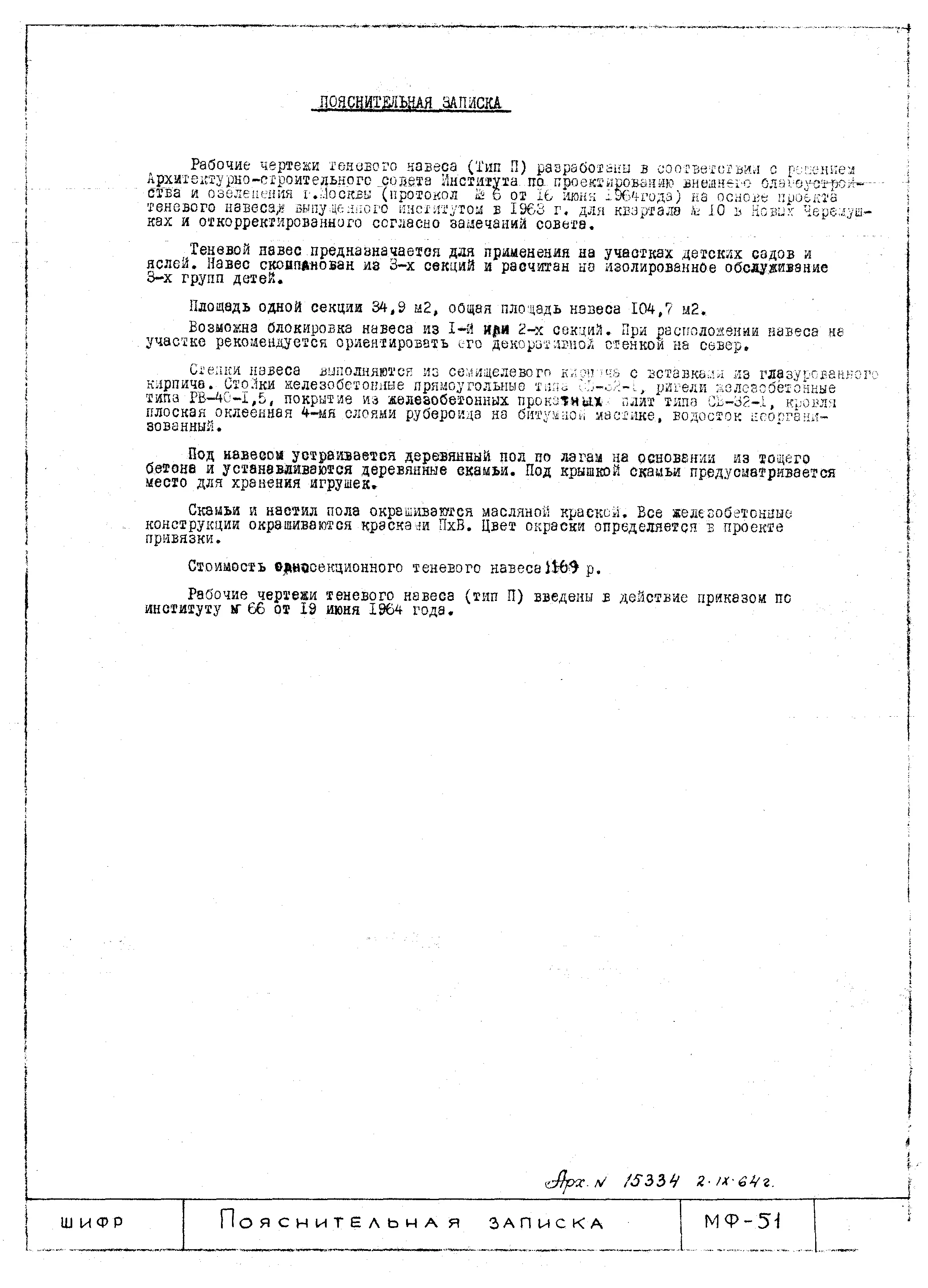 Шифр МФ-51 Теневой навес Тип 2 (1964 год)