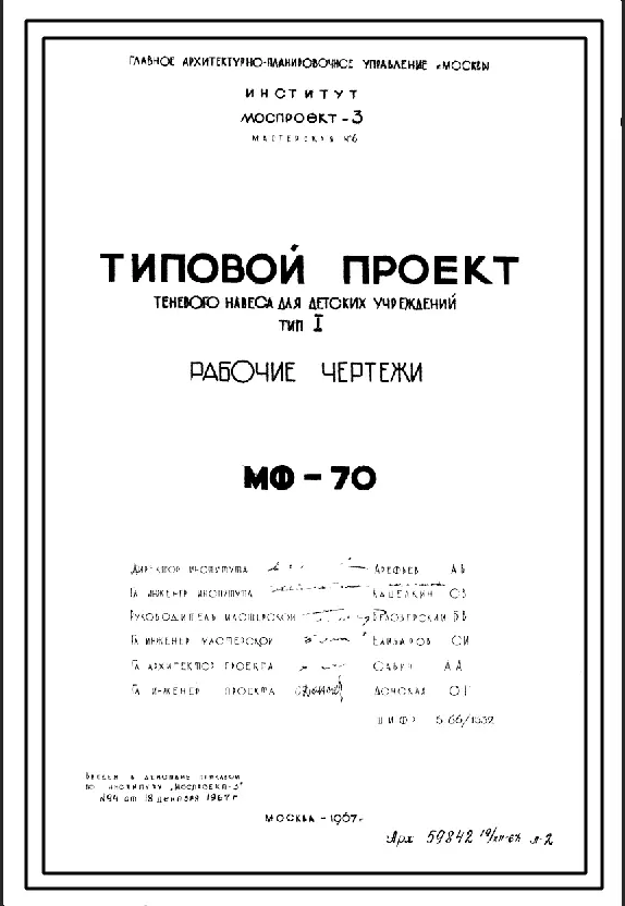 Шифр МФ-70 Теневой навес для детских учреждений Тип I (1967 год)
