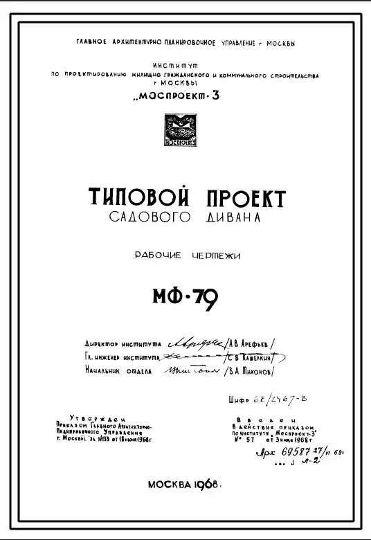Шифр МФ-79 Садовый диван (1968 год )