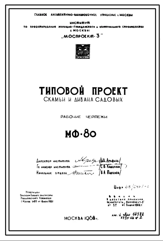 Шифр МФ-80 Скамьи и диваны садовые (1968 год )