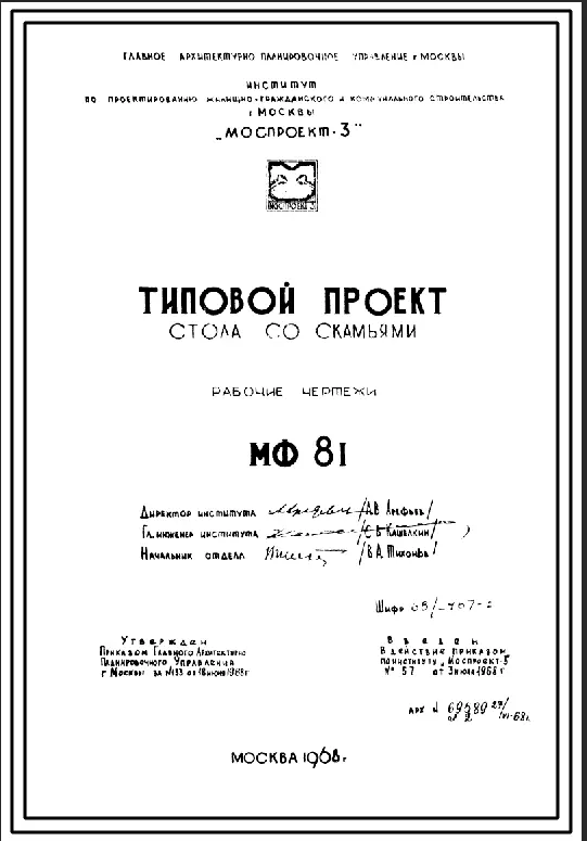 Шифр МФ-81 Стол со скамьями (1968 год )