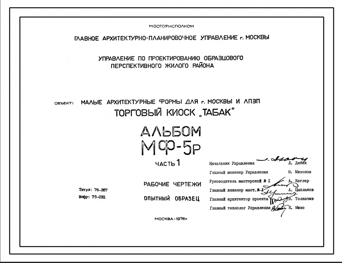 Шифр МФ-5р Торговый киоск Табак(1976г.)