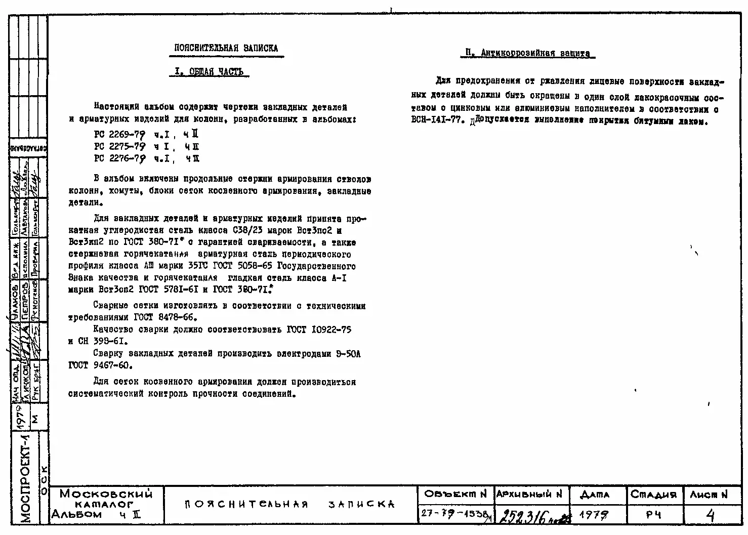 Шифр РС 2276-79 Колонны двухэтажные сечением 400х400 мм (1979 г.)