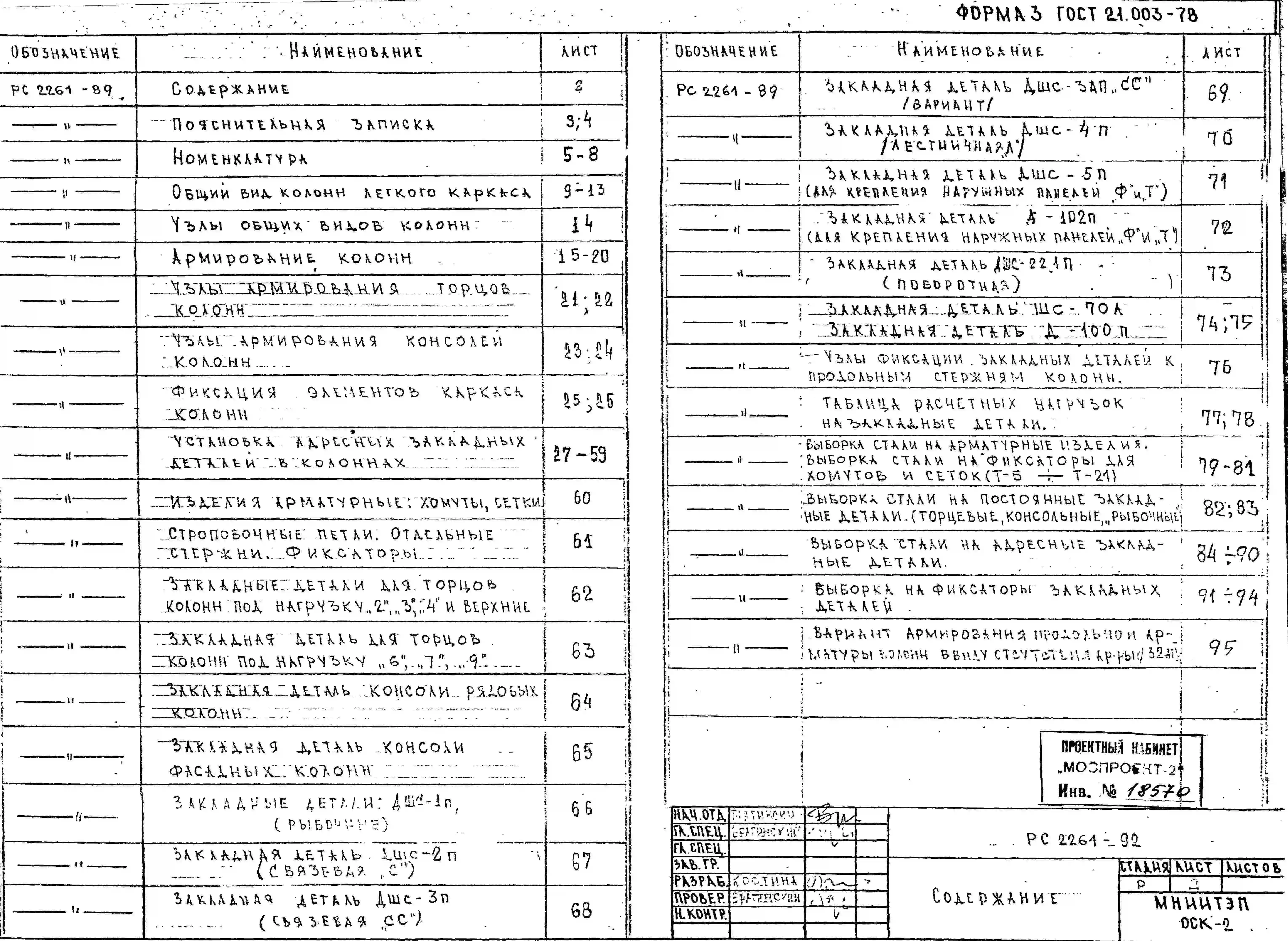 Шифр РС 2261-92 Колонны легкого каркаса (1992 г.)