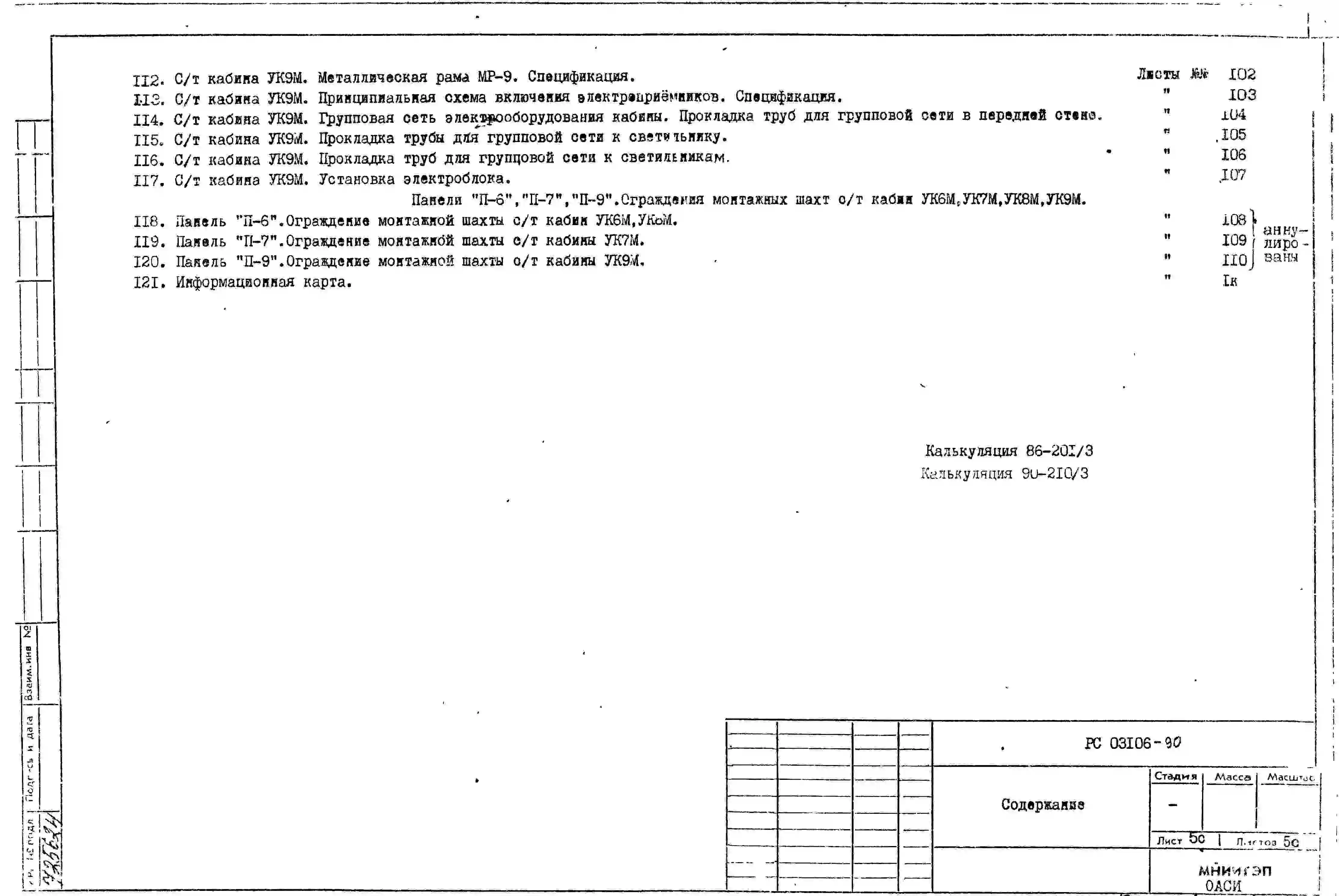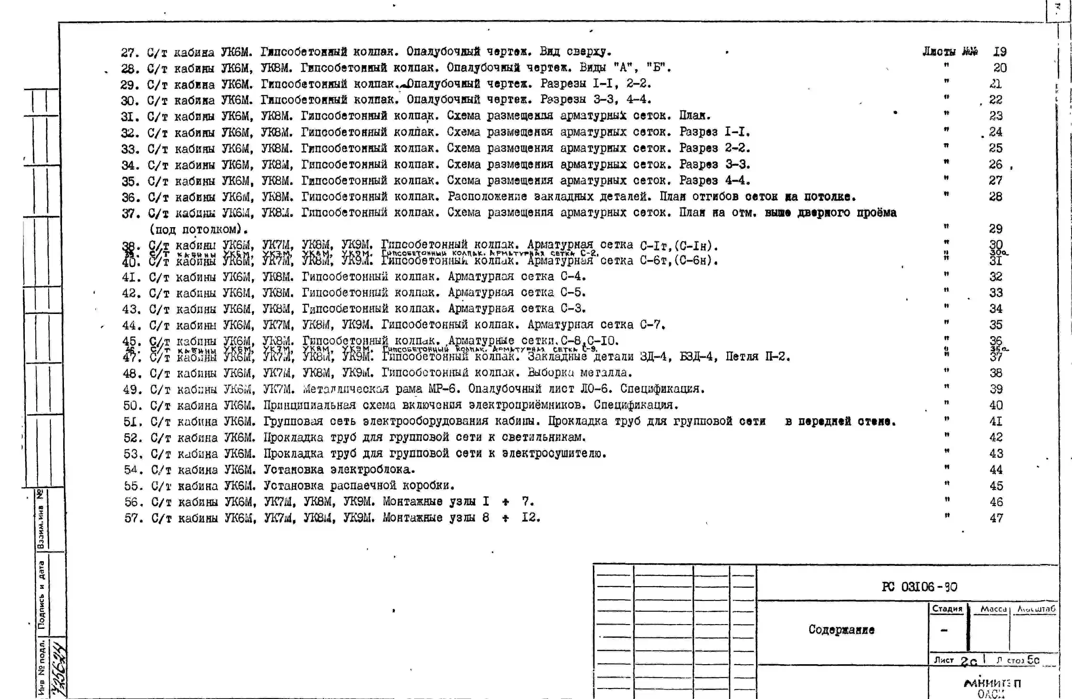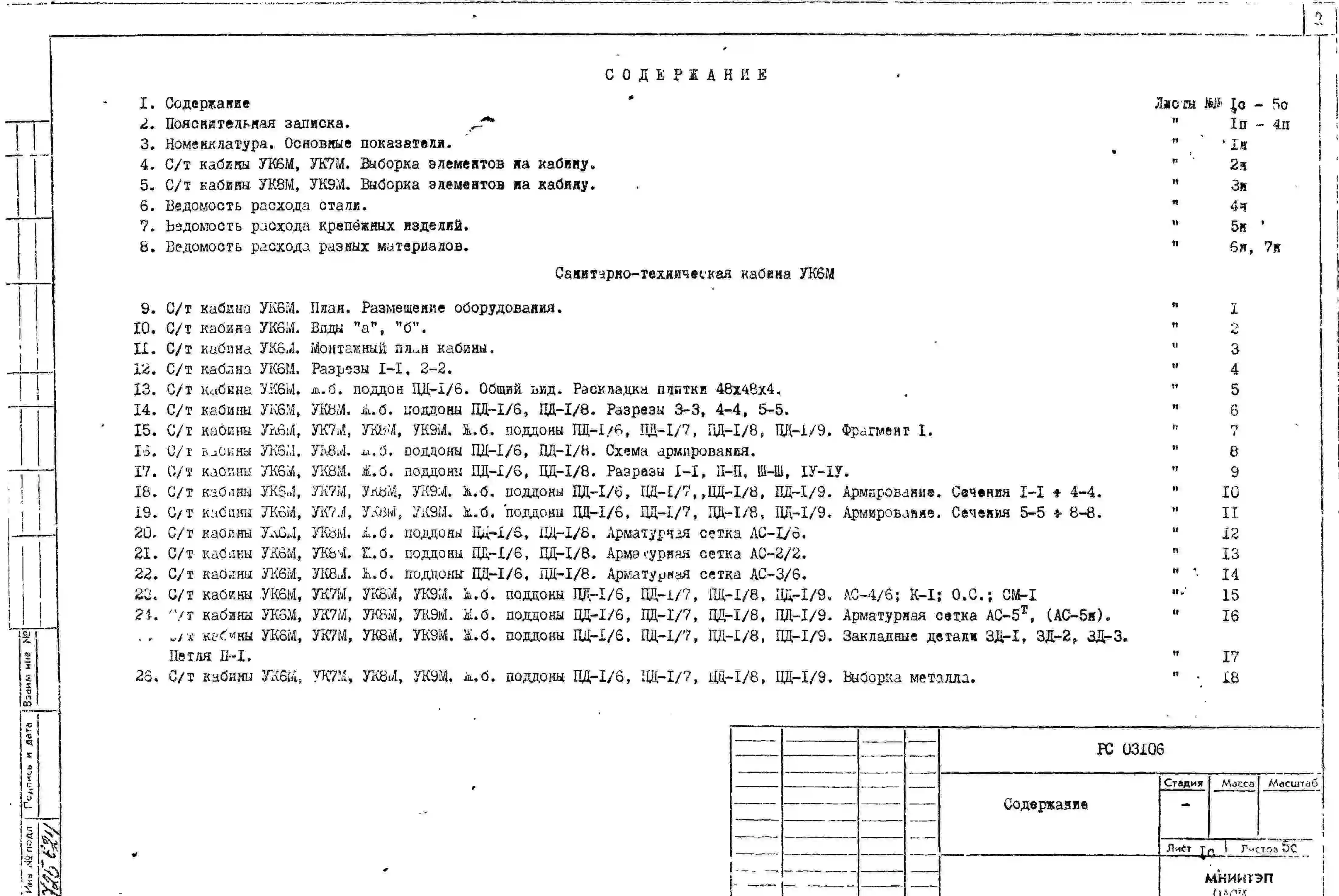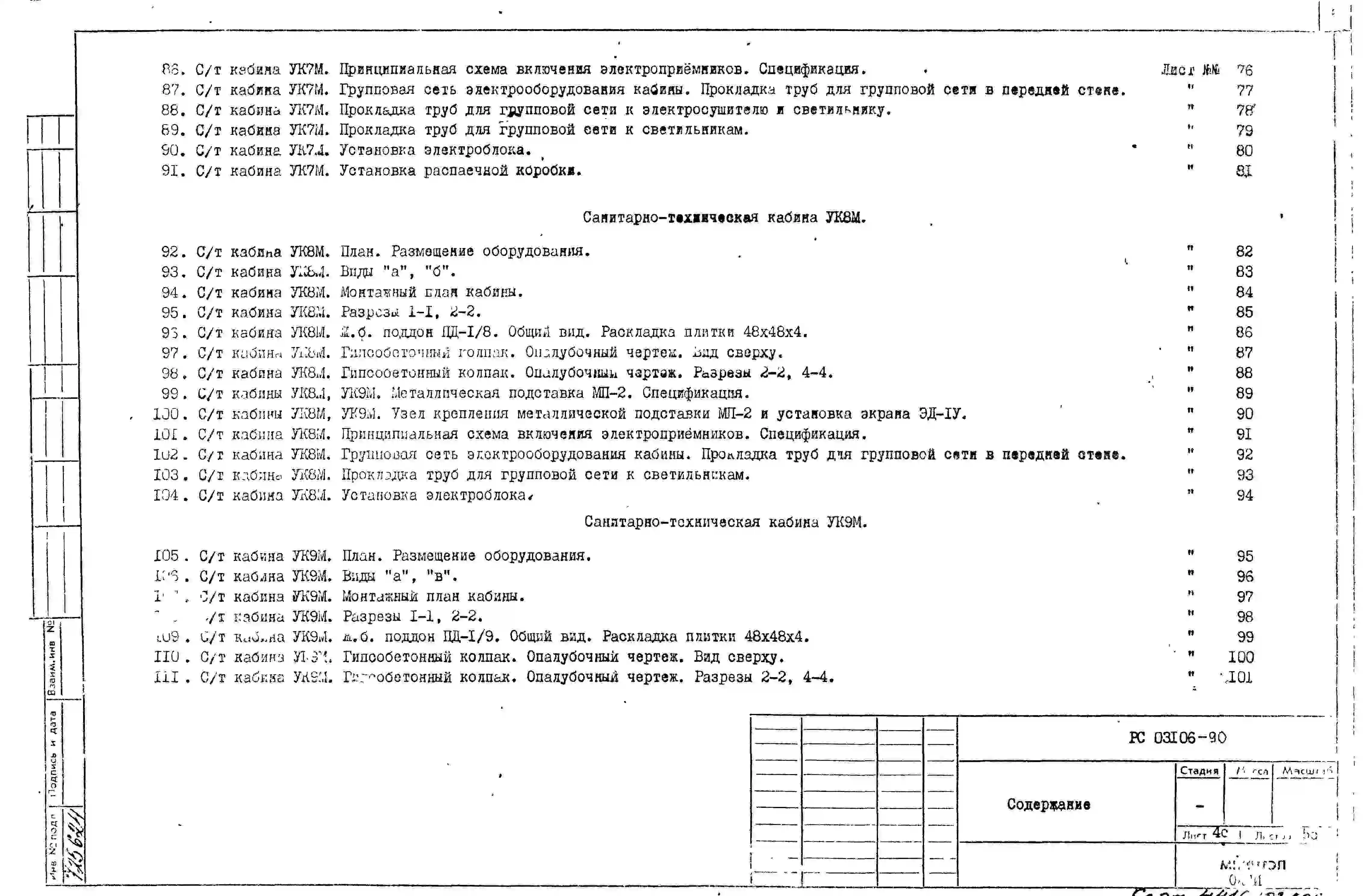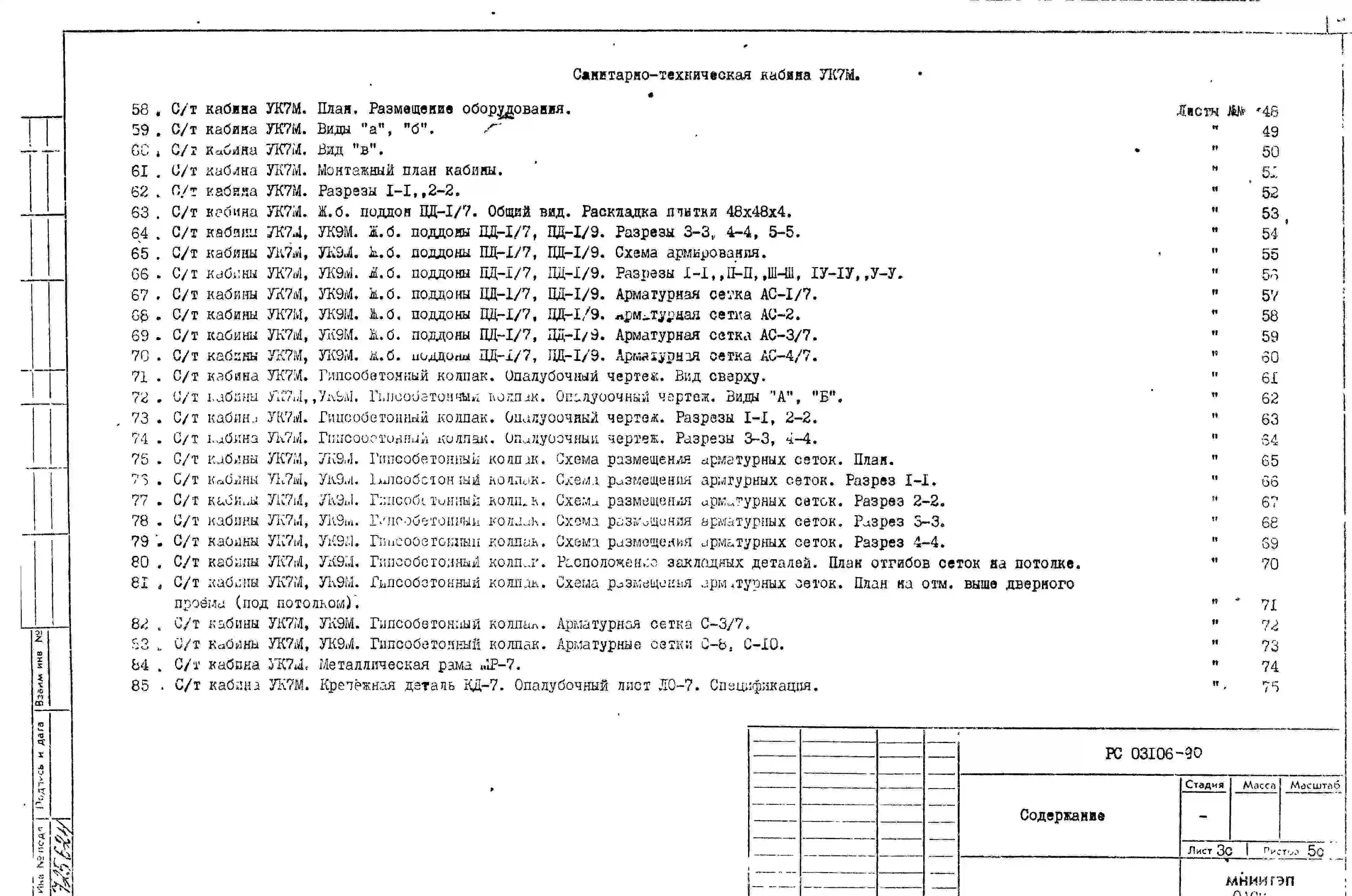 Шифр РС 03106 Санитарно-технические кабины типа УК6М; УК7М; УК8М; УК9М для общественных зданий (1990 г.)