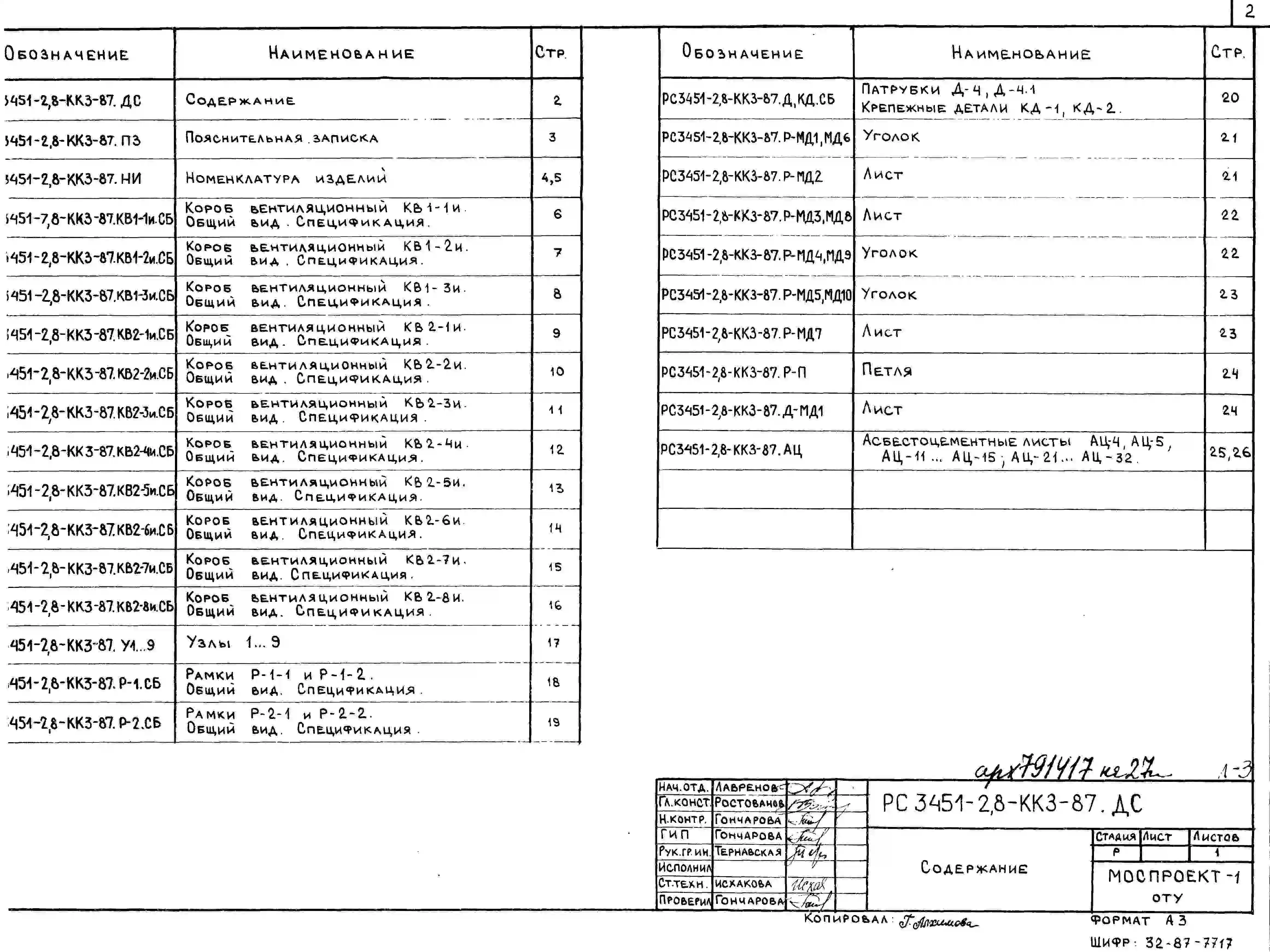 Шифр РС3451-2,8-ККЗ-87 Асбестоцементные вентиляционные короба для жилых домов с высотой этажа 2,8 м (1987 г.)