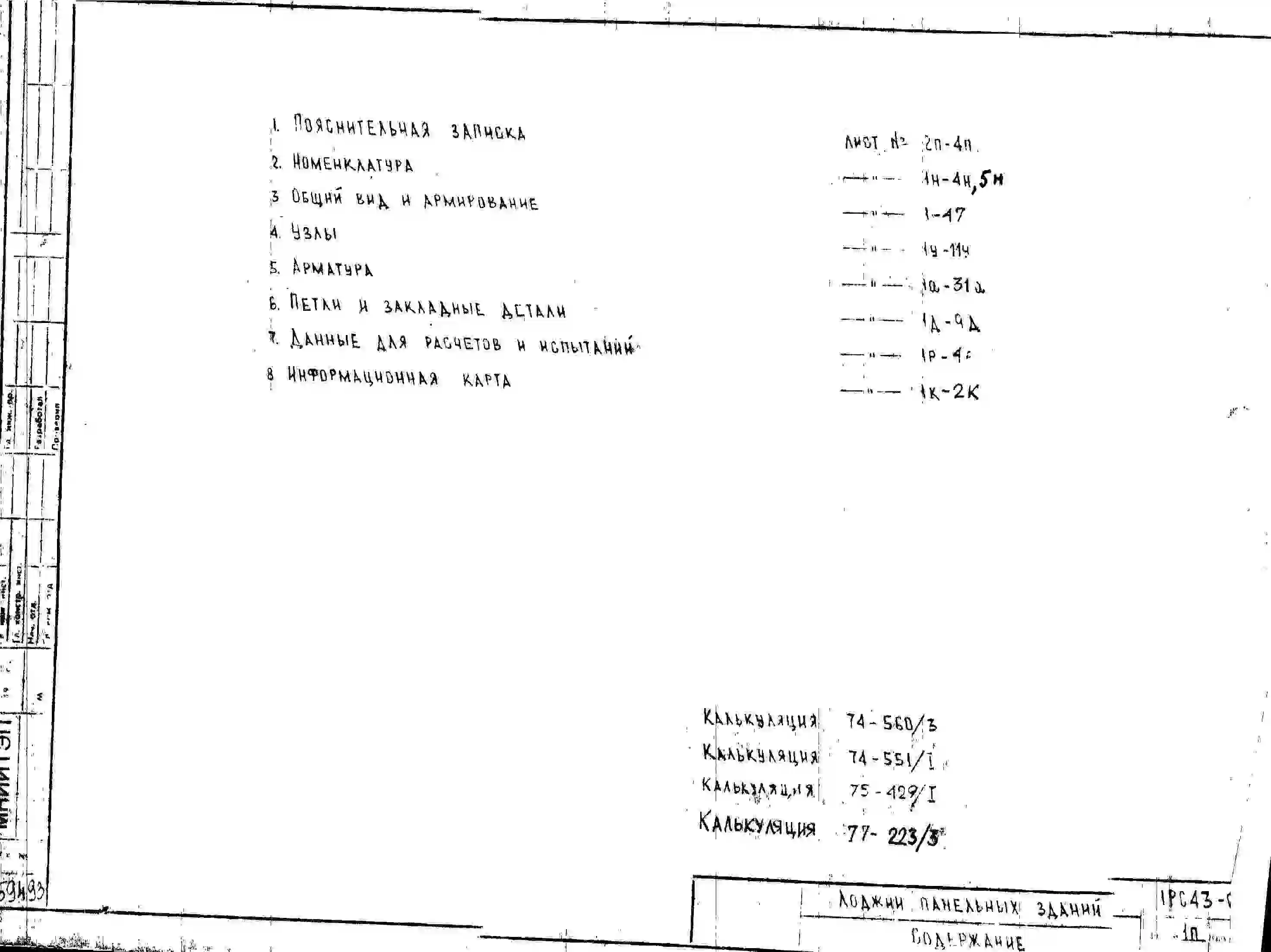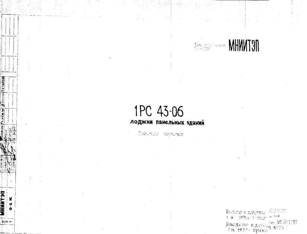 Шифр 1РС 43-06 Лоджии панельных зданий (1977 г.)