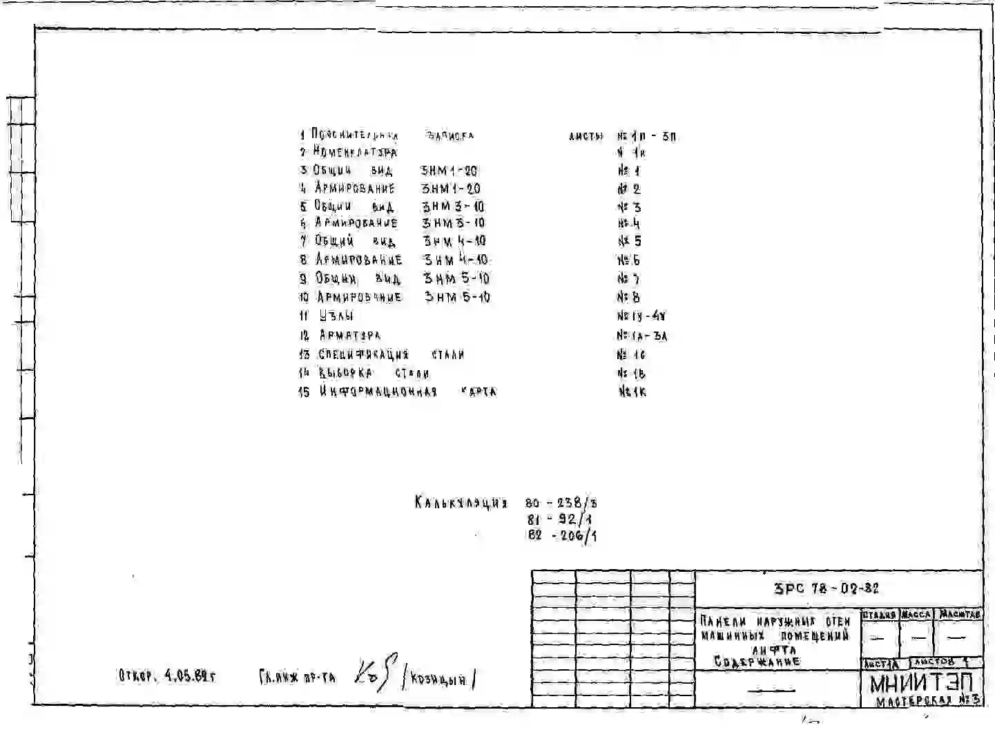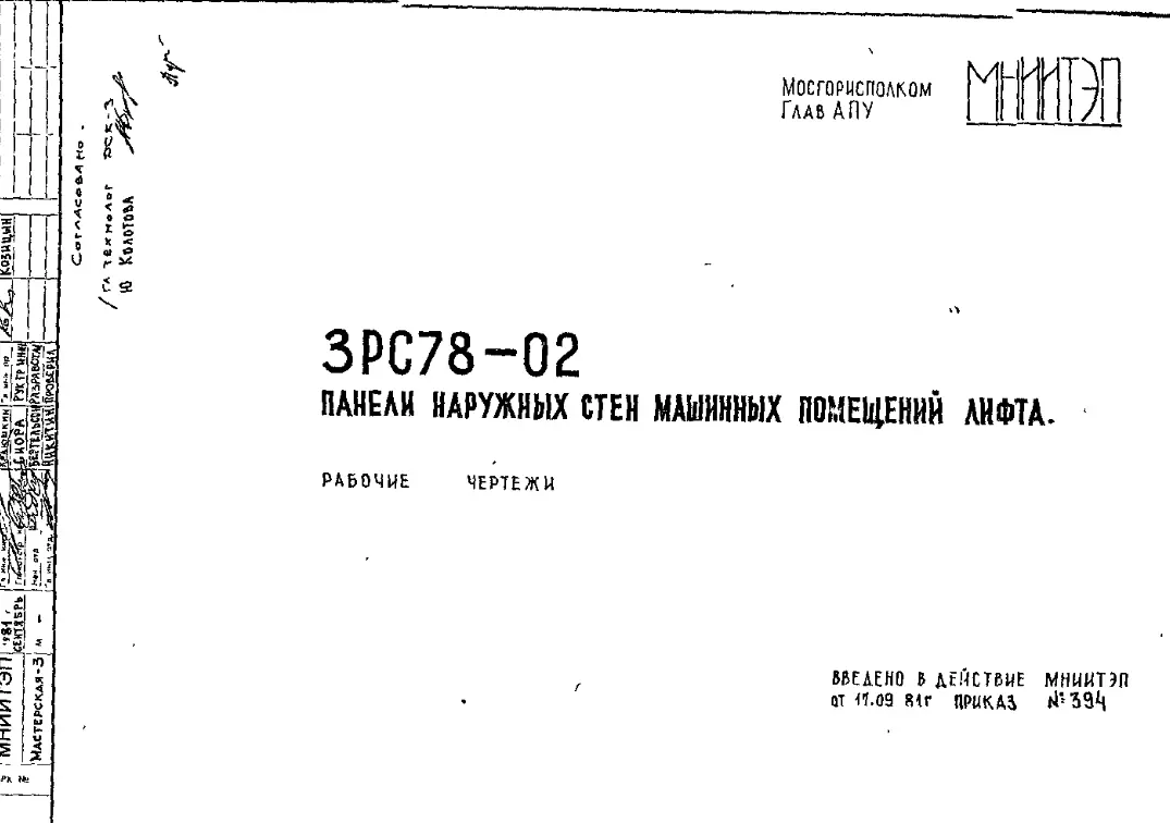 Шифр 3РС 78-02 Панели наружных стен машинных помещений лифта (1981 г.)