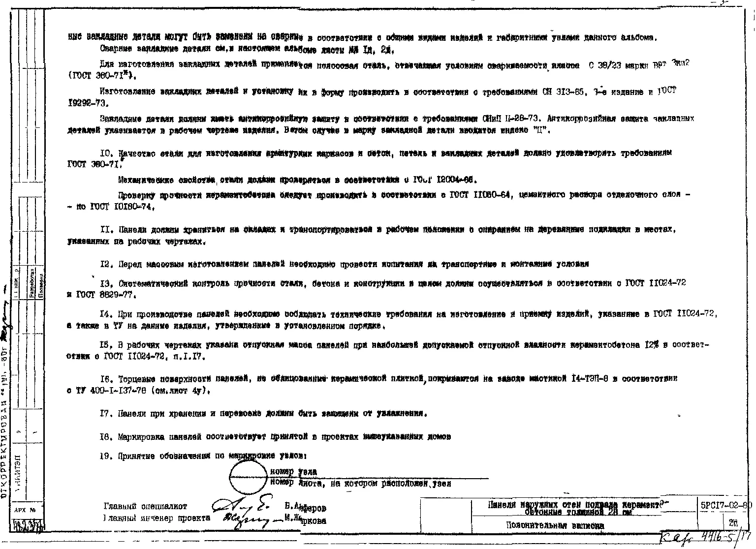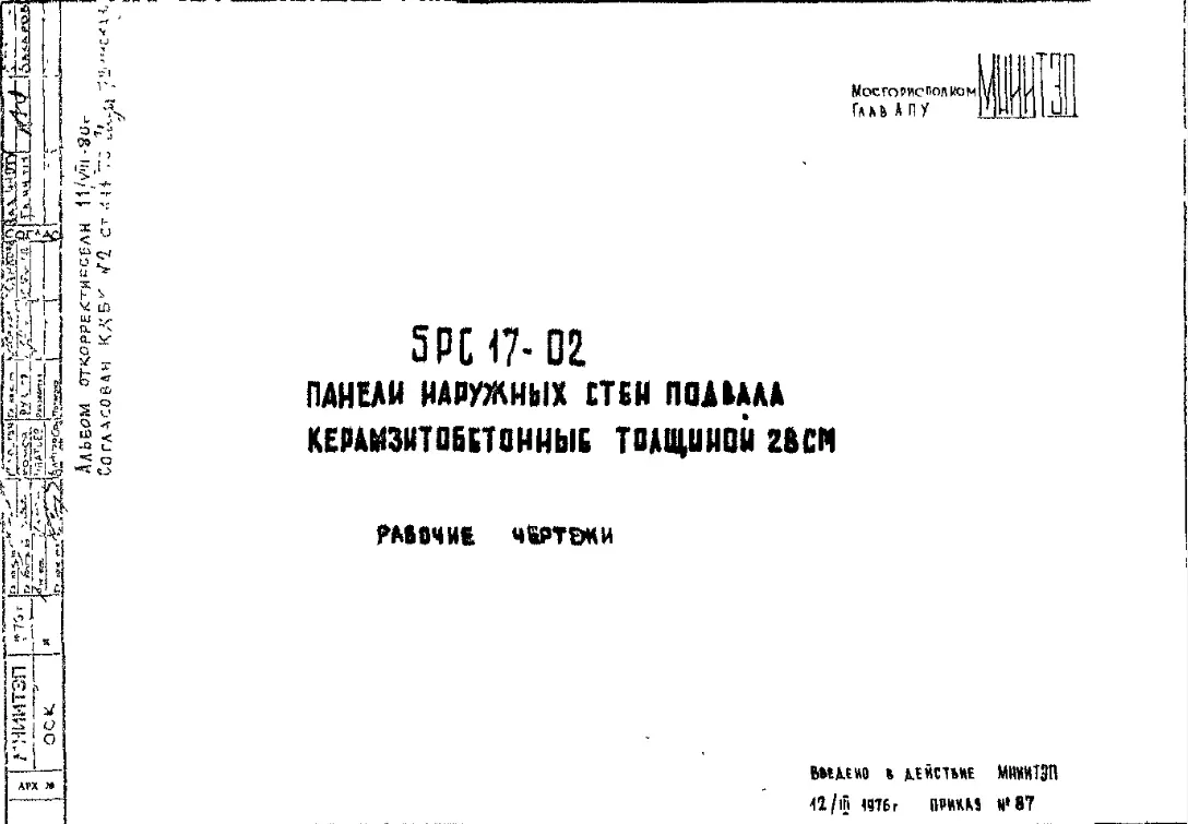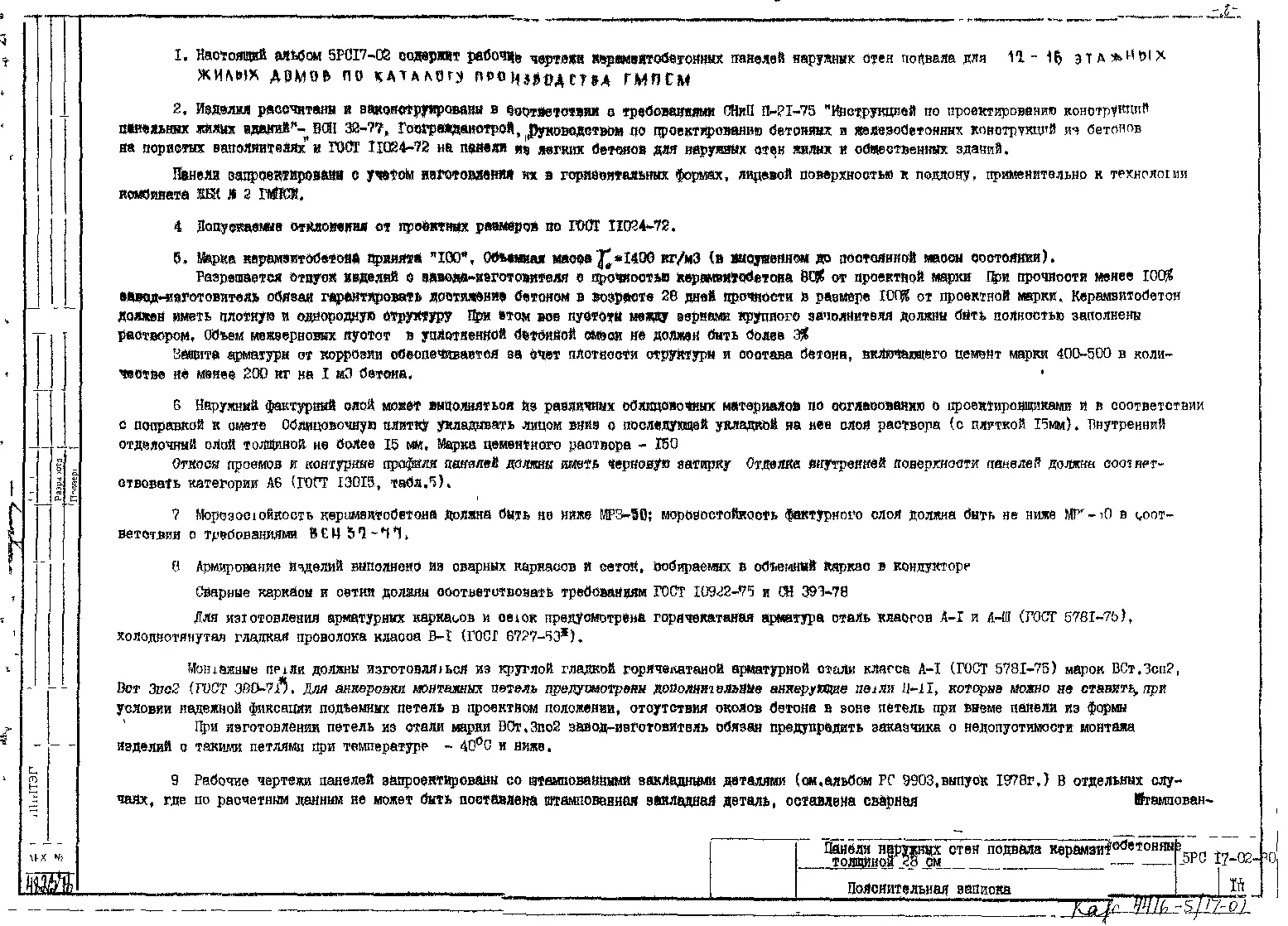 Шифр 5РС 17-02 Панели наружных стен подвала керамзитобетонные толщиной 28 см (1976 г.)