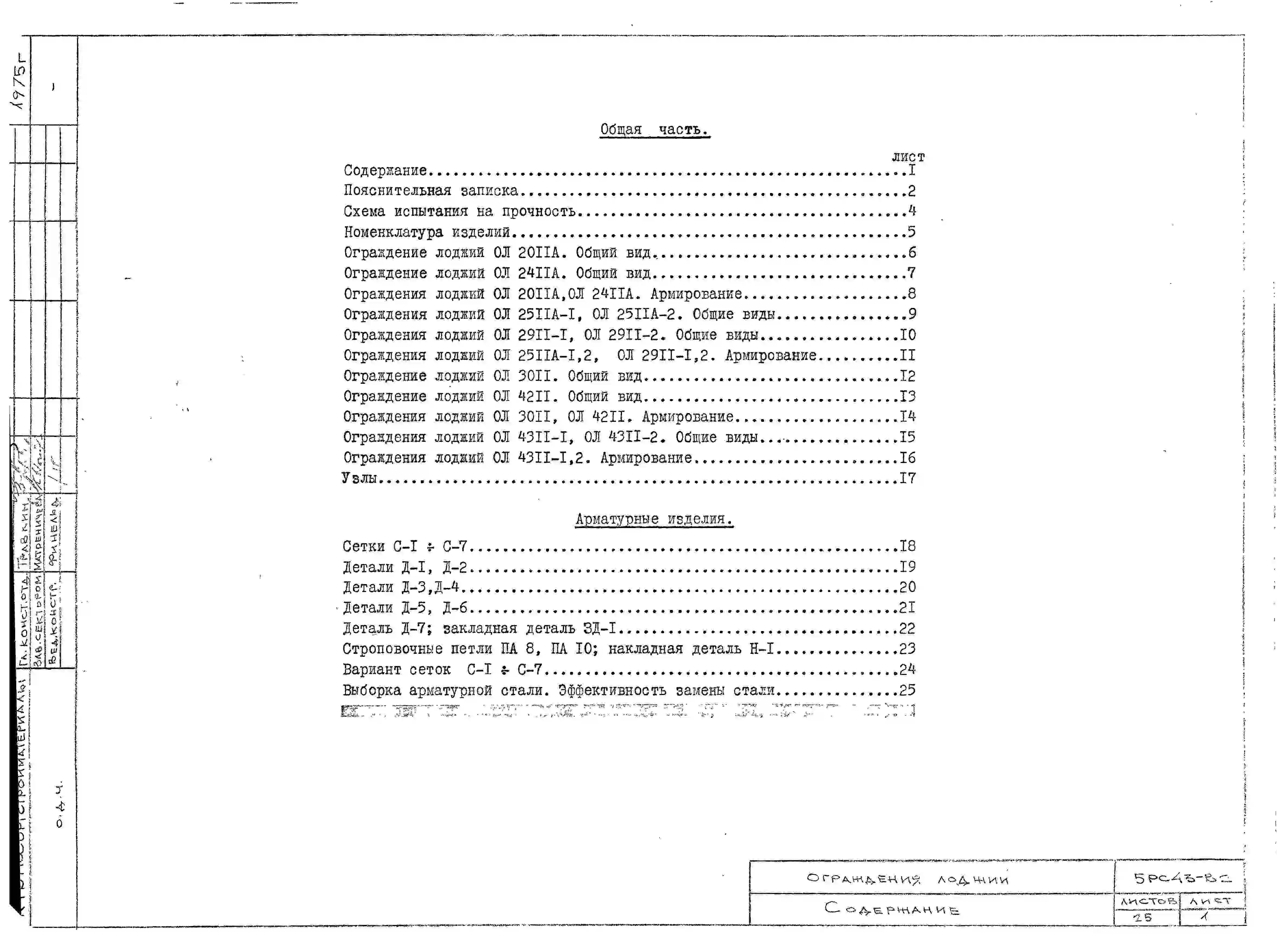 Шифр 5РС 43-82 Ограждения лоджий (1973 г.)
