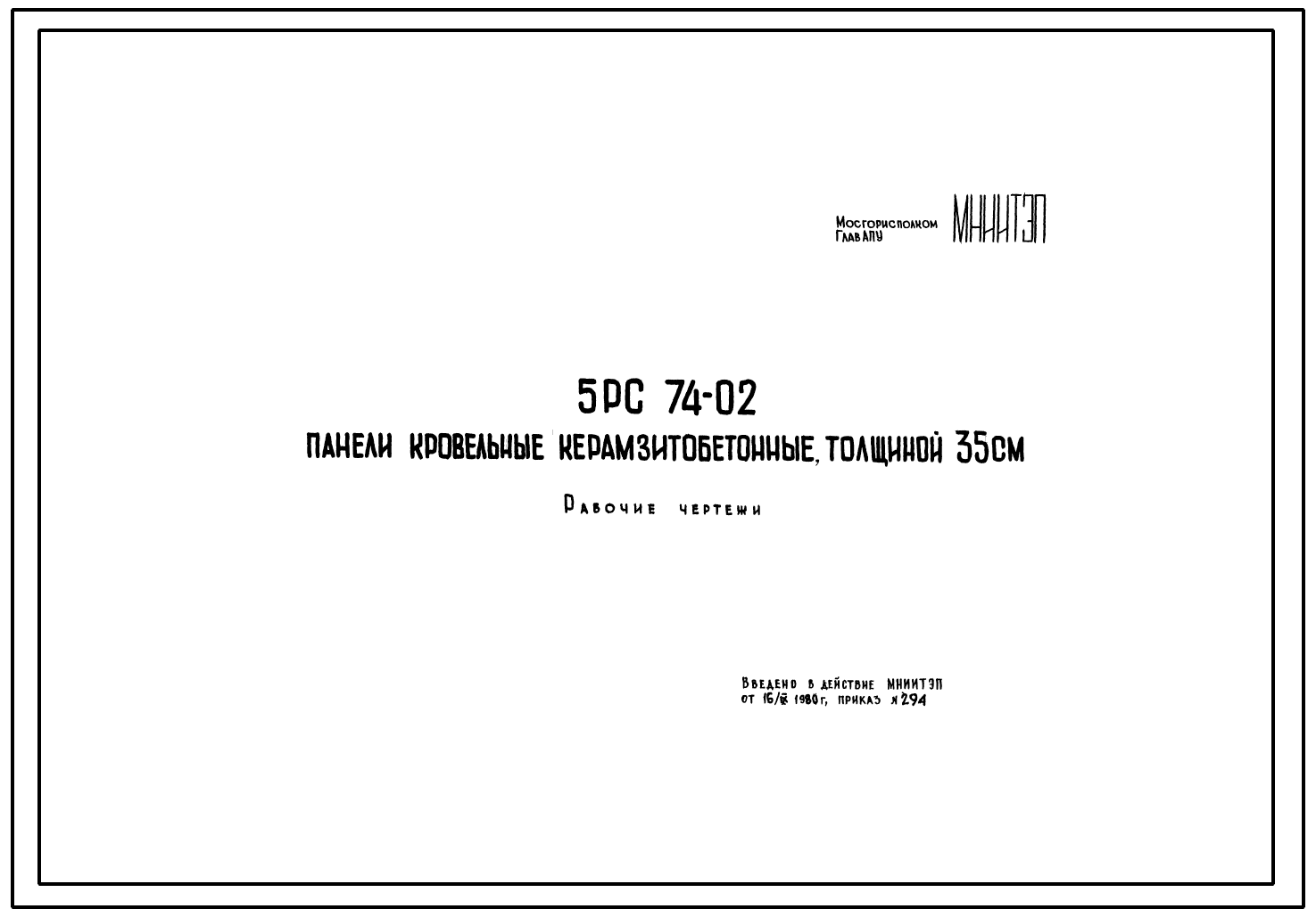 Шифр 5РС 74-02 Панели кровельные керамзитобетонные, толщиной 35 см (1978 г.)