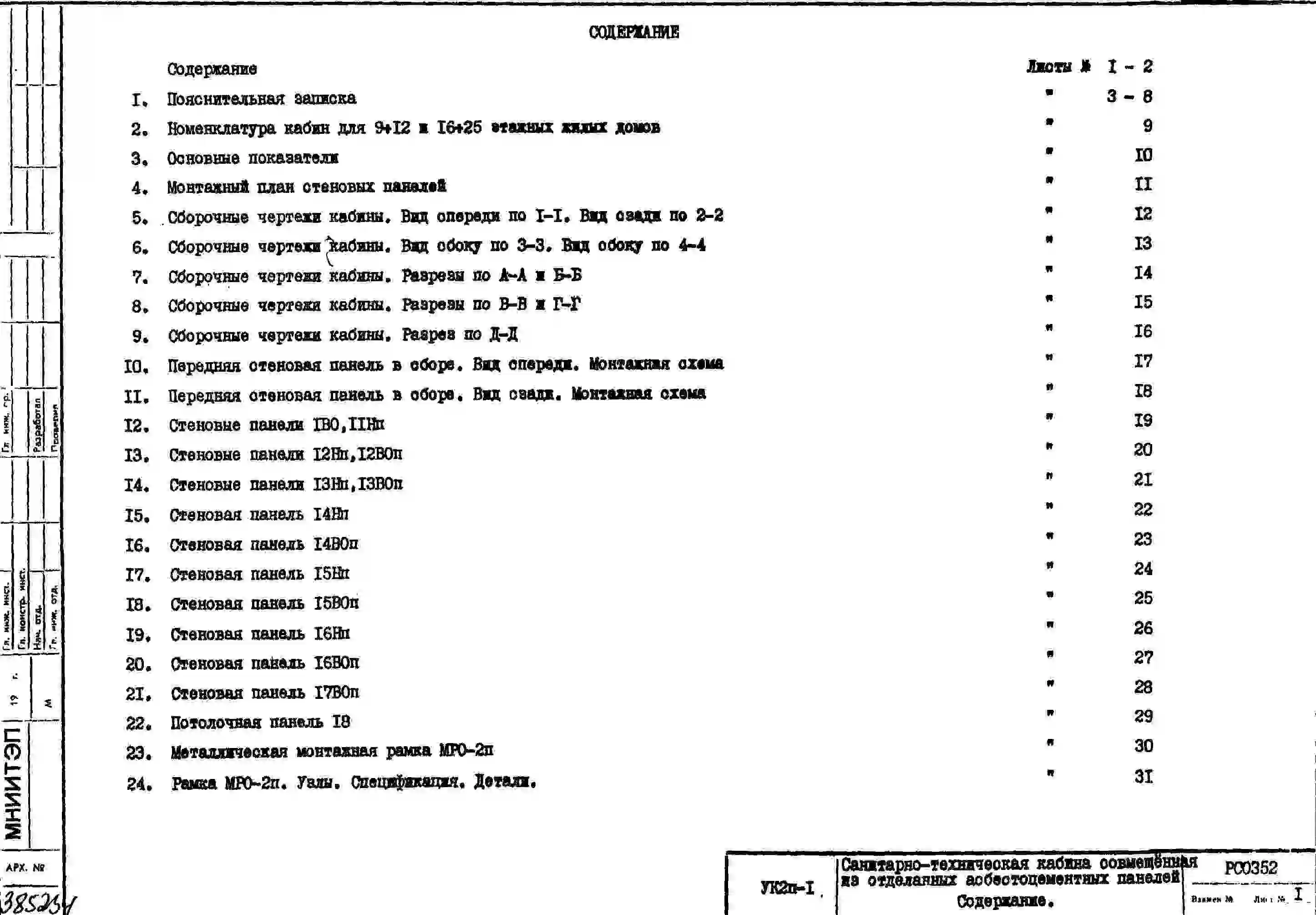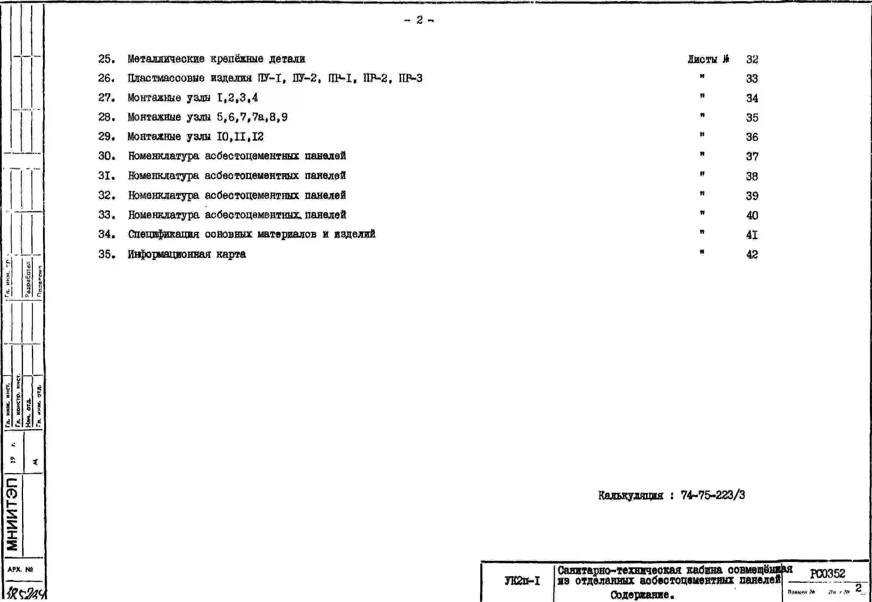 Шифр РС 0352 Санитарно-технические кабины совмещенные из отделанных асбестоцементных панелей (1975 г.)