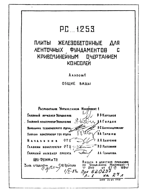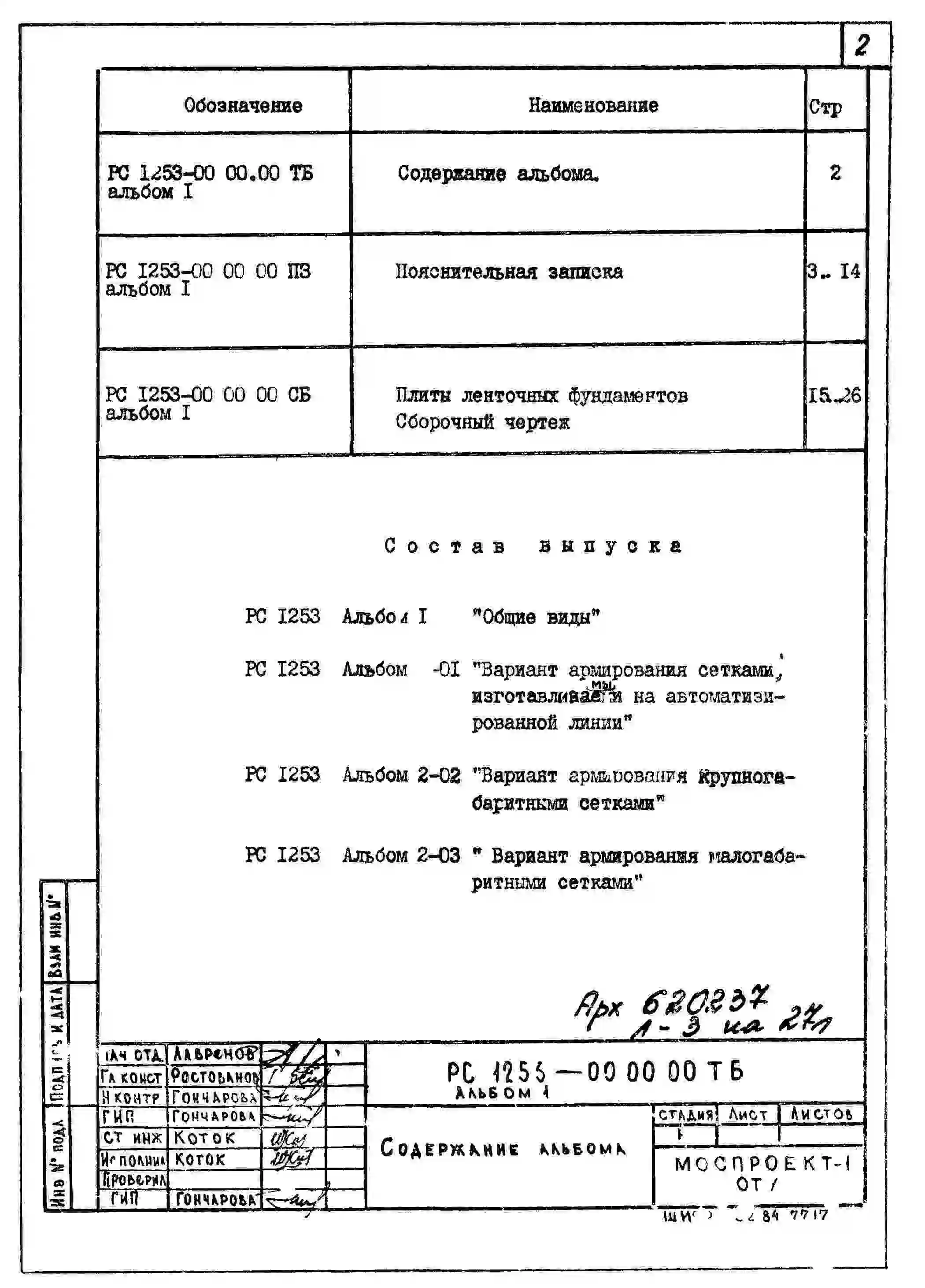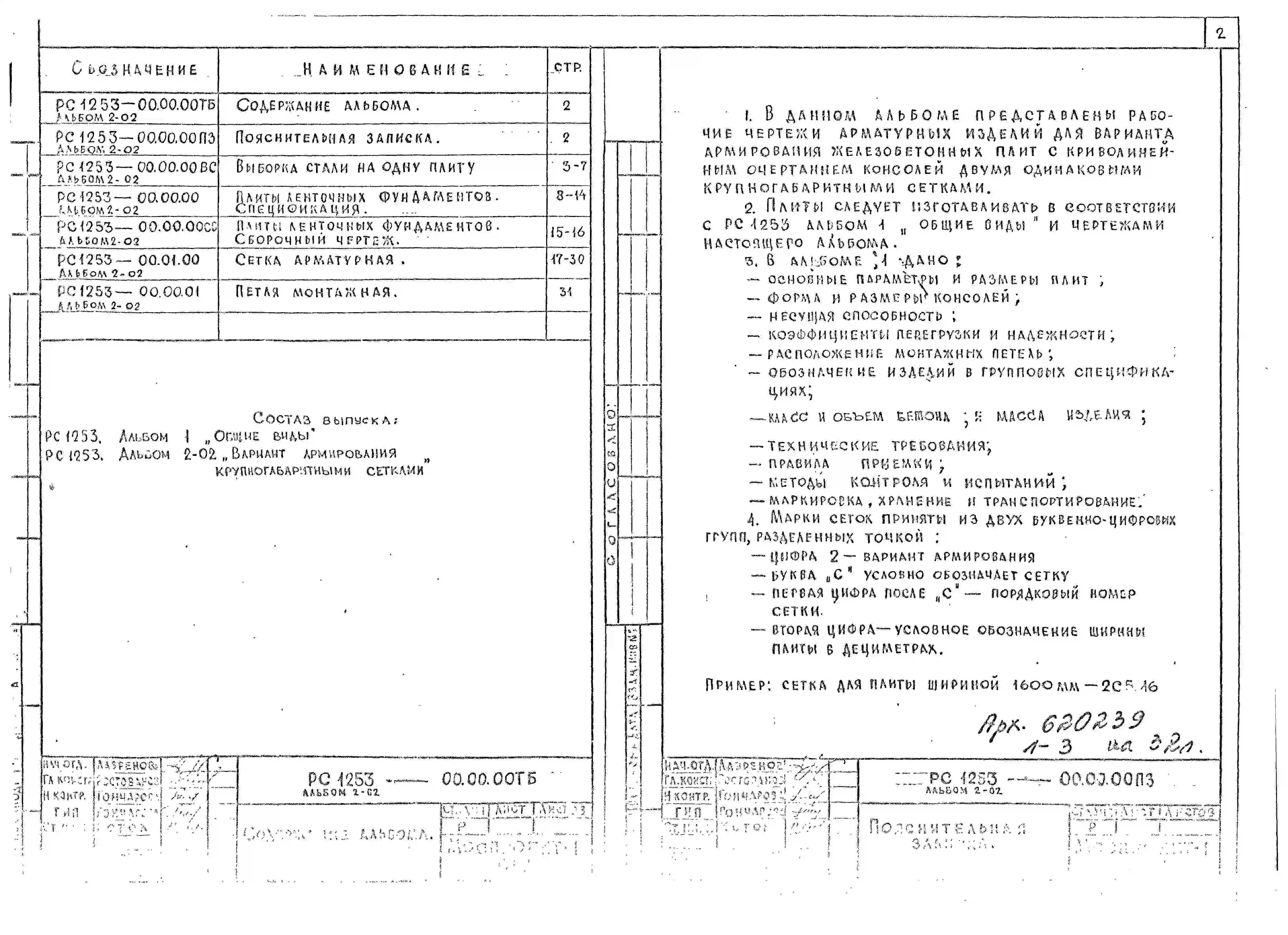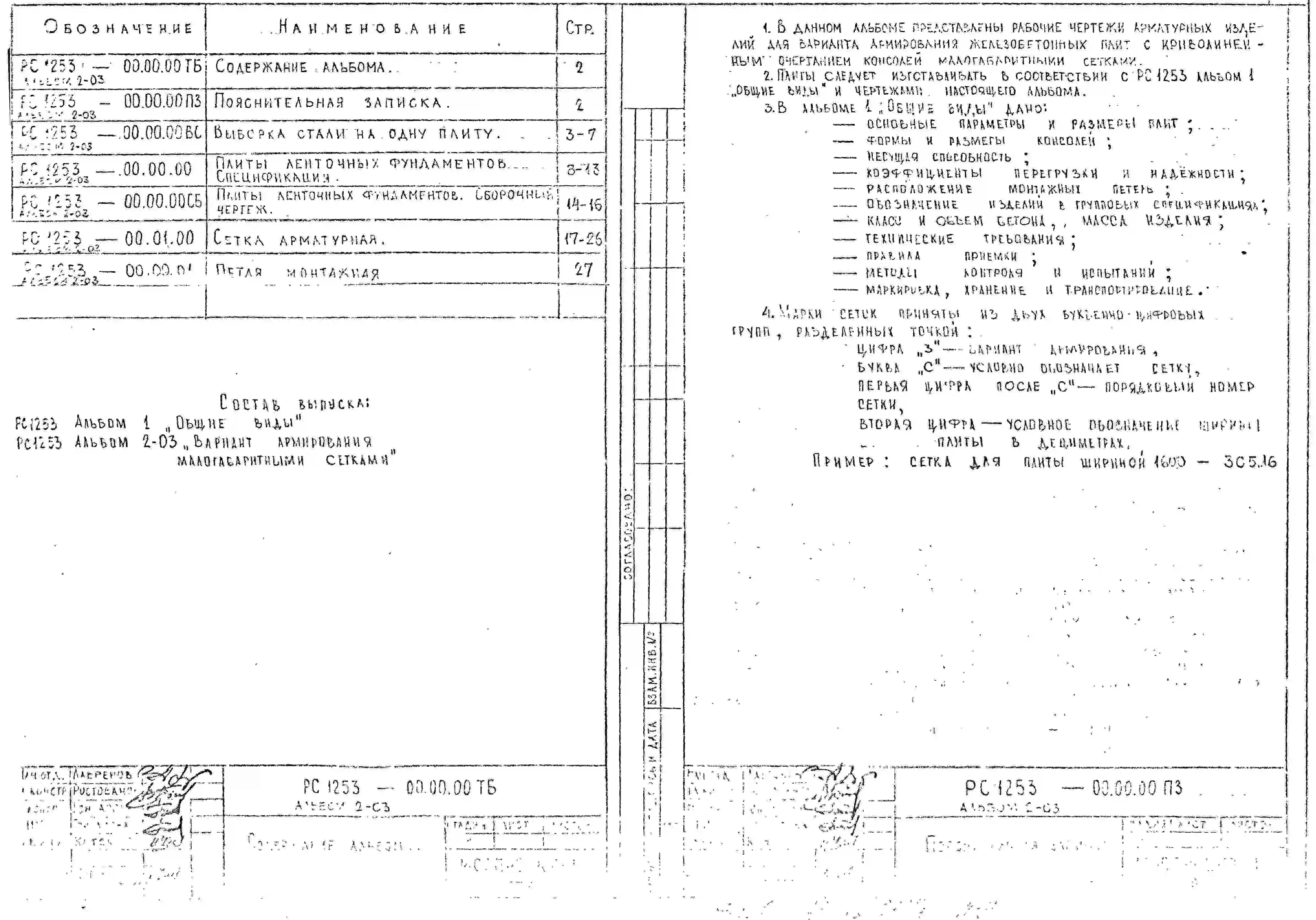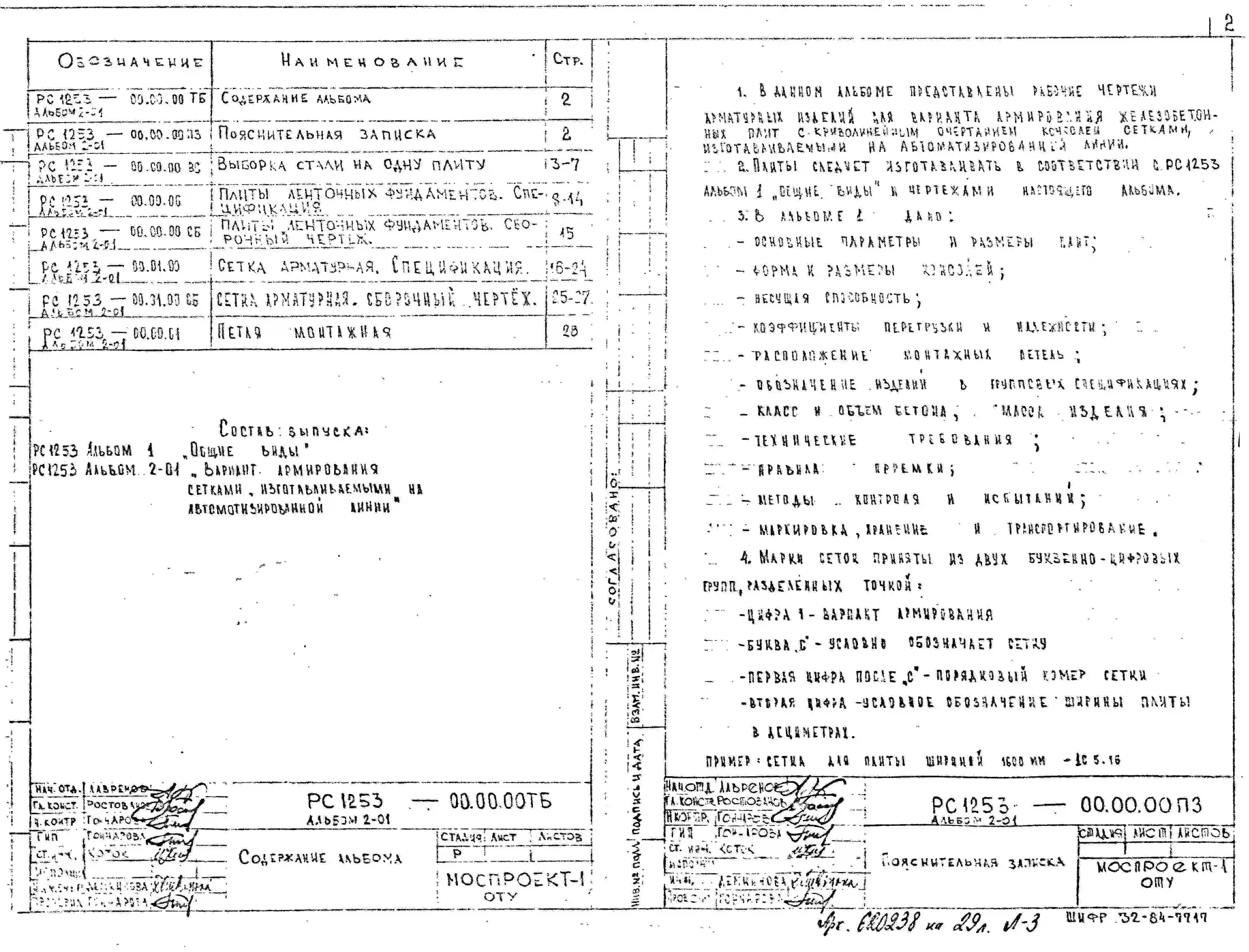 Шифр РС 1253 Плиты железобетонные для ленточных фундаментов с криволинейным очертанием консолей (1984 г.)