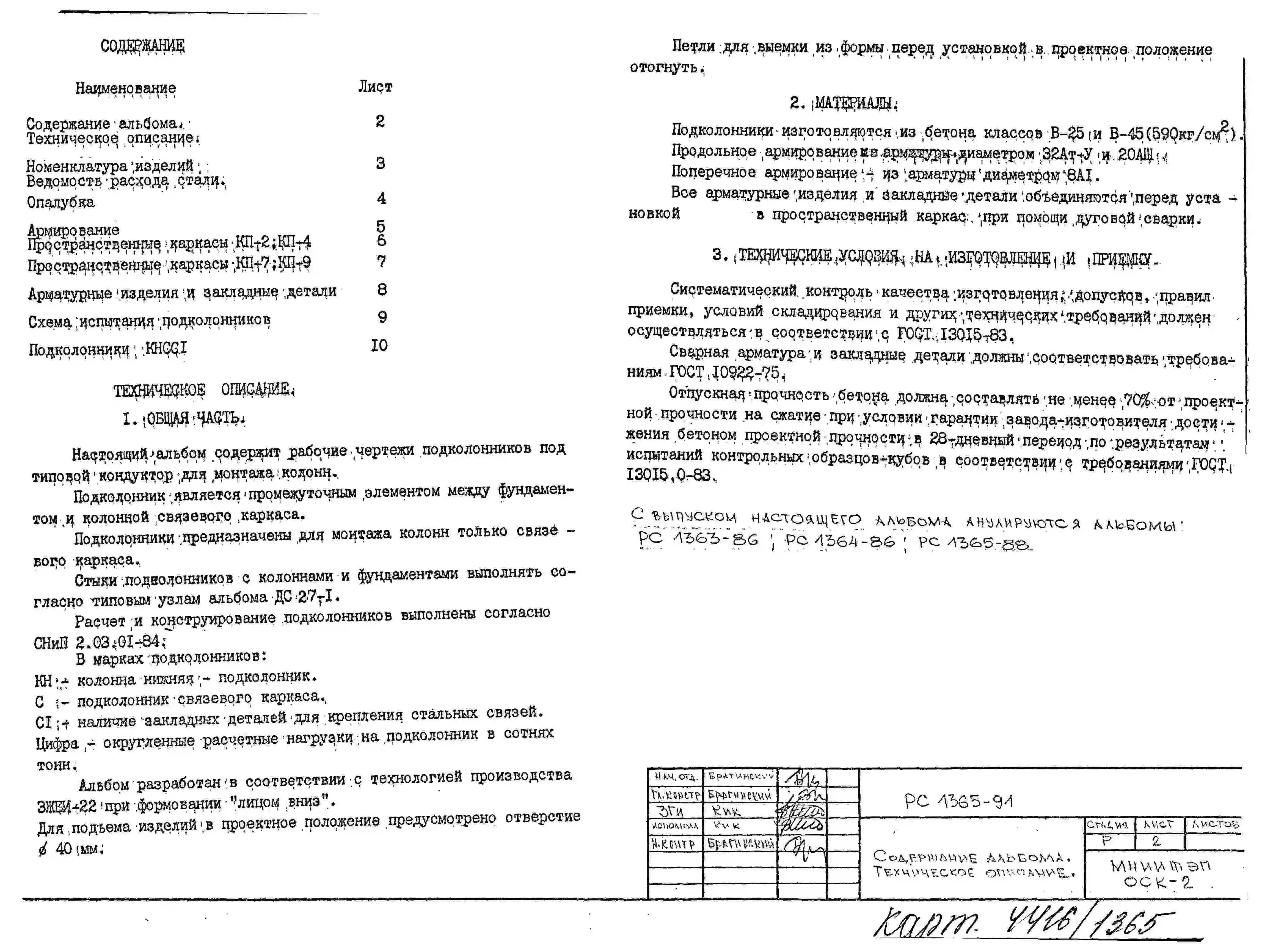 Шифр РС 1365-91 Подколонники под типовой кондуктор для монтажа колонн (1991 г.)