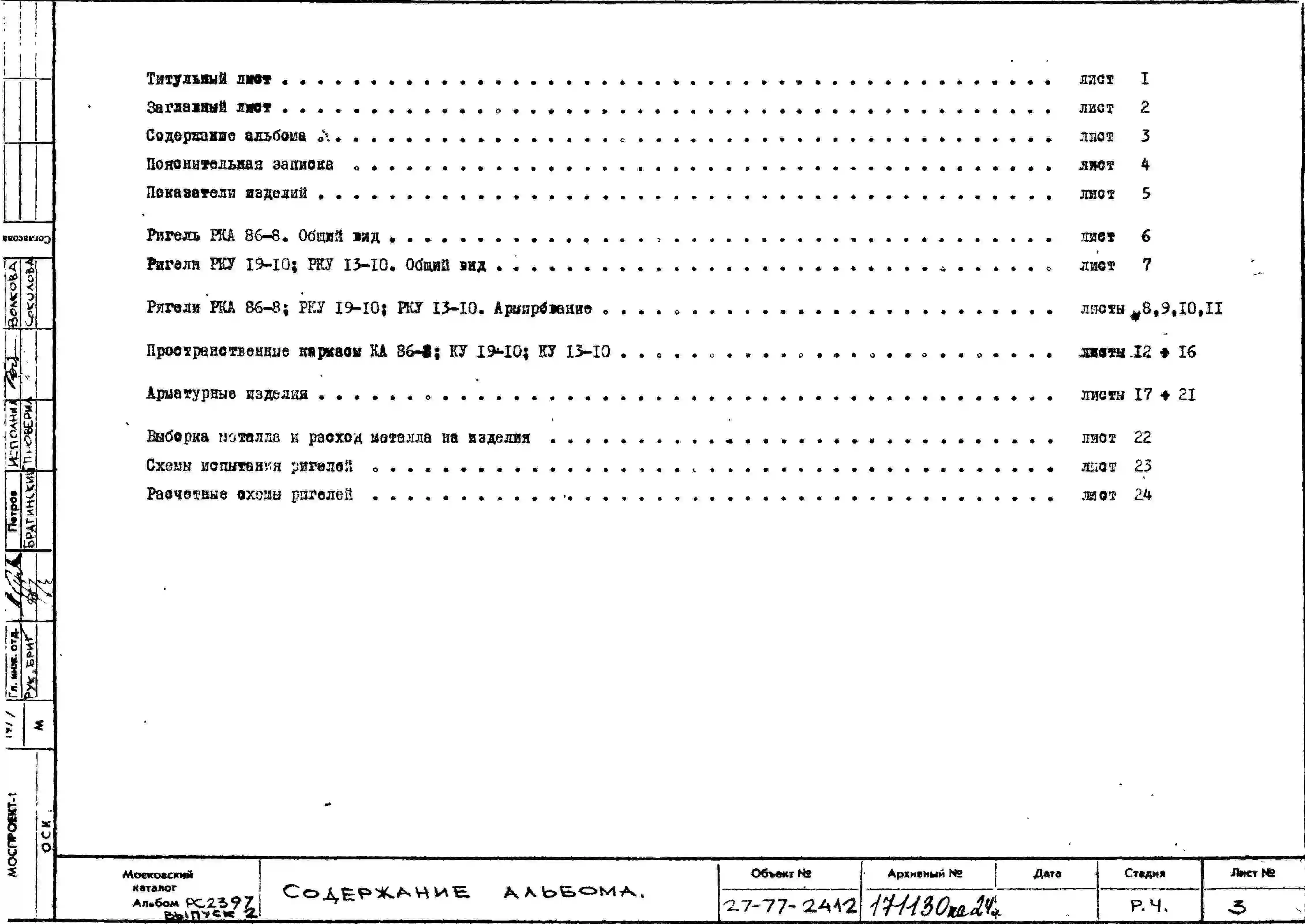 Шифр РС 2397-77 Ригели консольного каркаса при панелях перекрытия высотой 220 мм (1977 г.)