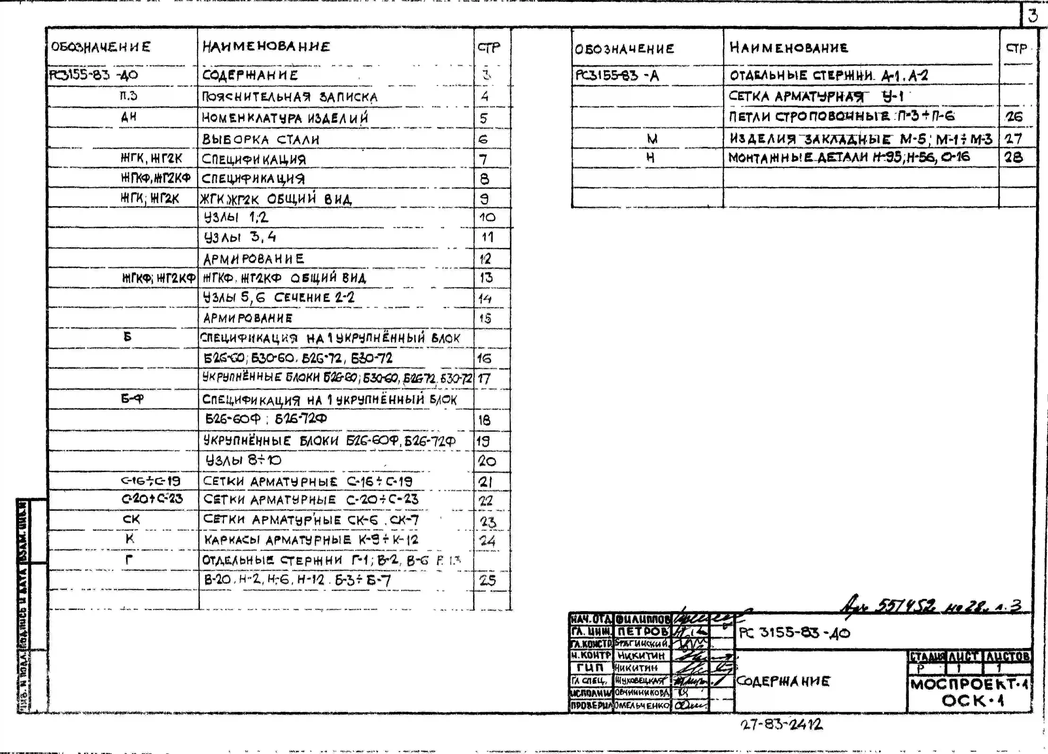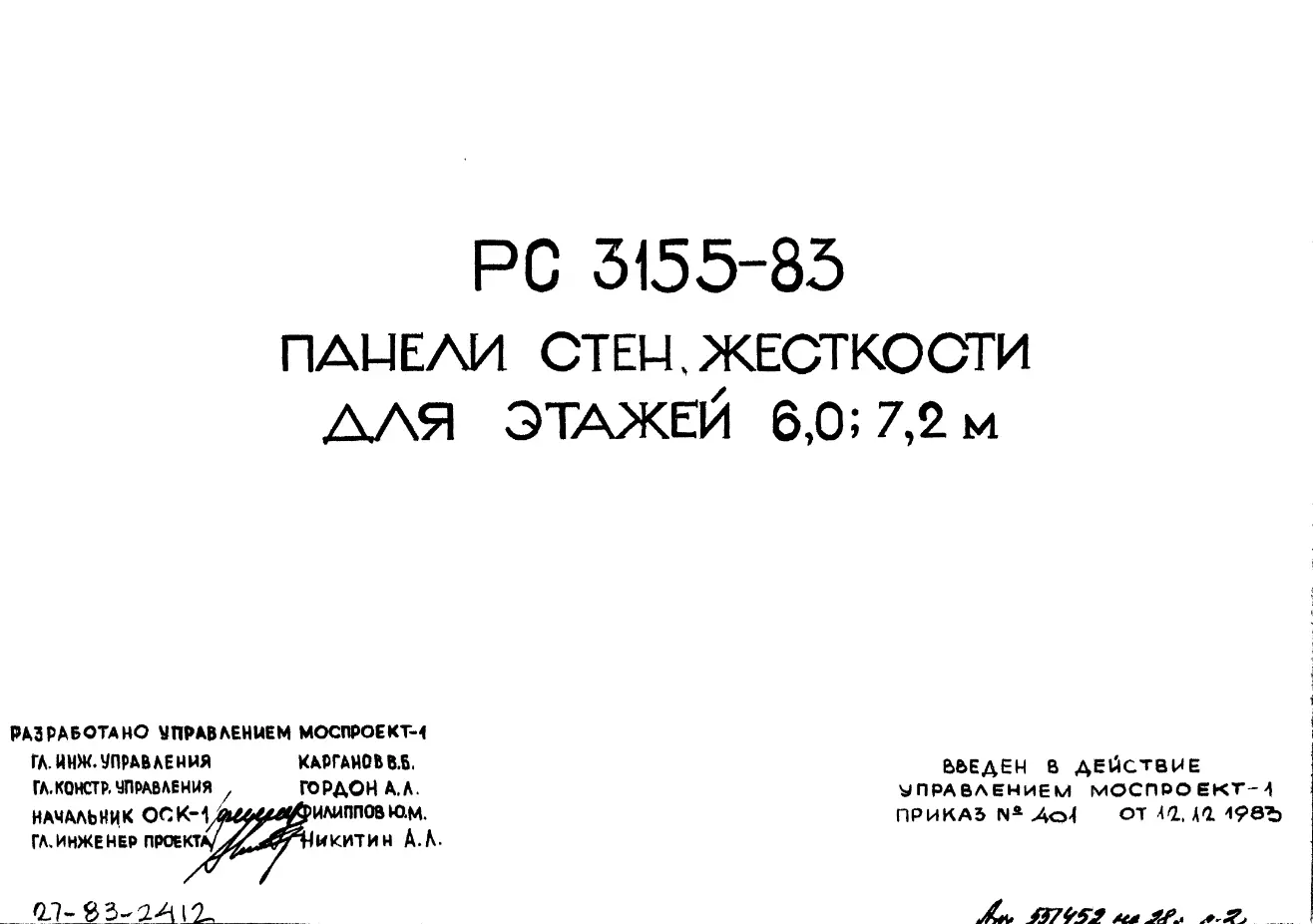 Шифр РС 3155-83 Панели стен жесткости для этажей 6,0; 7,2 м (1983 г.)