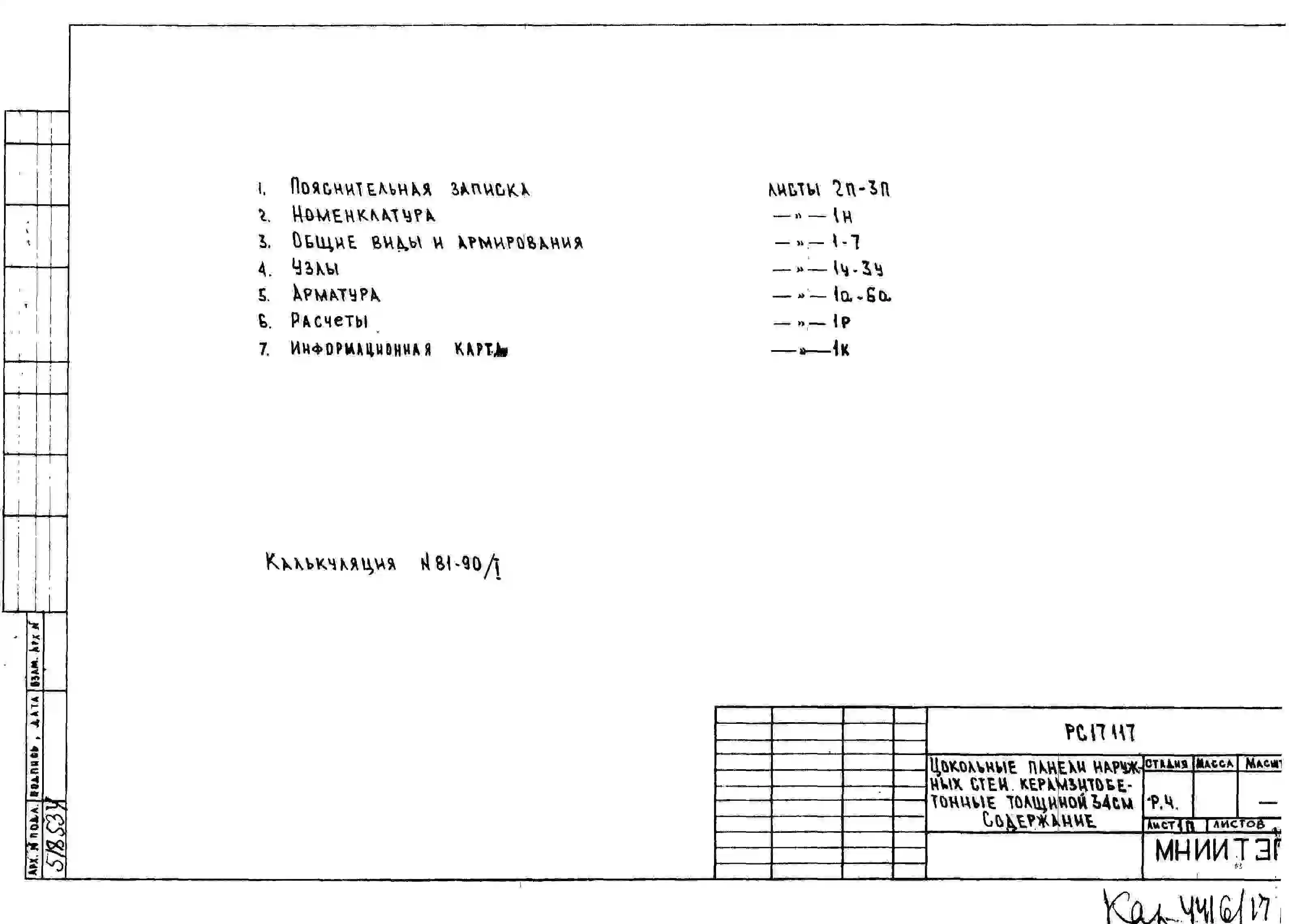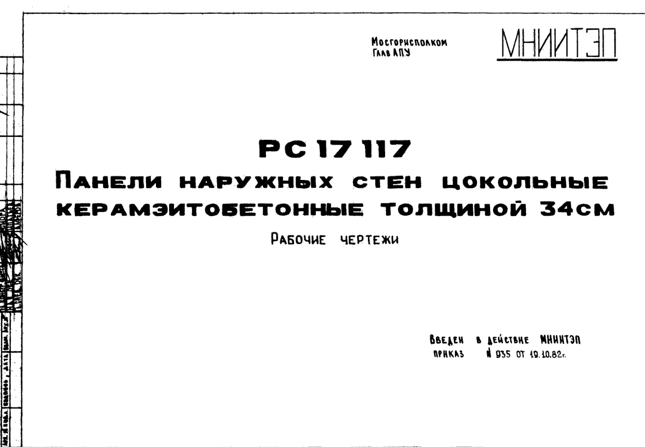 Шифр РС 17117 Панели наружных стен цокольные керамзитобетонные толщиной 34 см (1982 г.)