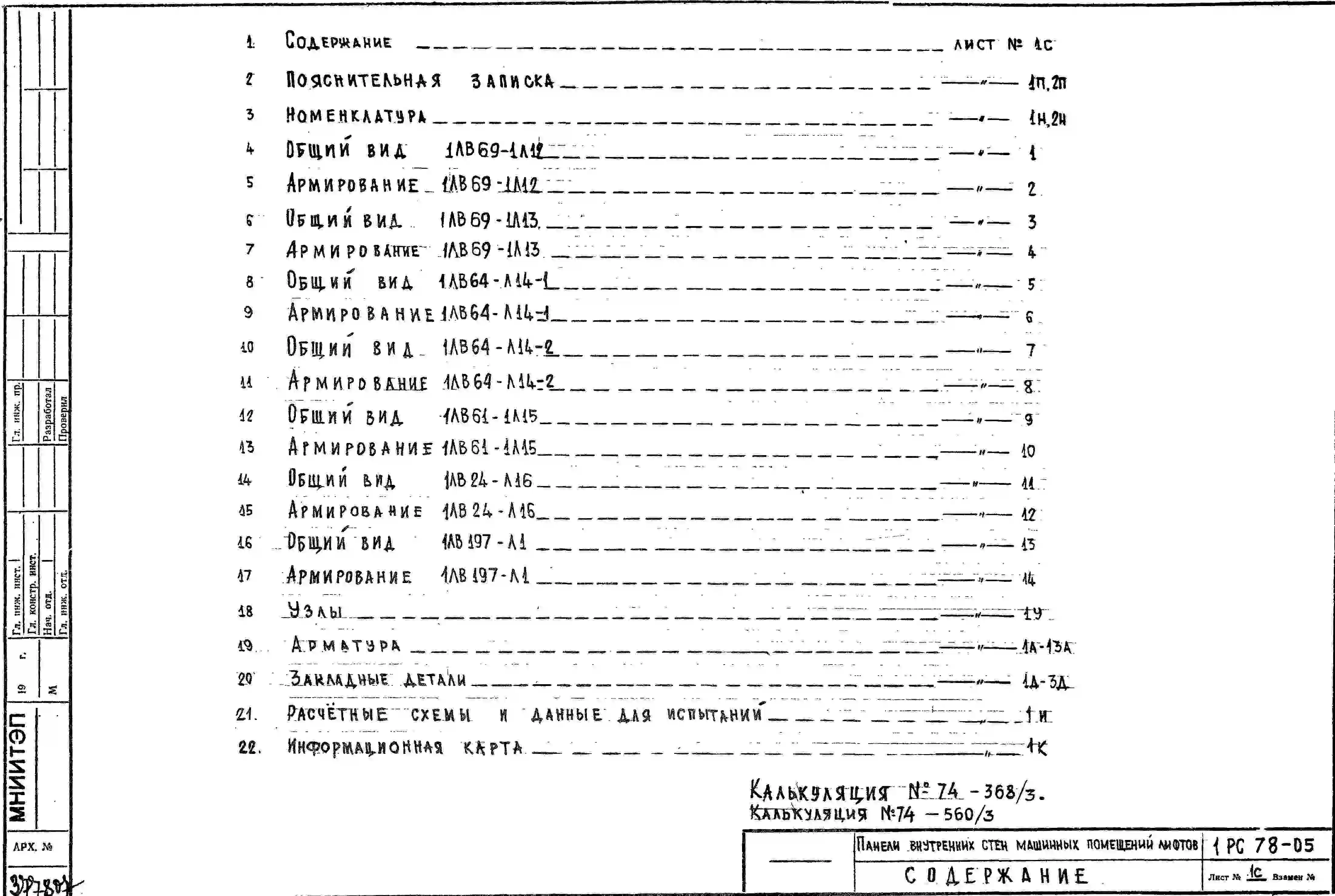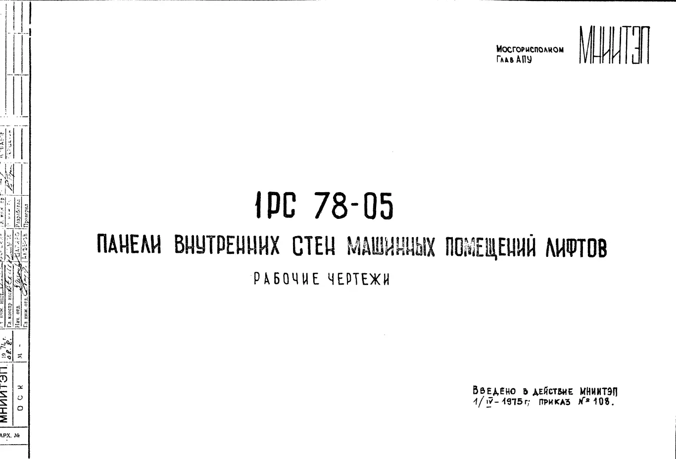Шифр 1РС 78-05 Панели внутренних стен машинных помещений лифтов (1975 г.)