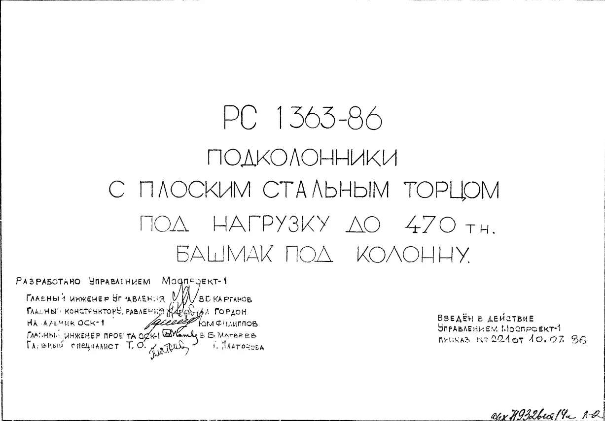 Шифр РС 1363-86 Подколонники с плоским стальным торцом под нагрузку до 470 тн. Башмак под колонну (1986 г.)