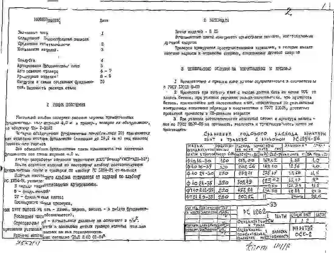 Шифр РС 1262-93 Фундаментные плиты и траверсы (1993 г.)