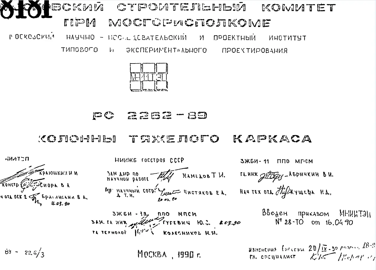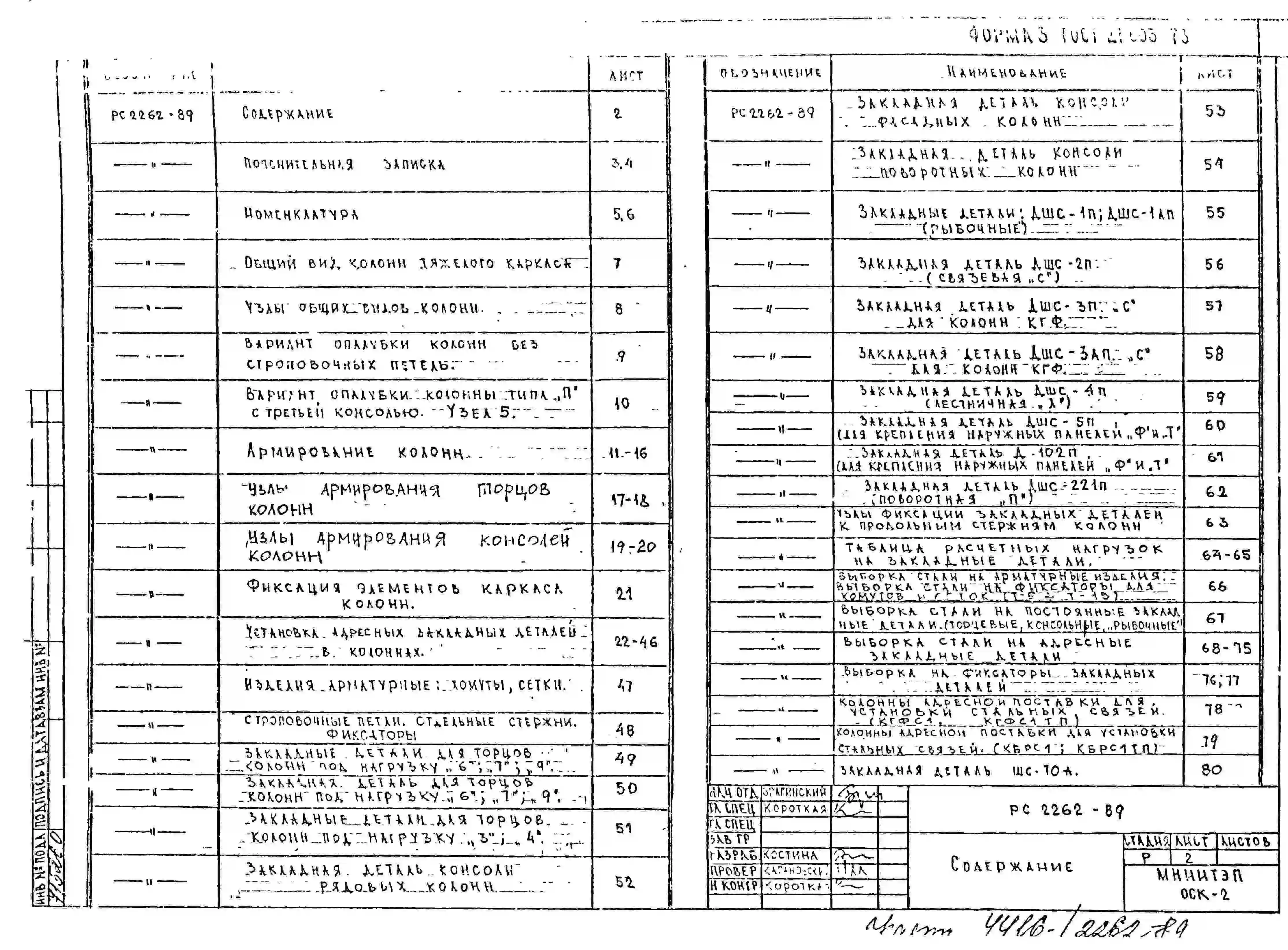 Шифр РС 2262-89 Колонны тяжелого каркаса (1990 г.)