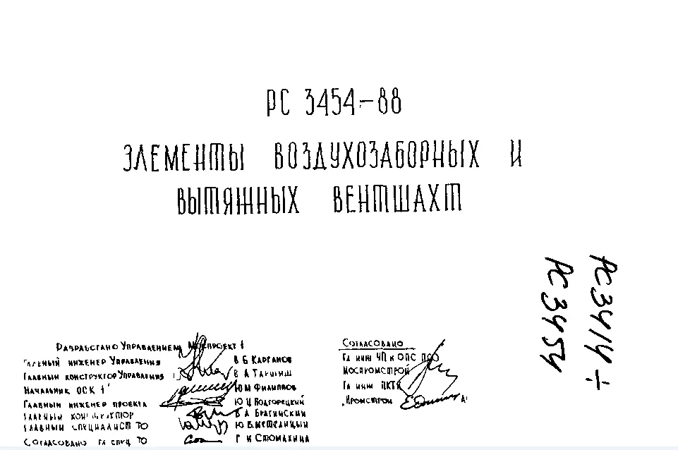 Шифр РС 3454-88 Элементы воздухозаборных и вытяжных вентшахт (1988 г.)