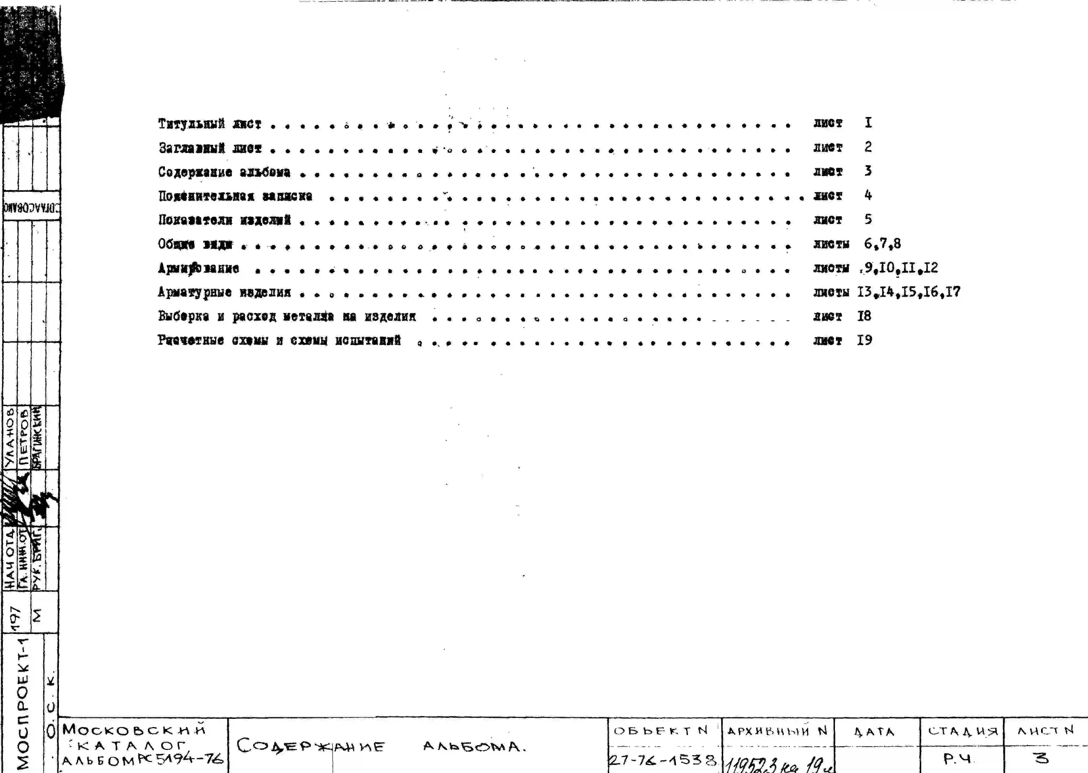 Шифр РС 5194-76 Панели перекрытий распорки технические высотой 320 мм (1976 г.)