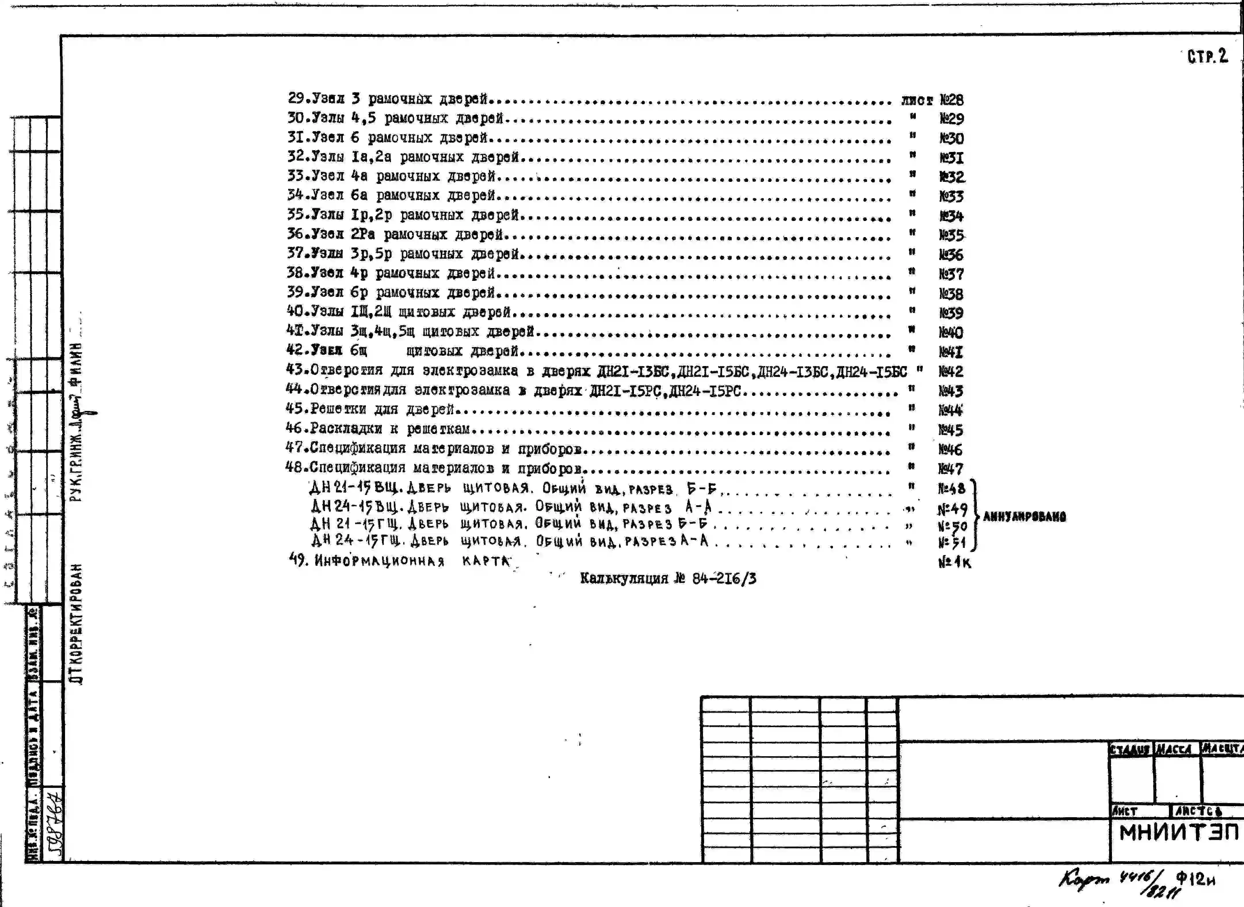Шифр РС 8211 Двери наружные деревянные для жилых и общественных зданий (1985 г.)