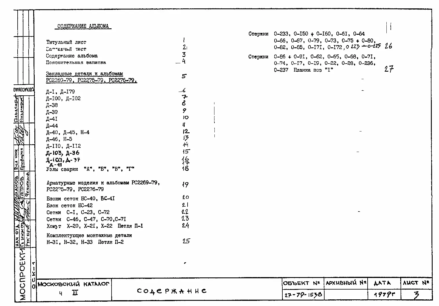 Шифр РС 2269-79 Колонны верхние легкого каркаса (1979 г.)