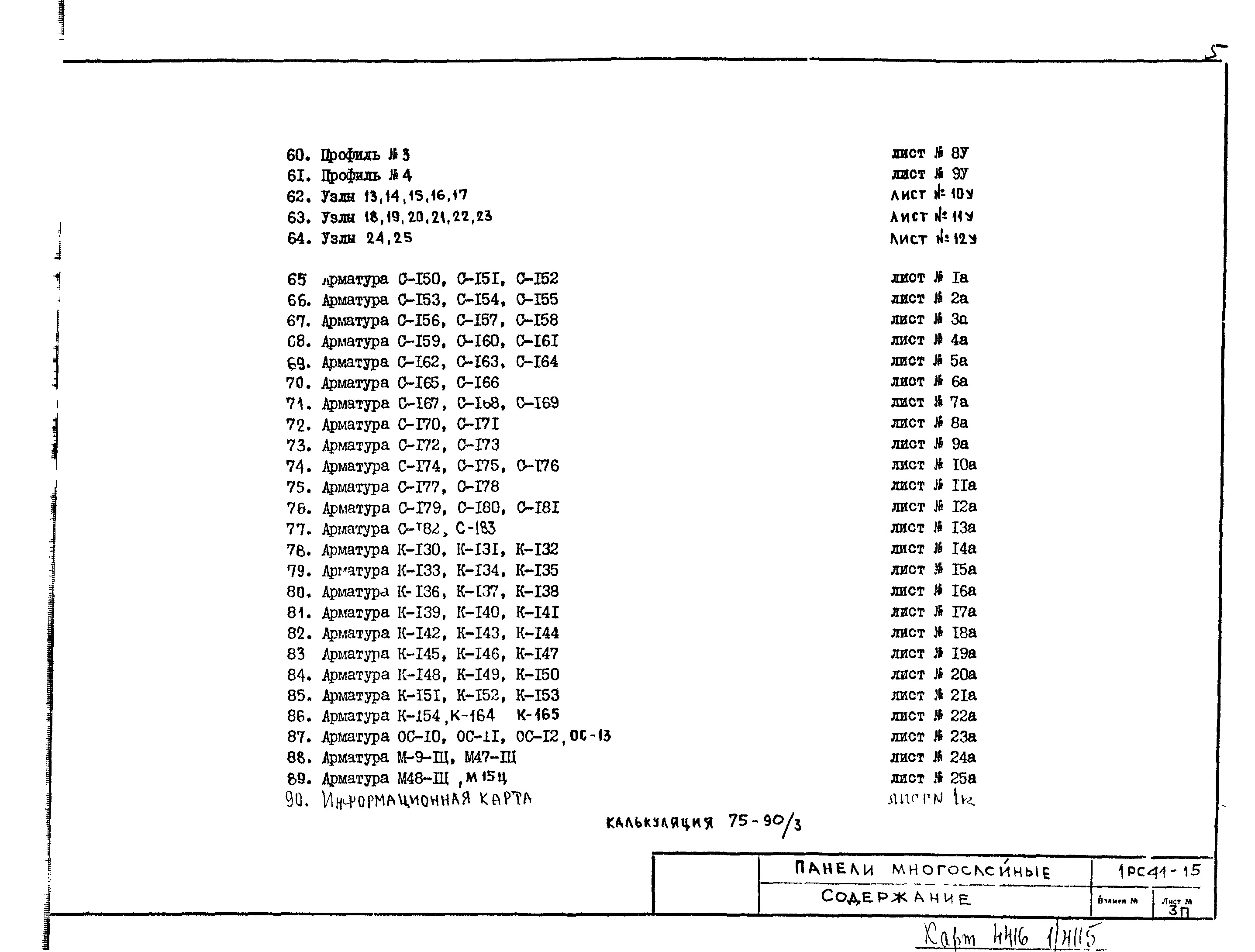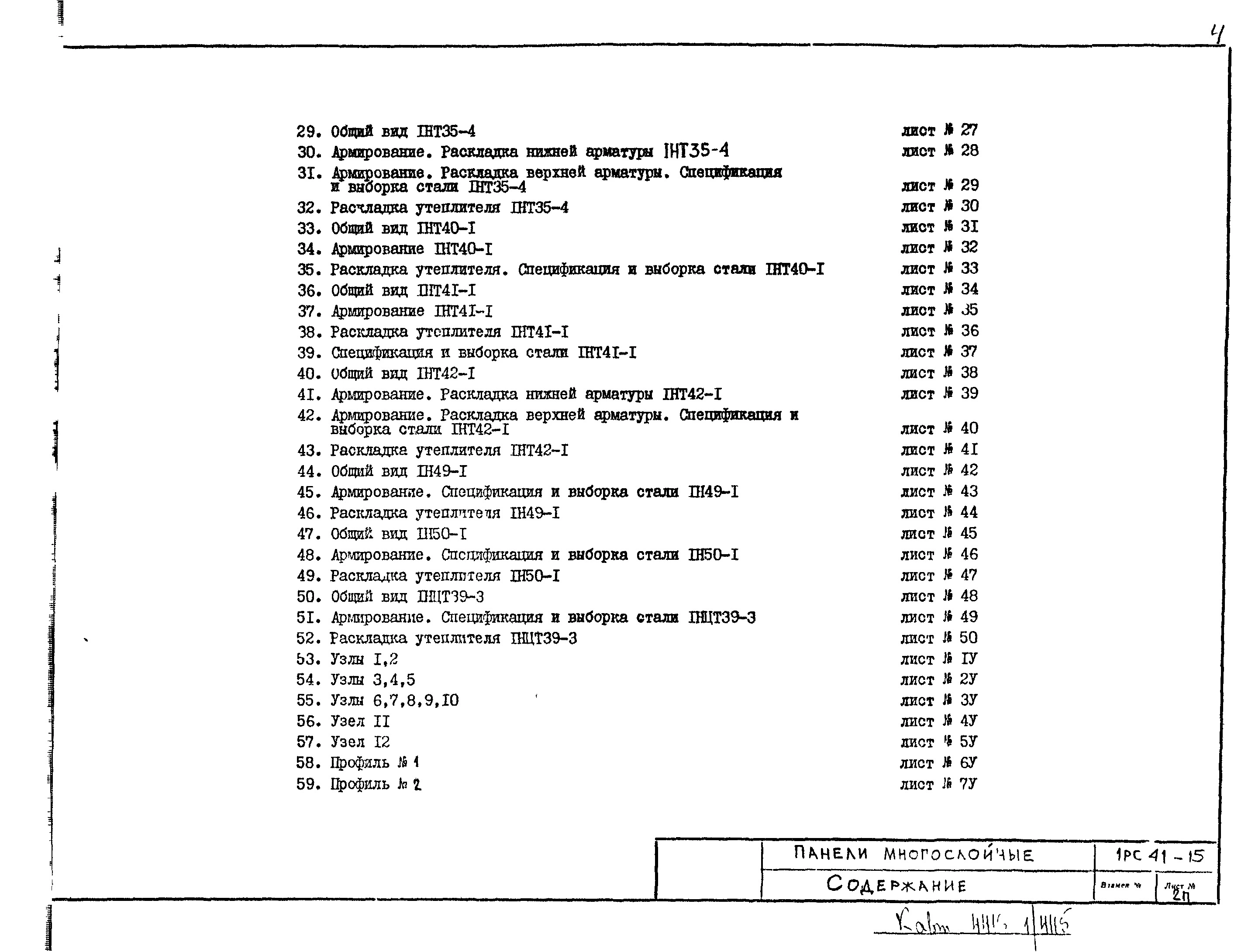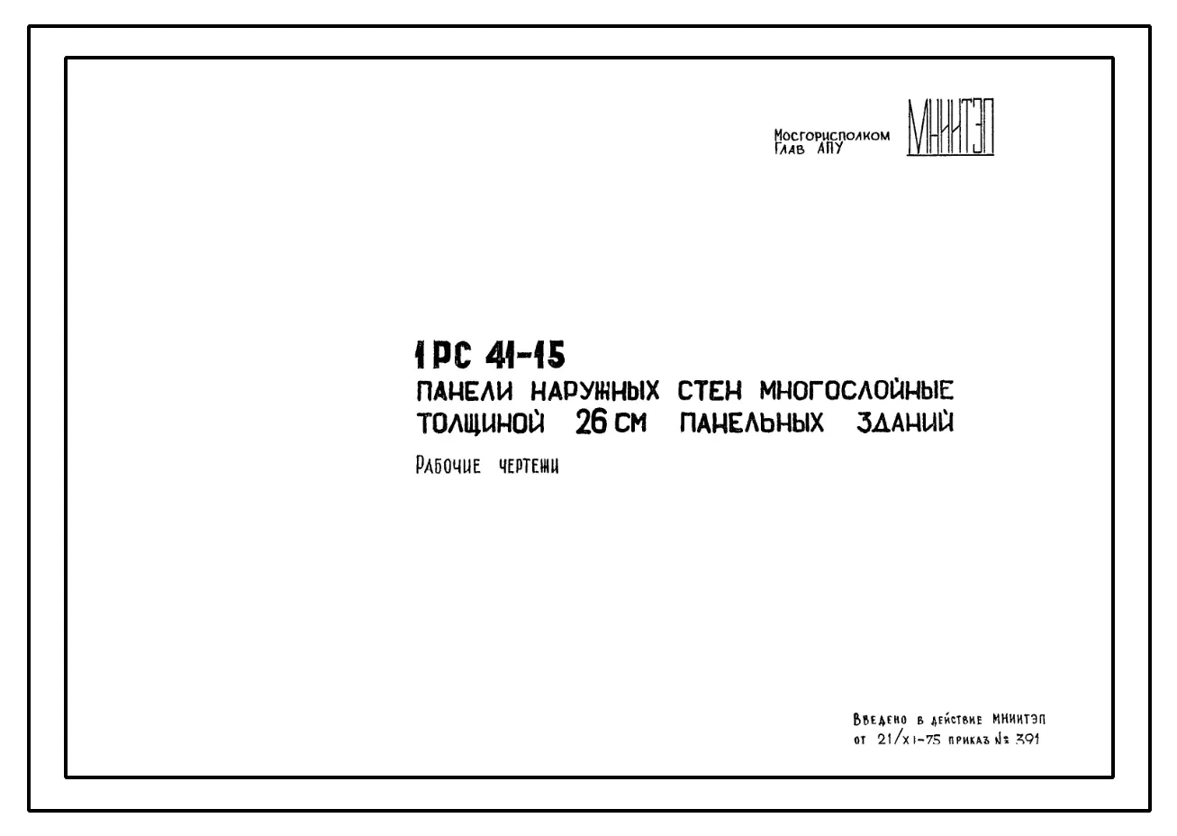 Шифр 1РС 41-15 Панели наружных стен многослойные толщиной 26 см панельных зданий. Рабочие чертежи. Разработка 1975 года